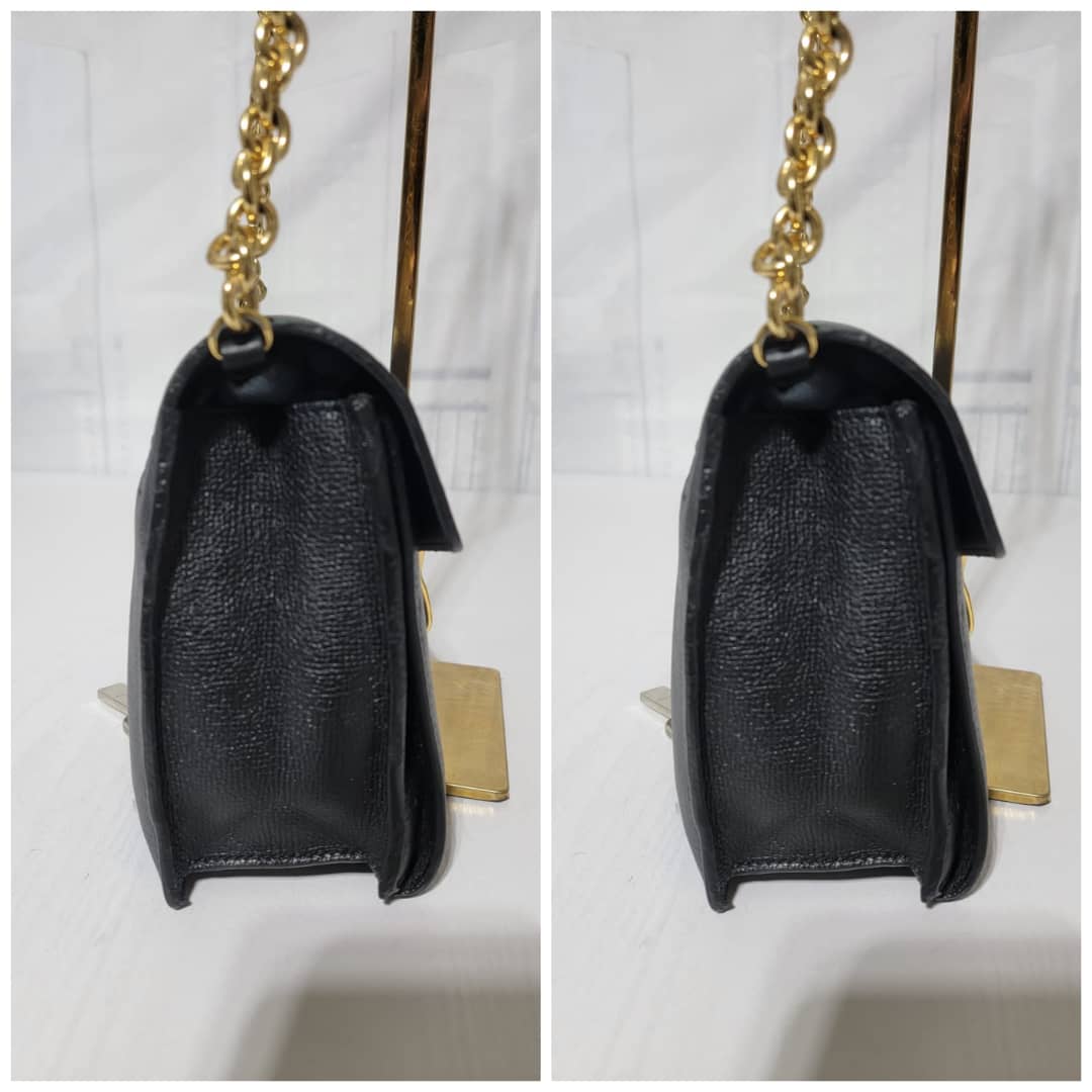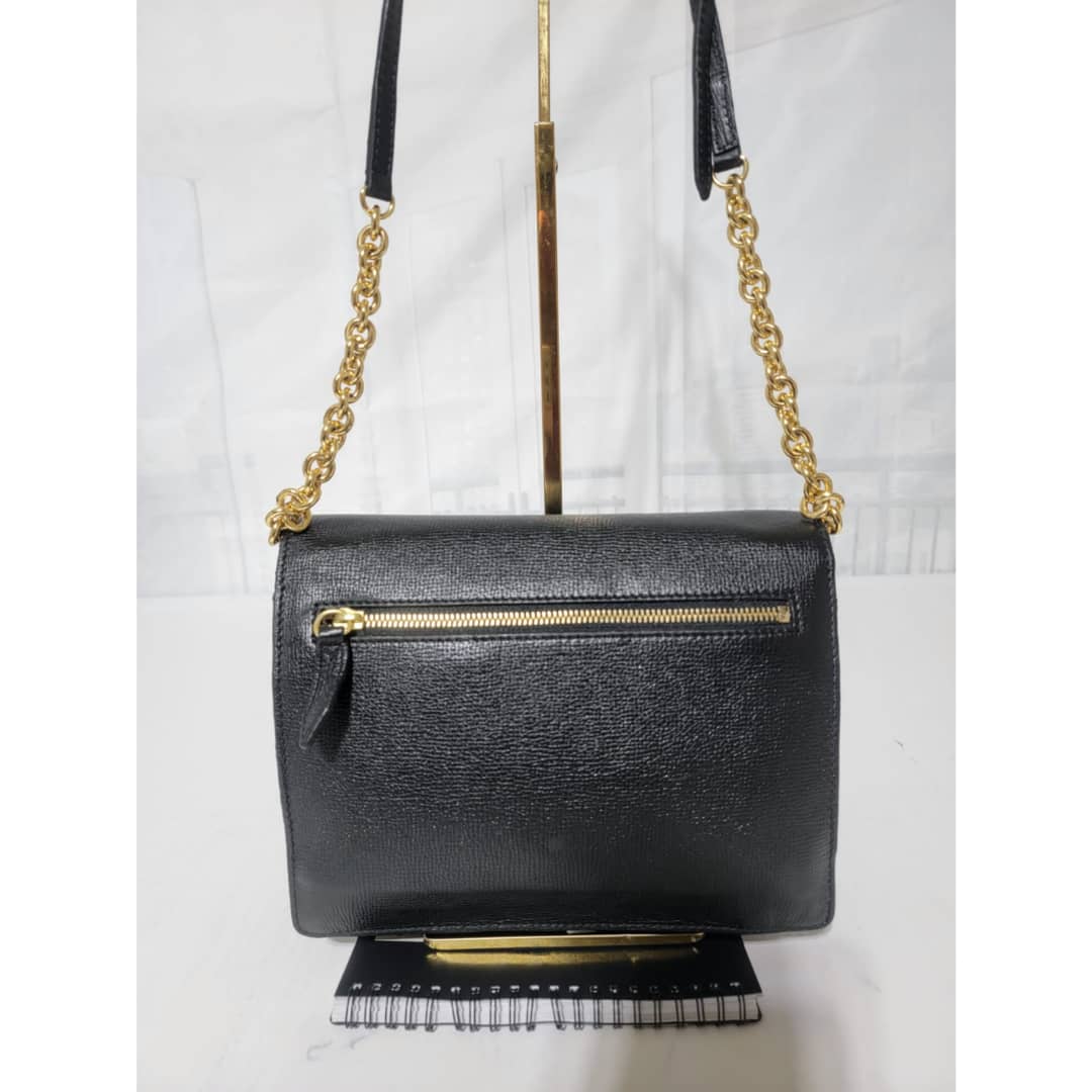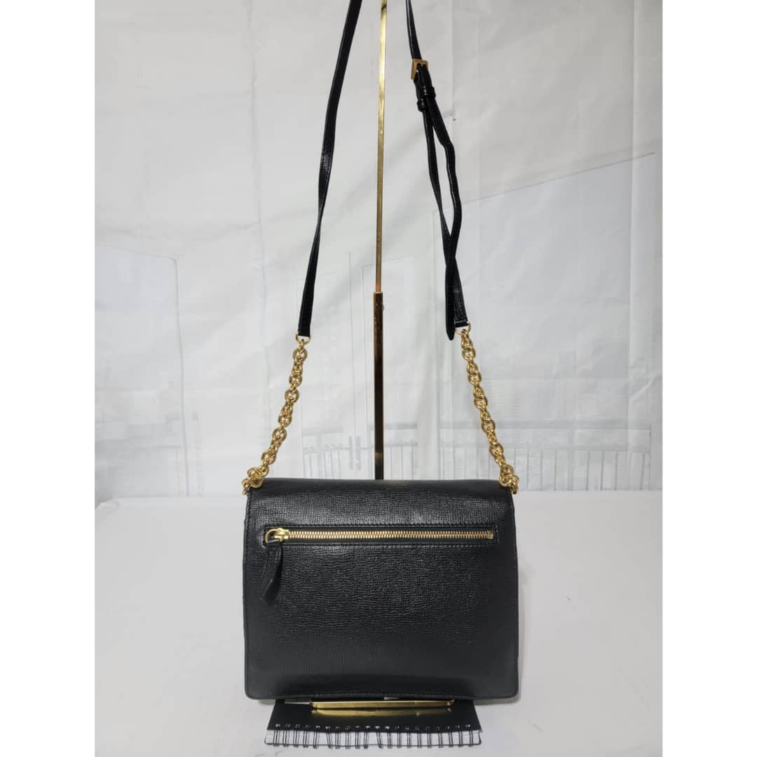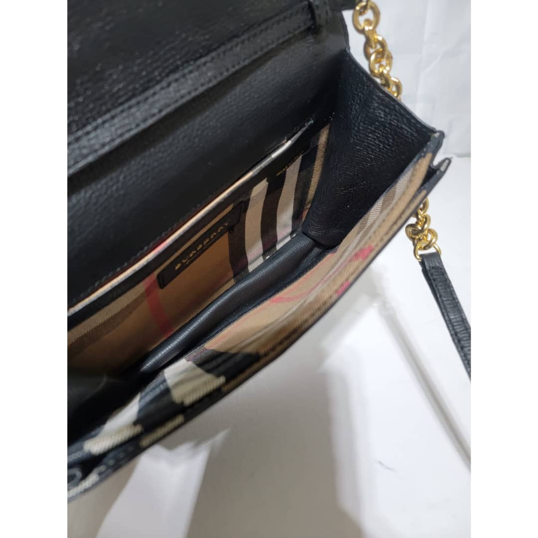This authentic Burberry Small Grainy Nubuck Leather Macken Crossbody Bag Black is in it’s good pre-owned condition. The exterior leather is clean and beautiful. Interior is clean. Gold hardware. The strap is adjustable.