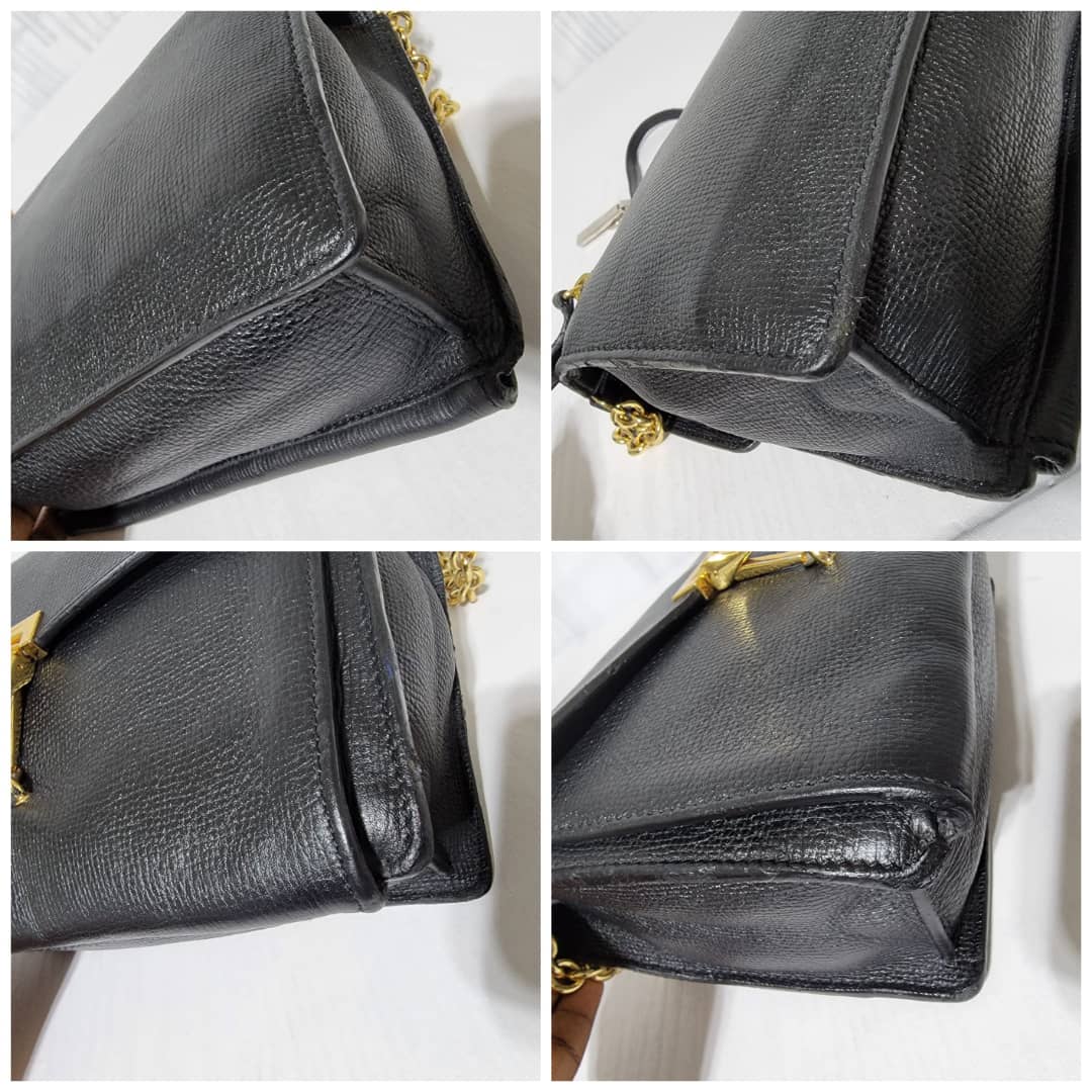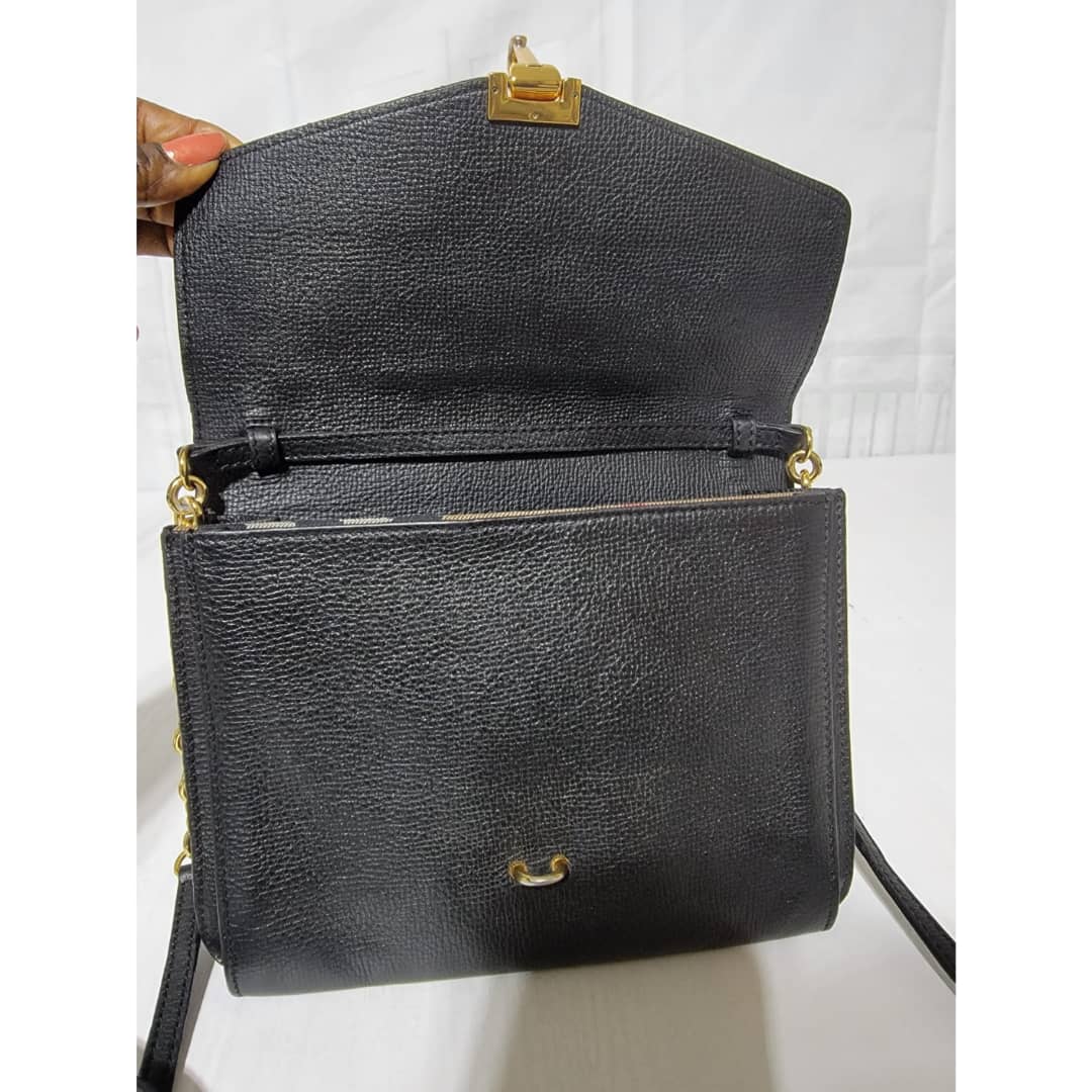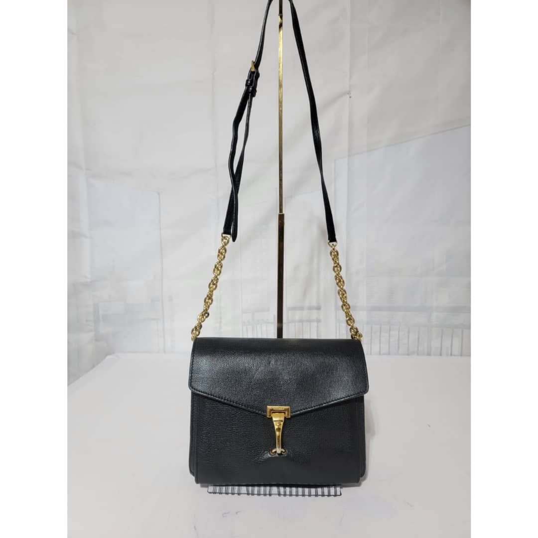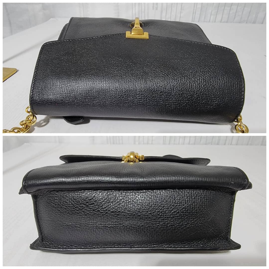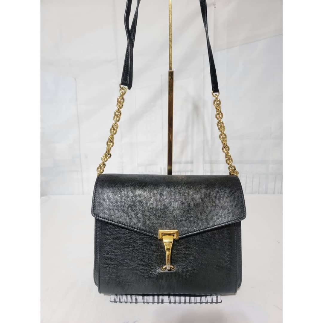This authentic Burberry Small Grainy Nubuck Leather Macken Crossbody Bag Black is in it’s good pre-owned condition. The exterior leather is clean and beautiful. Interior is clean. Gold hardware. The strap is adjustable.