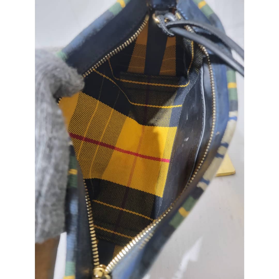 This authentic BURBERRY Tartan Fabric and Leather Wristlet/Pouch Green is in it’s good pre-owned condition. The exterior is clean and beautiful. The interior is clean. It is a wristlet/pouch, however it can be converted to a mini pochette handbag. I fixed something to the corner of the bag to make it a mini Pochette and it can be held like a handbag.