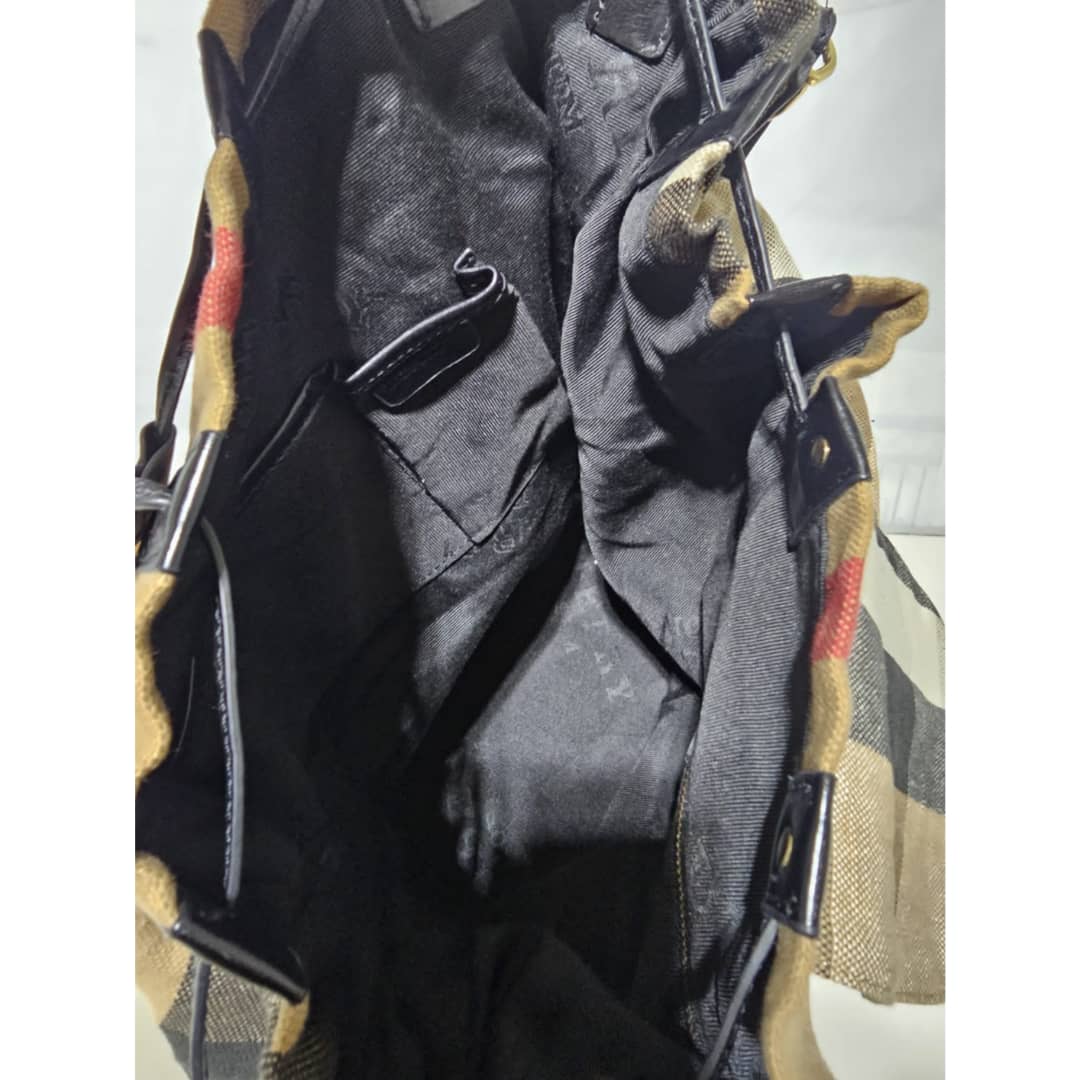 This authentic BURBERRY vintage Canvas Mega Check is in it’s good pre-owned condition. The exterior canvas and leather is clean and beautiful with little black spot on the front. The interior is clean. Gold hardware.