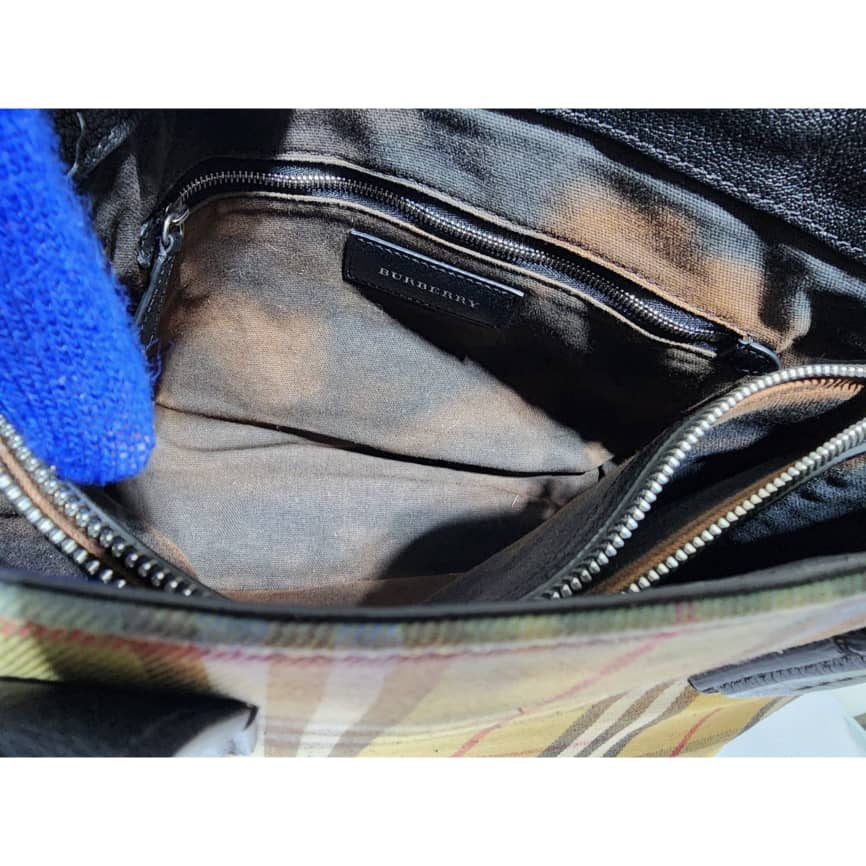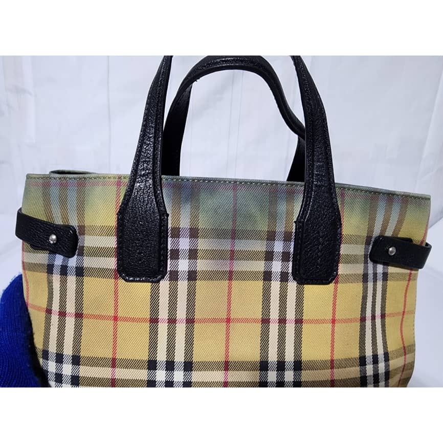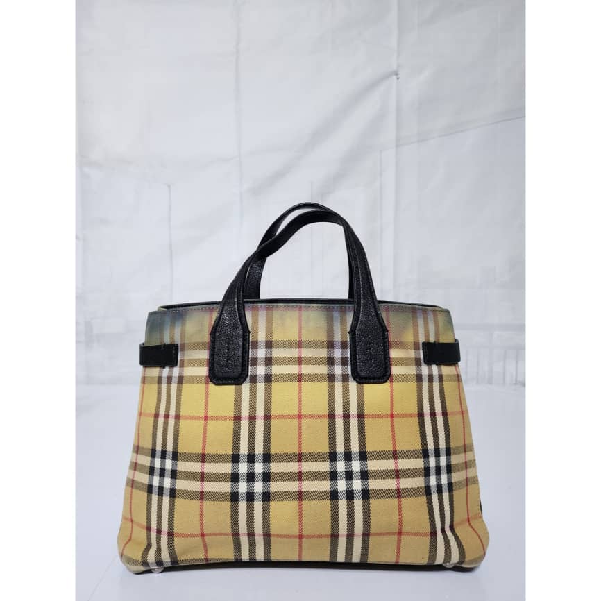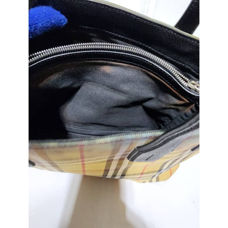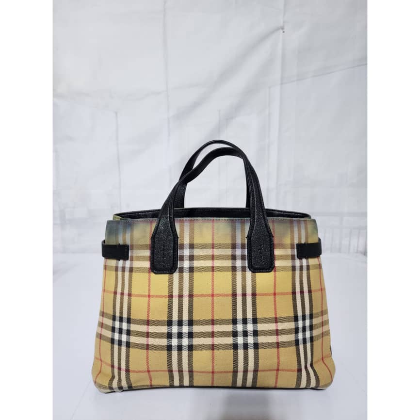 This authentic BURBERRY Vintage Check Medium Banner Tote Bag Black/Beige is in it’s pre-owned condition. The exterior is clean however, there is a color transfer stain at the top of the bag, it also affects the interior. The interior is clean but it also shows the color transfer to the fabric (Kindly look at pictures above). No long strap