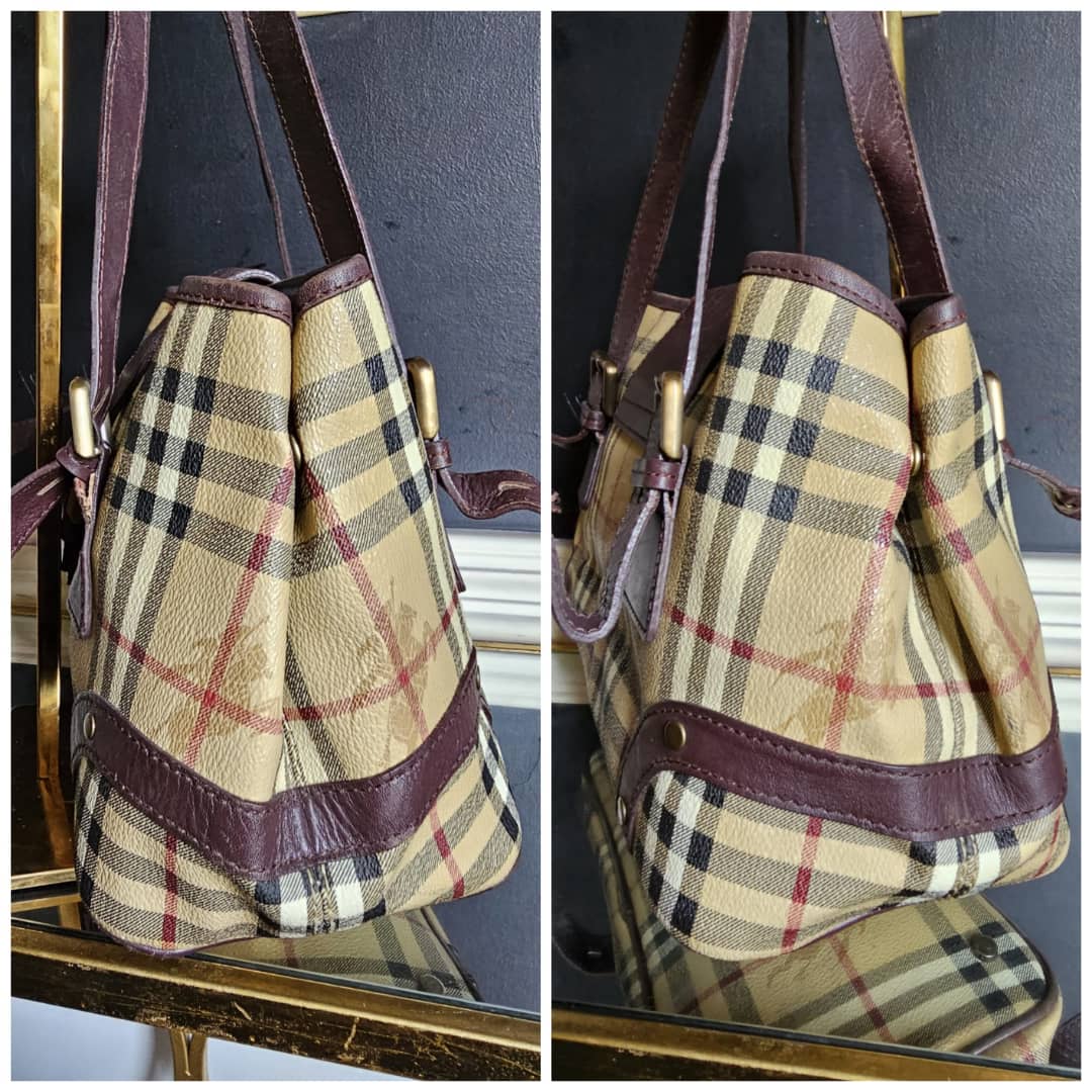 This authentic BURBERRY Vintage Coated Canvas(PVC) House Check Shoulder bag is in it’s good pre-owned condition. The exterior canvas is clean and beautiful. The brown leather trim that runs across the bag shows some scratches (Kindly review pictures above). Interior is clean.
