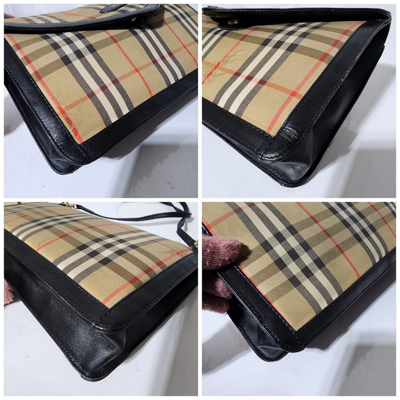 This authentic Burberry Vintage Haymarket Check Canvas Envelope Clutch Bag Black/Beige is in itβs good pre-owned condition. The exterior is clean and beautiful. Interior is clean. The strap is adjustable, it can be worn as a clutch, crossbody/shoulder bag.