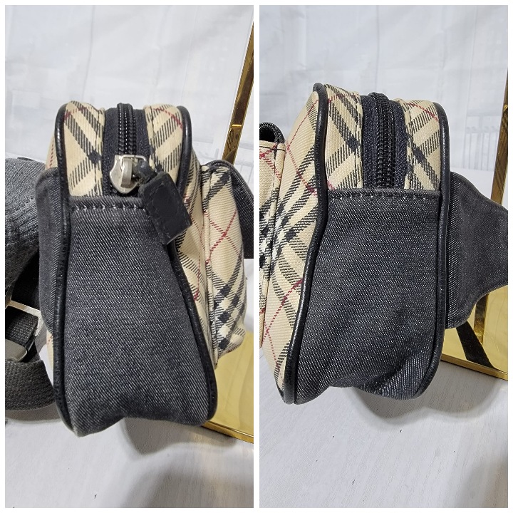 This authentic Burberry Vintage Plaid Denim Checkered Belt/Waist Bag Beige/Dark grey is in it’s good pre-owned condition. The exterior is clean. The interior is clean. Silver hardware. The dark grey denim shows light rubbing on one of the edges of the bag.
