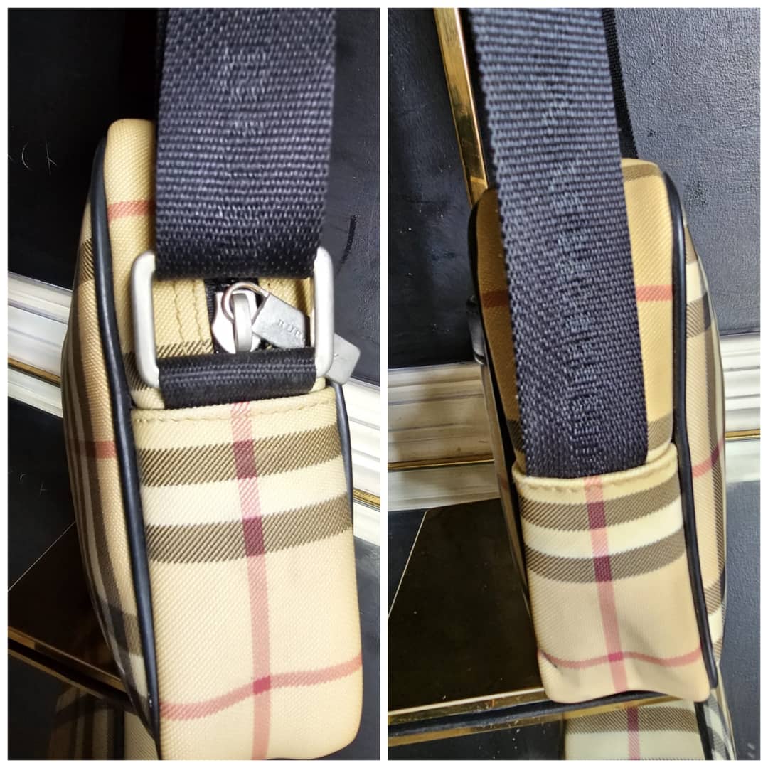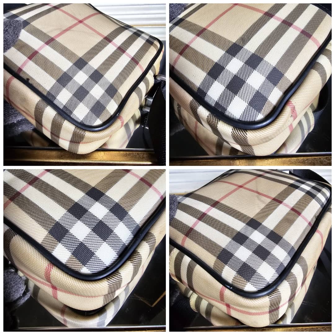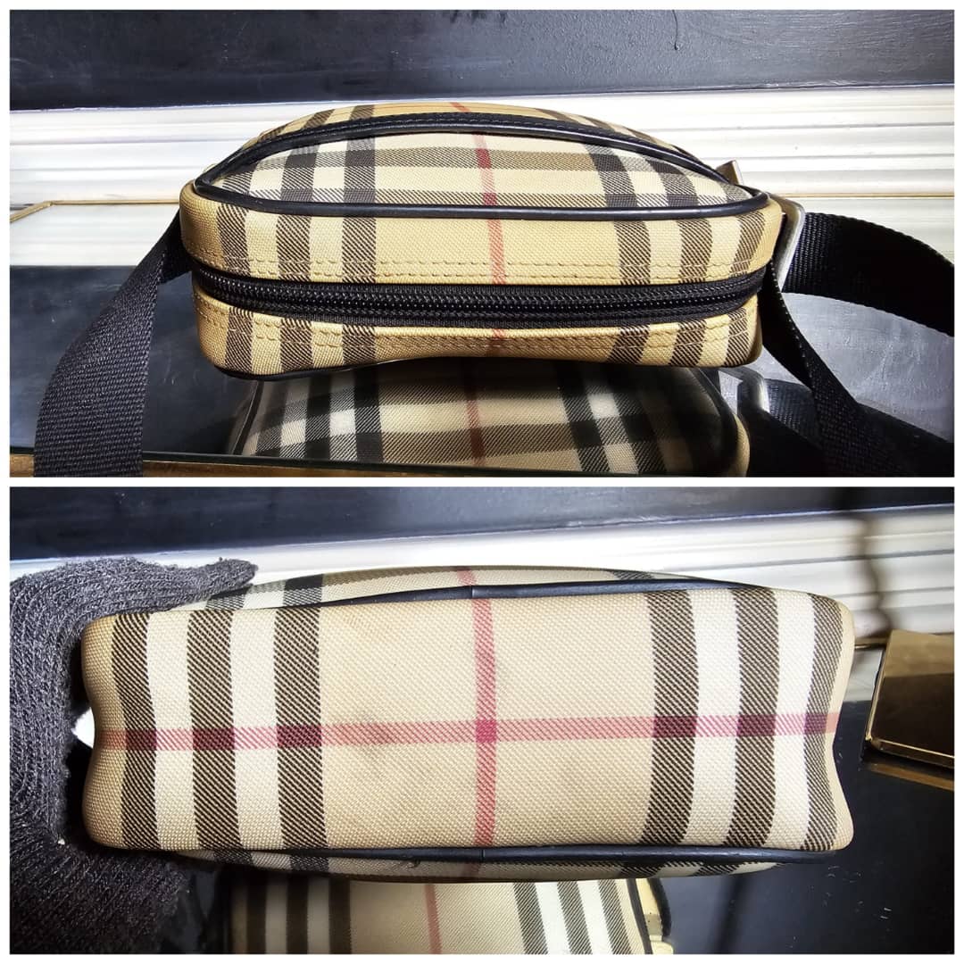 This authentic Burberry Vintage Shoulder/Crossbody Bag Beige/Black is in it’s good pre-owned condition. The exterior coated canvas is clean and beautiful, back exterior shows little color transfer (Kindly review pictures above). Interior is clean. Silver hardware. Can be worn as a shoulder/crossbody bag. Adjustable strap.