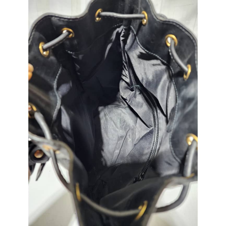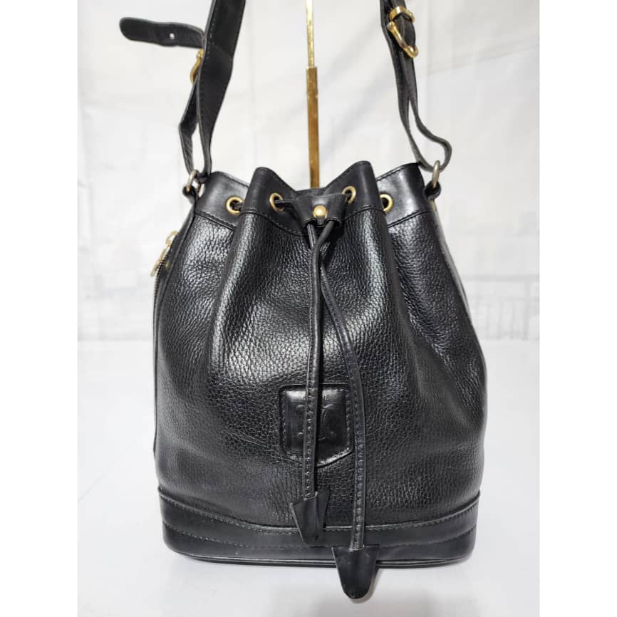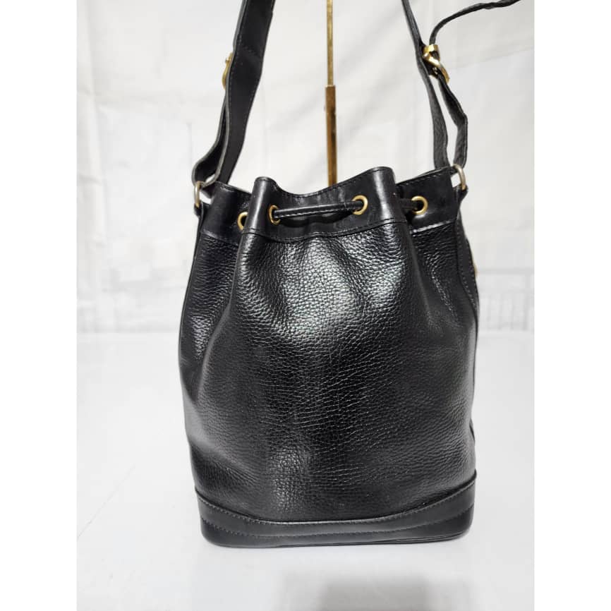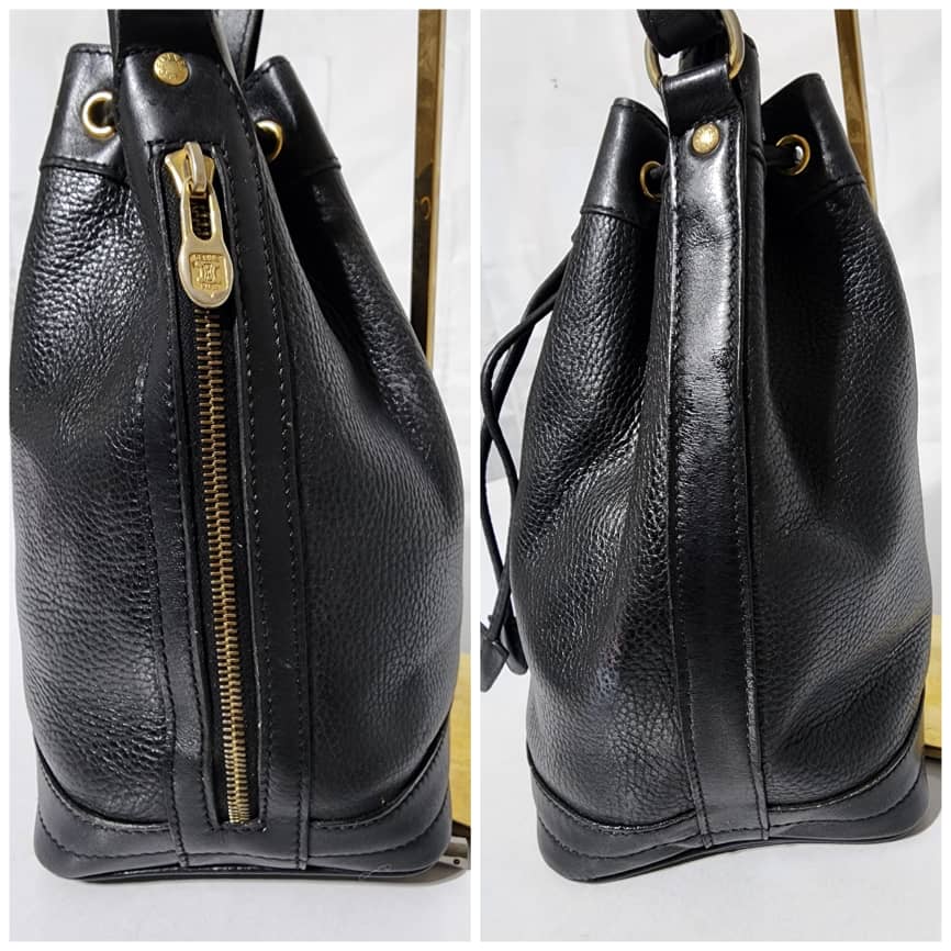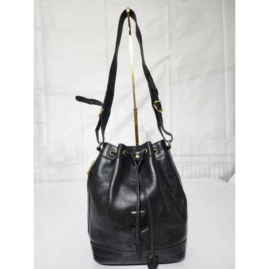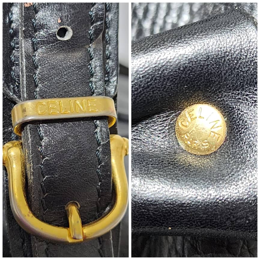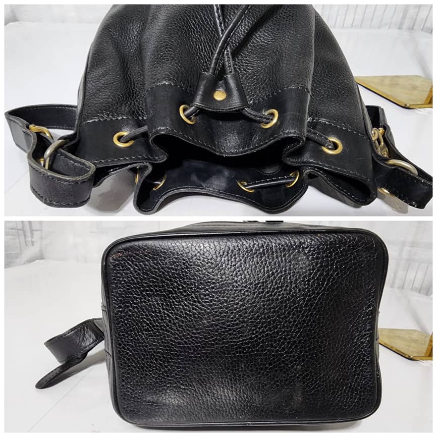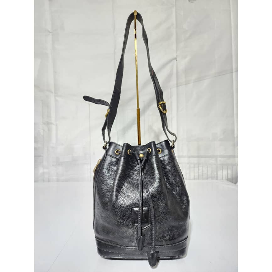 This authentic Céline Vintage Bandouliere Bucket Bag Black is in it’s good pre-owned condition. The exterior is clean and beautiful. Interior is clean. Shoulder strap is adjustable, it can be worn as a crossbody or shoulder bag.