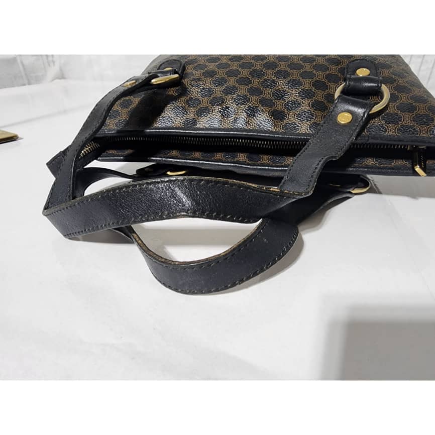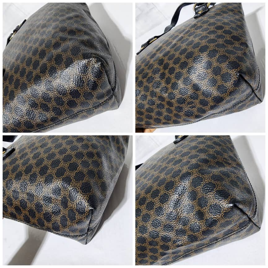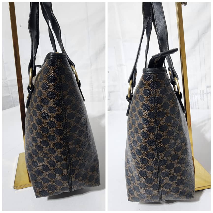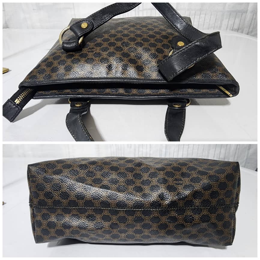 This authentic Céline Vintage Macadam Canvas Shoulder Bag Black/Brown is in it’s good pre-owned condition. The exterior is clean and beautiful. Interior is clean. Gold hardware. Handle shows some scratches.