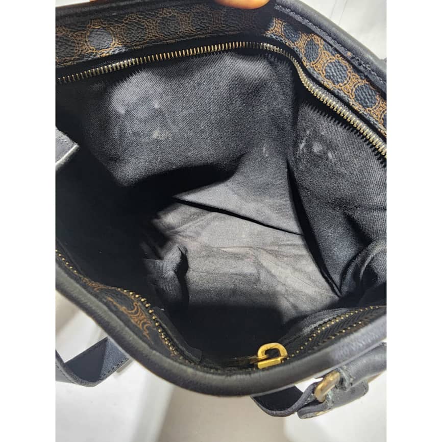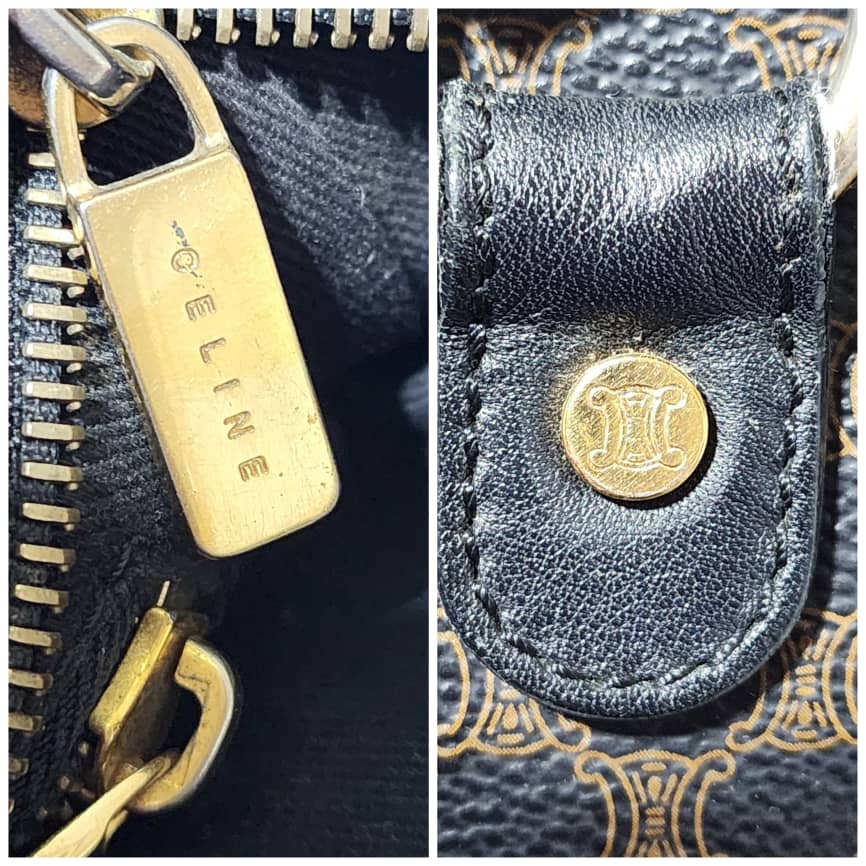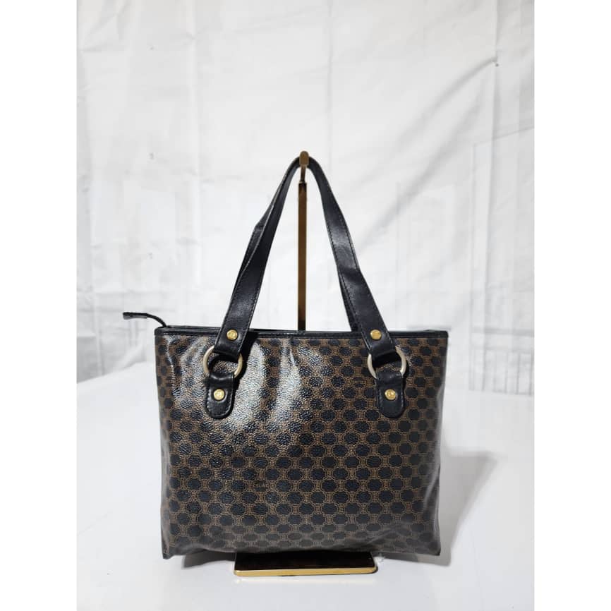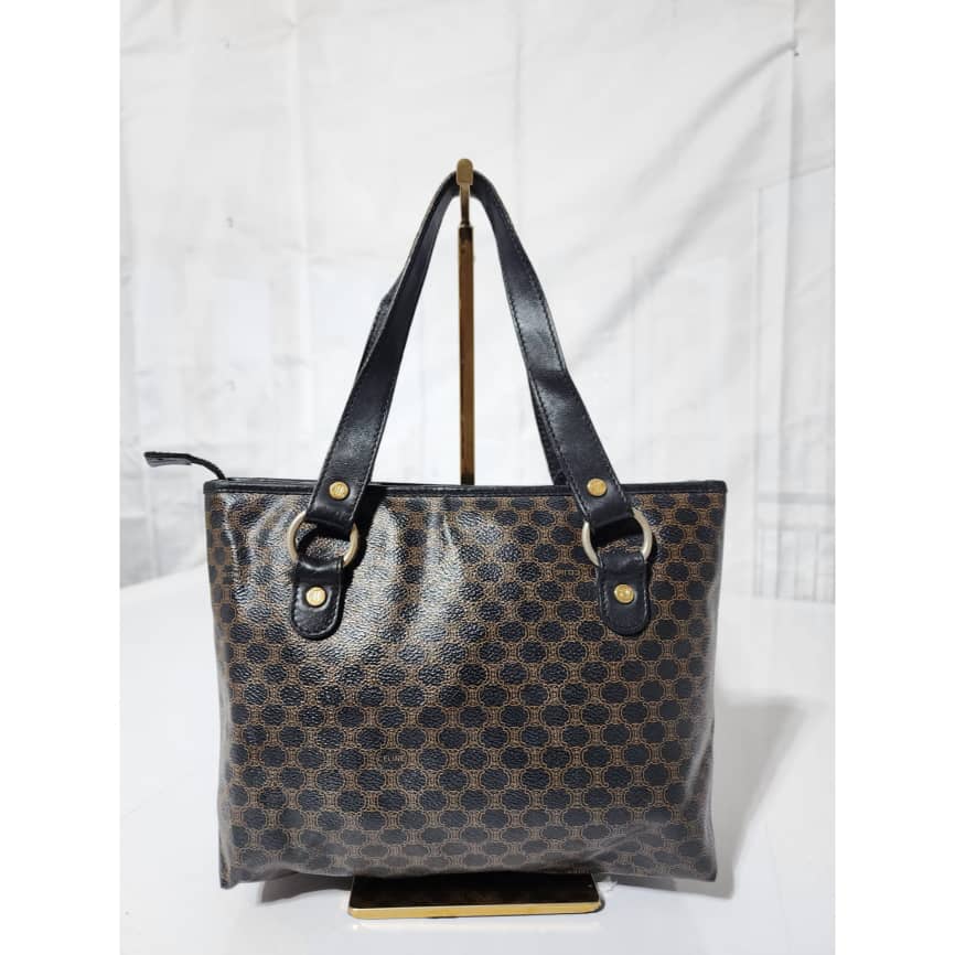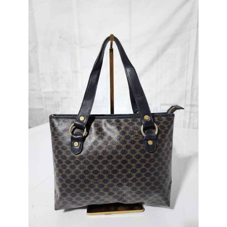 This authentic Céline Vintage Macadam Canvas Shoulder Bag Black/Brown is in it’s good pre-owned condition. The exterior is clean and beautiful. Interior is clean. Gold hardware. Handle shows some scratches.