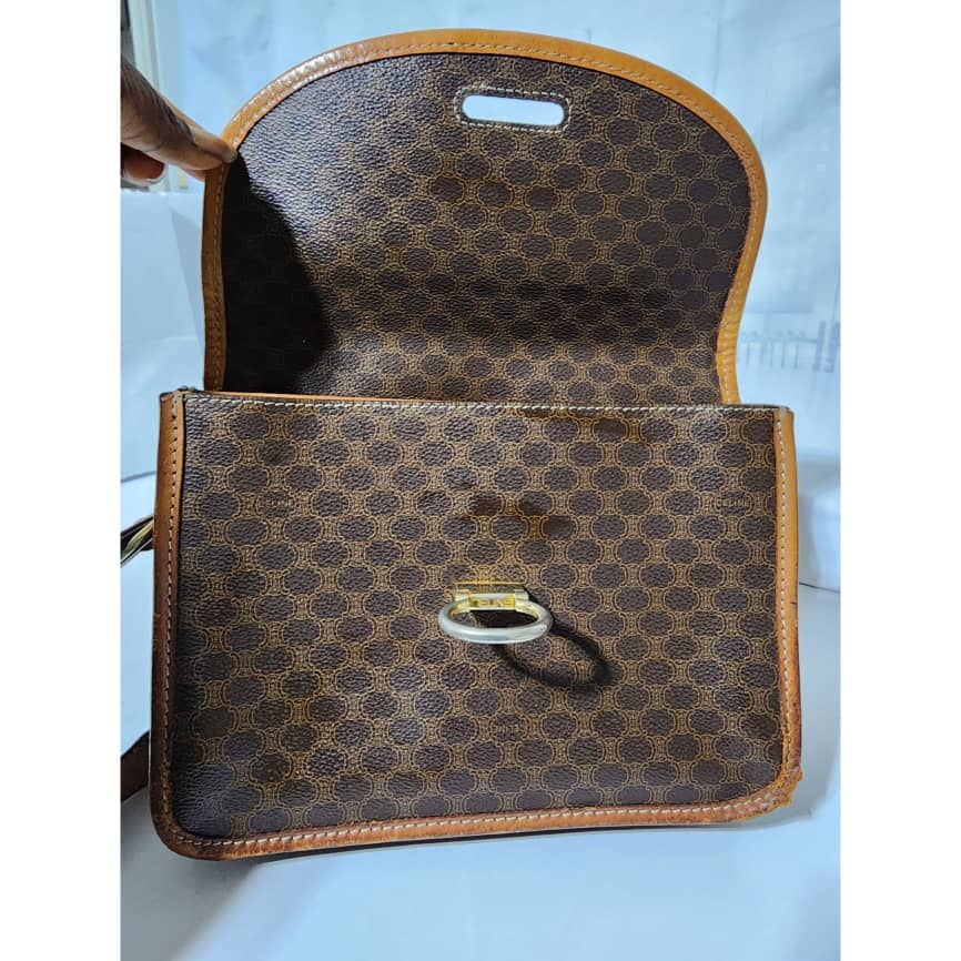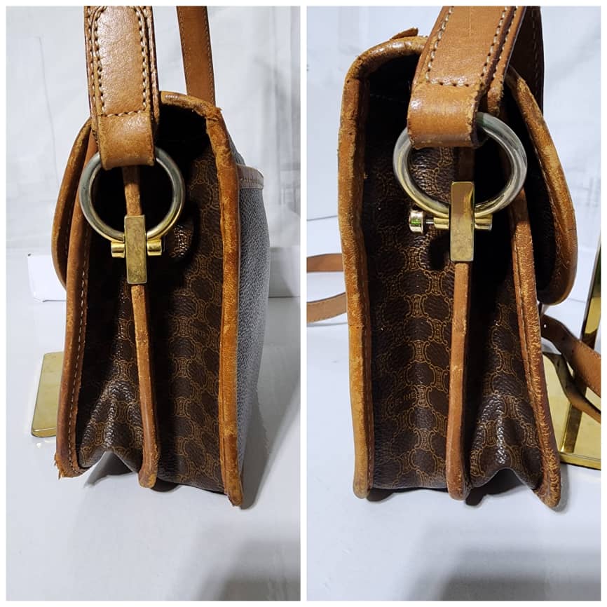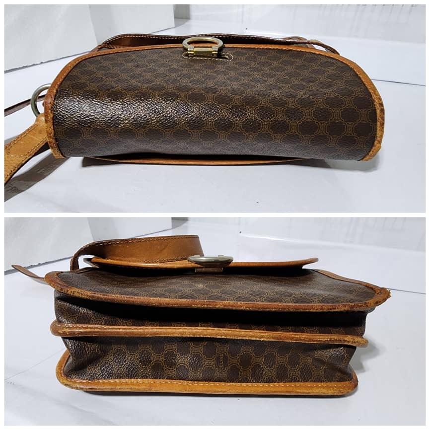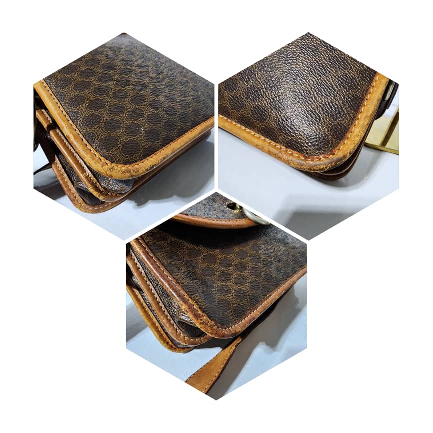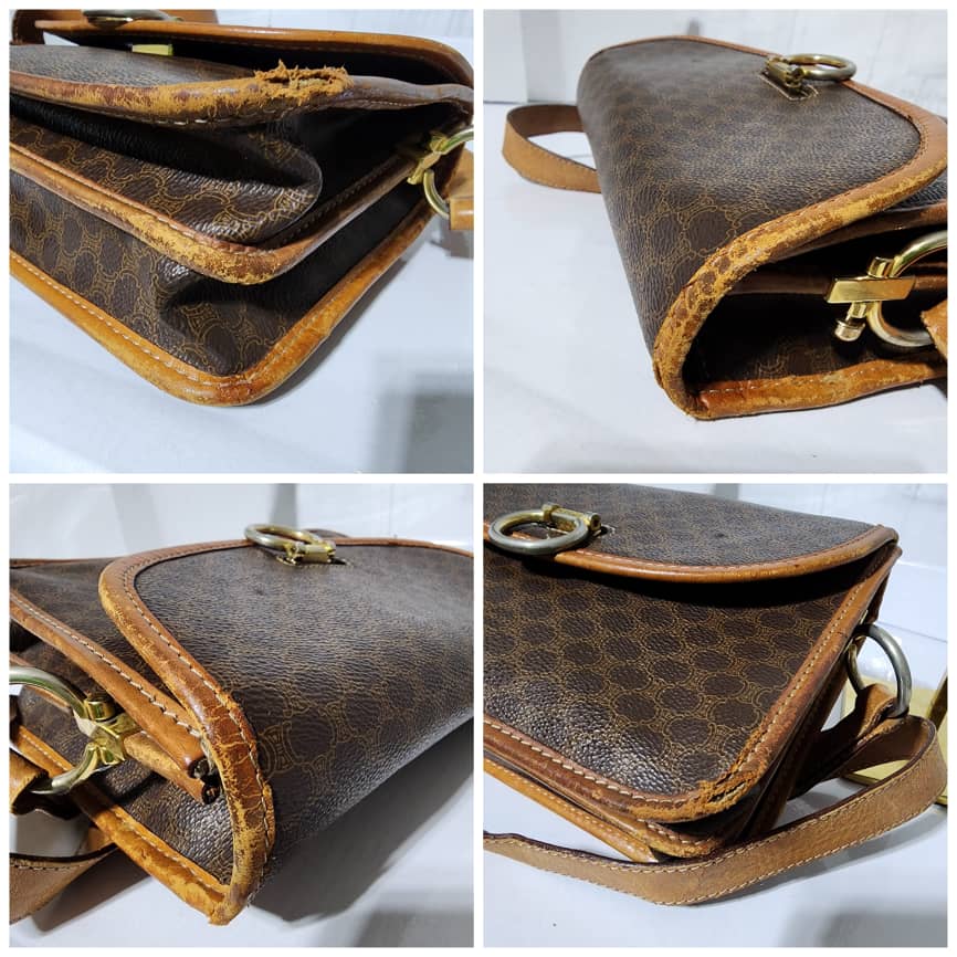 This authentic CELINE Vintage Macadam Canvas Shoulder/Crossbody Bag Brown is in it’s pre-owned condition. The exterior canvas is clean. The vachatte leather that runs across the bag and handle shows dryness and cracking to it. The interior is clean, it is in it’s vintage condition. Hardware shows rubbing and scratches to it. The edges shows scuffing to it. Kindly look at pictures above for all details.