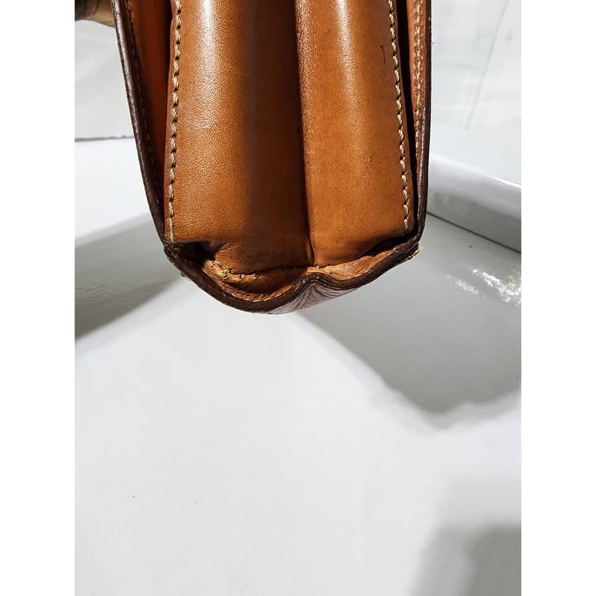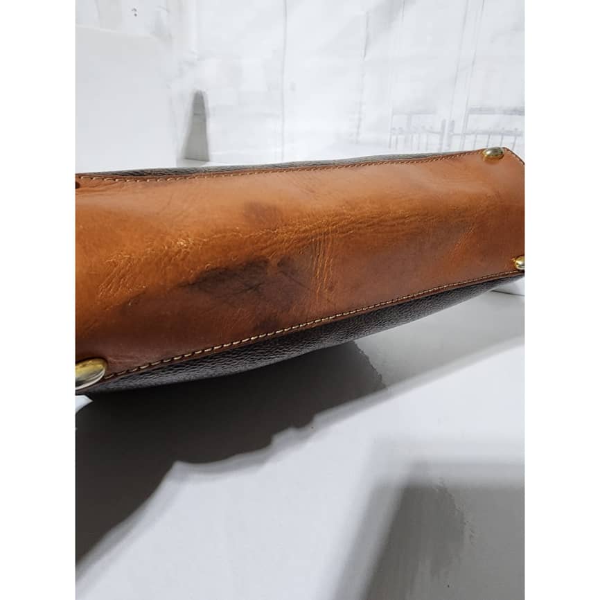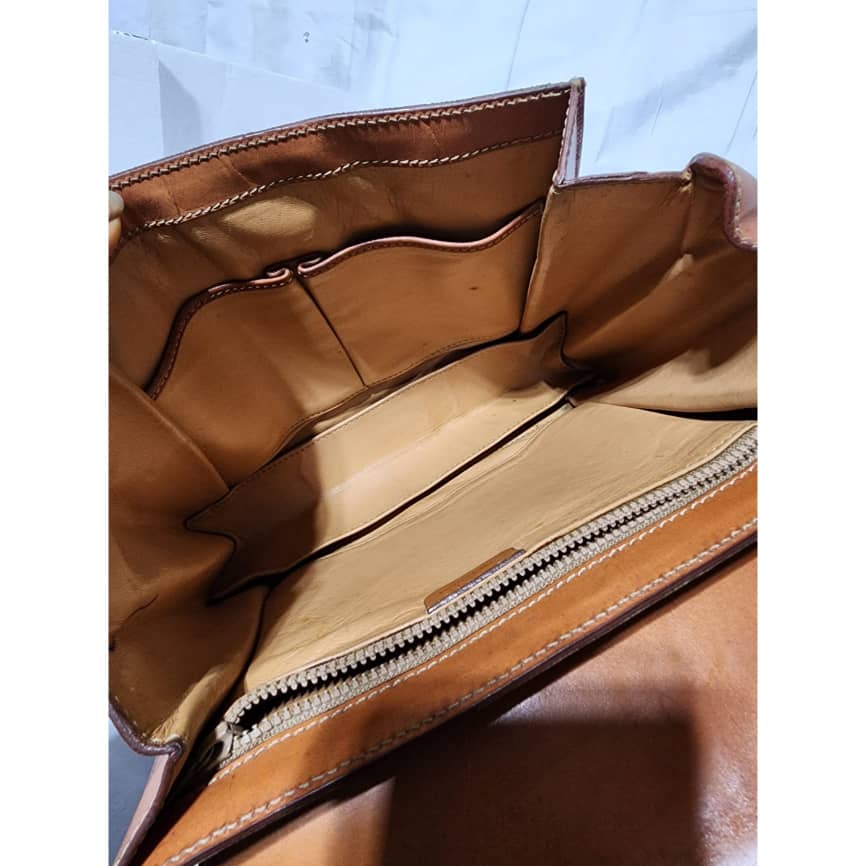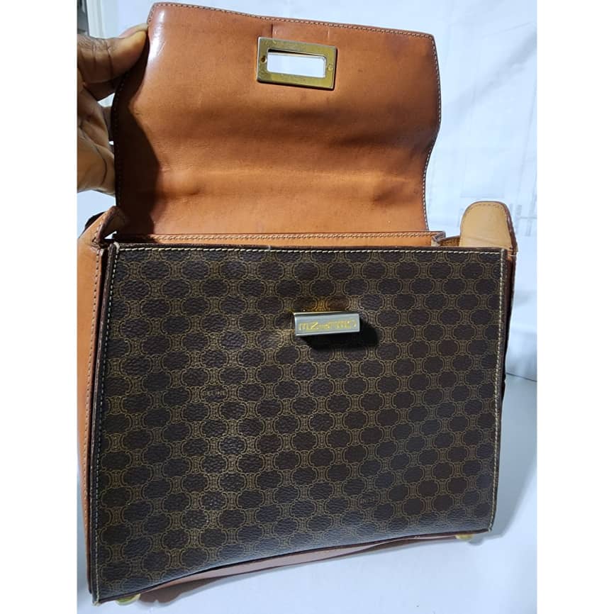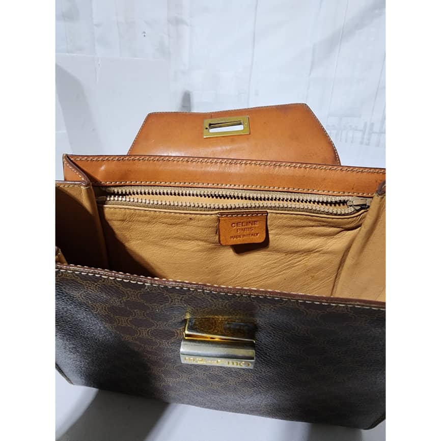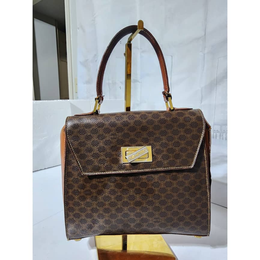 This authentic Celine Vintage Macadam Turn Lock 2WAY Top Handle Bag Brown is in it’s vintage condition. The exterior Celine canvas is clean however the vachatte leather that runs across the bag shows watermark, dryness and honey patina wear to it (Kindly look at pictures above). The interior is clean, it is in it’s vintage condition with markings. Gold hardware shows rubbing and scratches to it.