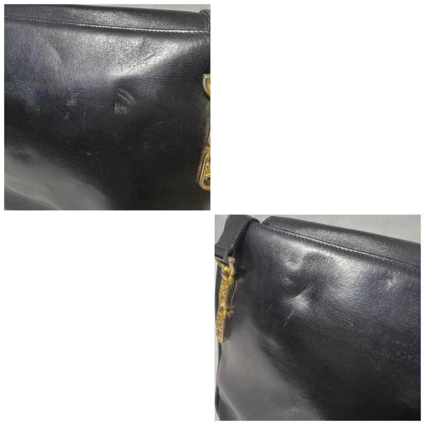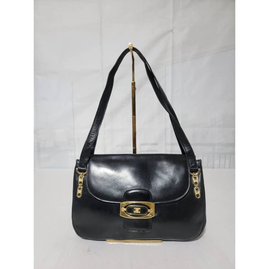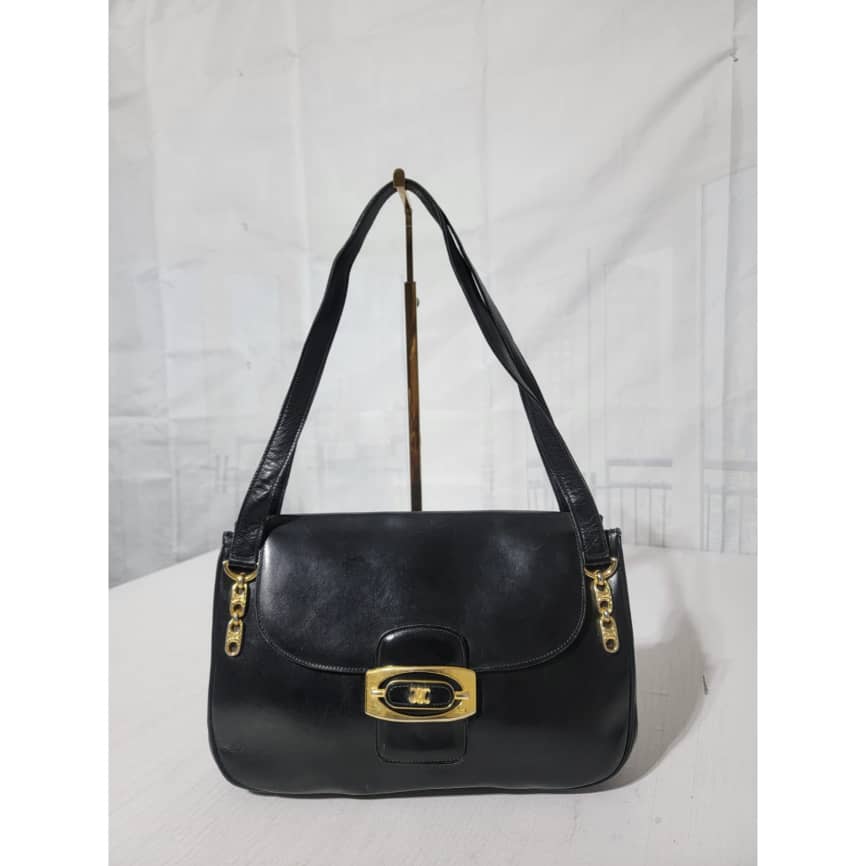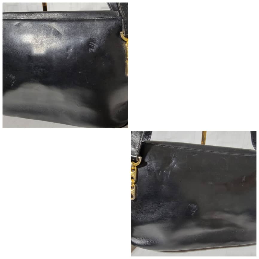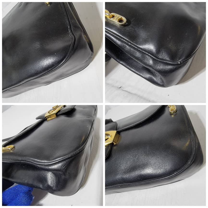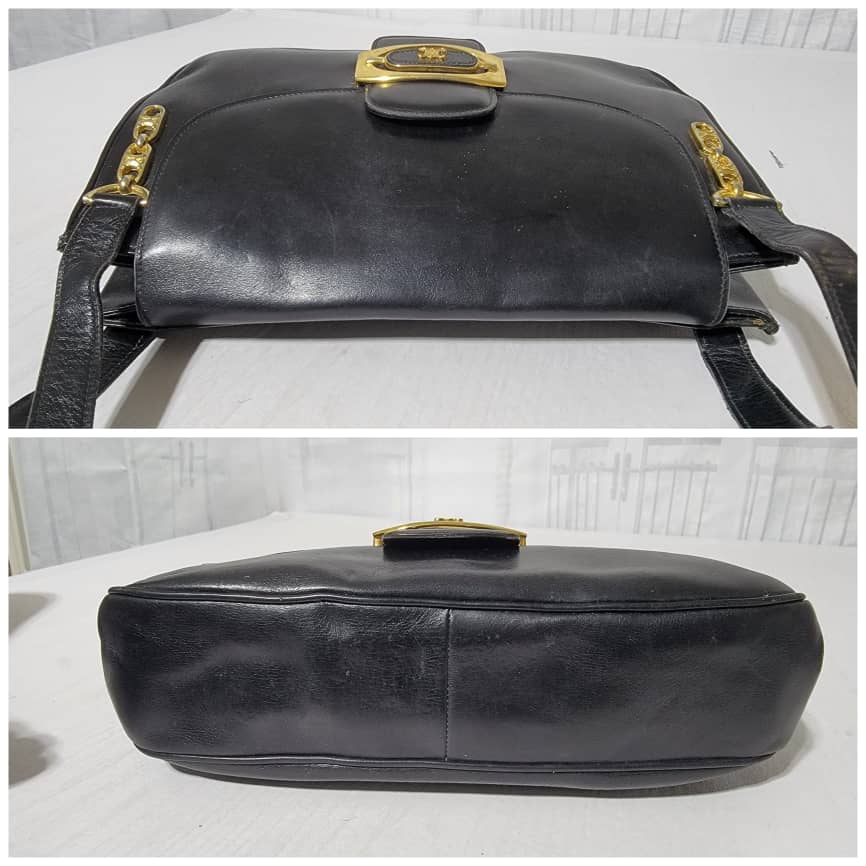 This authentic Celine Vintage Triomphe Leather Bag Black is in it’s pre-owned condition. The exterior is clean. Interior is clean. Gold hardware. It can be worn as a shoulder bag. The back has a little bit of pressed dent (Kindly look at pictures above).