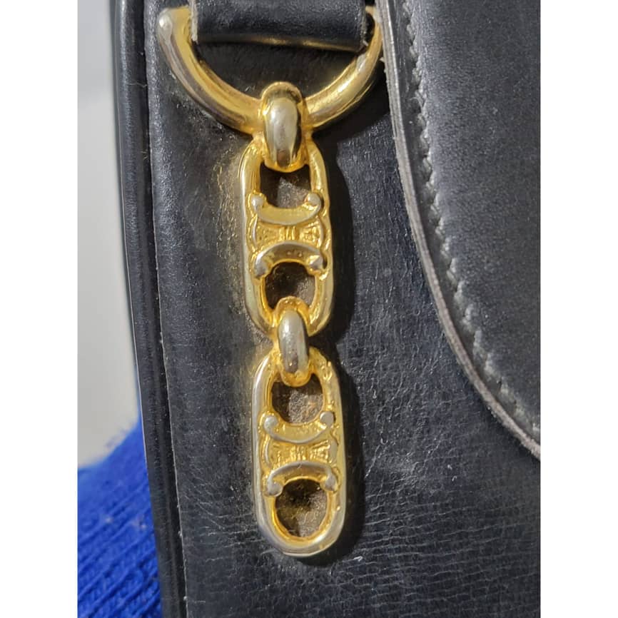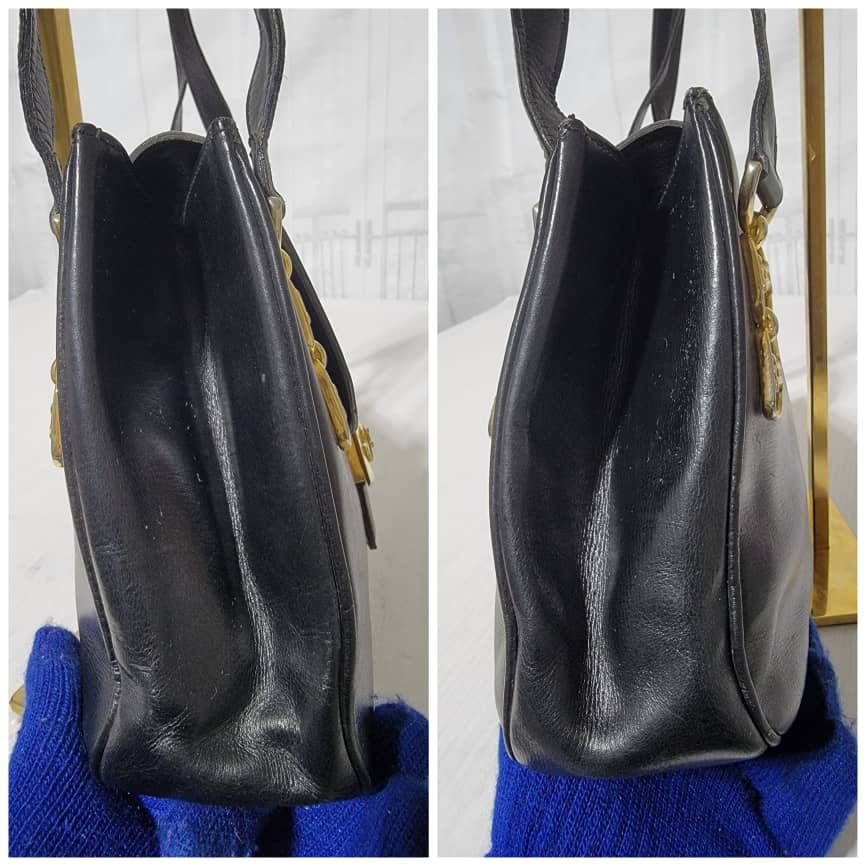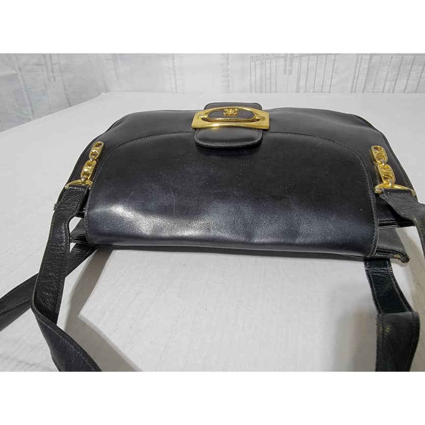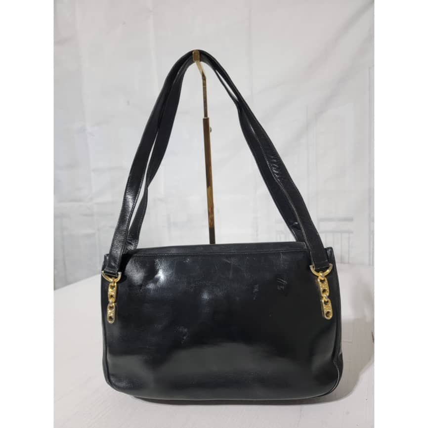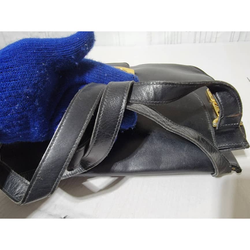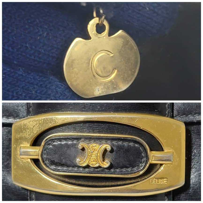This authentic Celine Vintage Triomphe Leather Bag Black is in it’s pre-owned condition. The exterior is clean. Interior is clean. Gold hardware. It can be worn as a shoulder bag. The back has a little bit of pressed dent (Kindly look at pictures above).