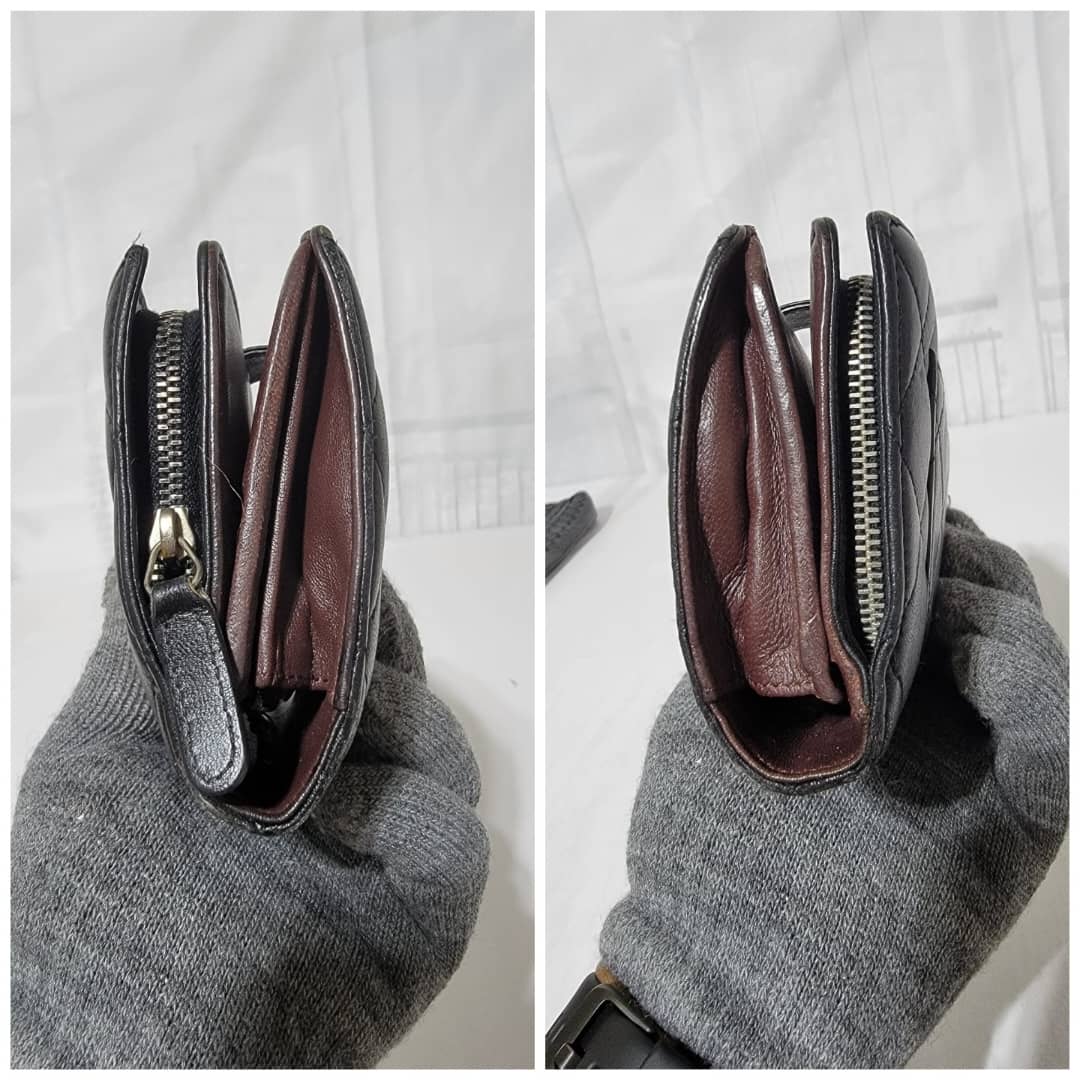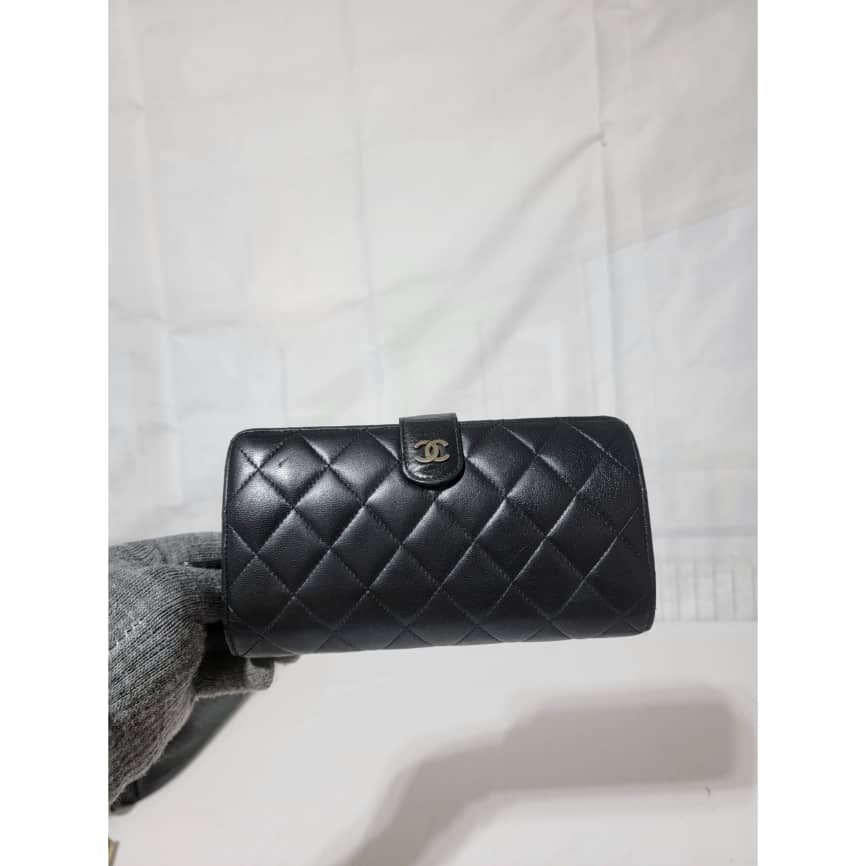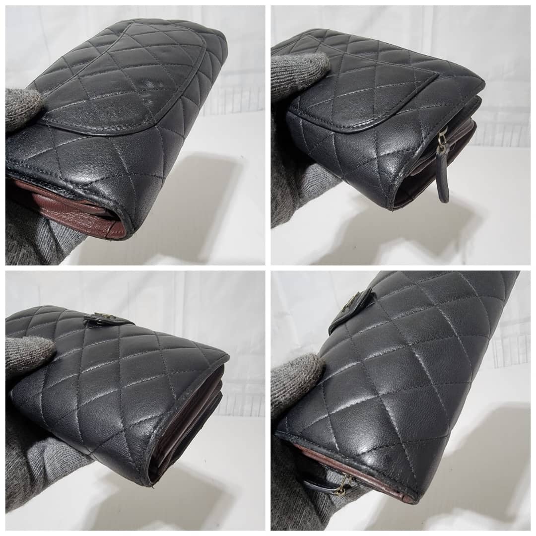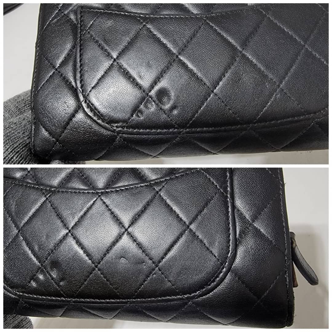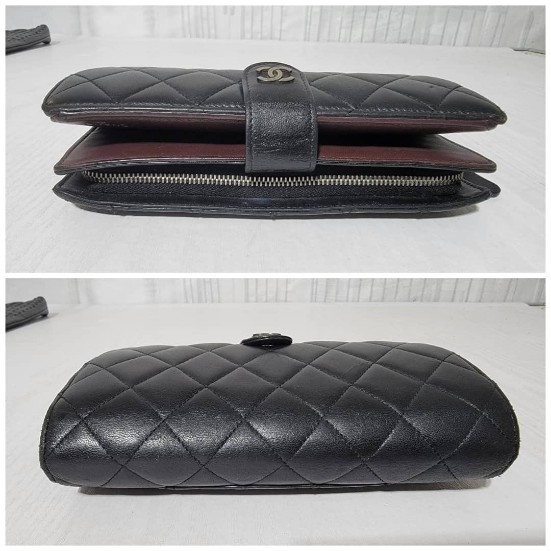 This authentic CHANEL bi-fold long wallet matelasse lambskin black is in it’s good pre-owned condition. The exterior is clean and beautiful with little bit of scratch on the front flap, the back shows five dotted dent marks (Kindly look at the pictures above and look at the back carefully). Interior is clean. Gun metal hardware.