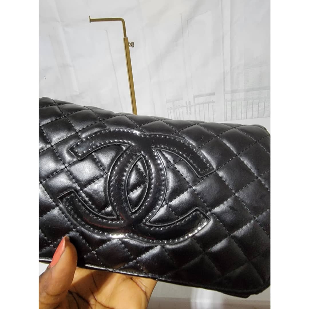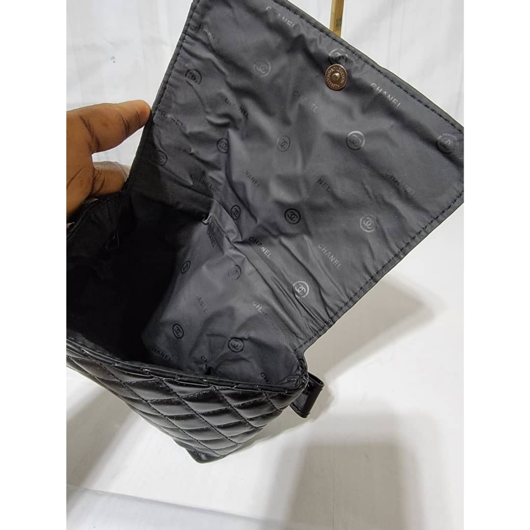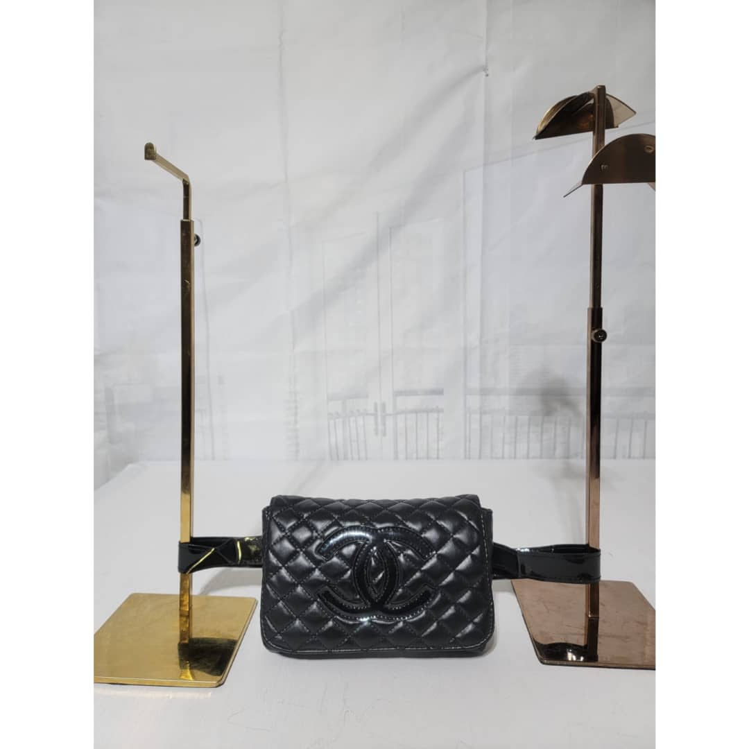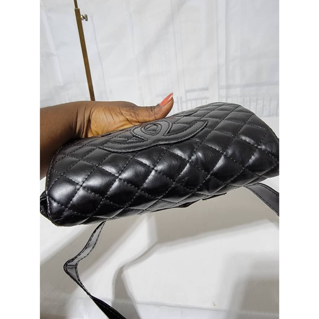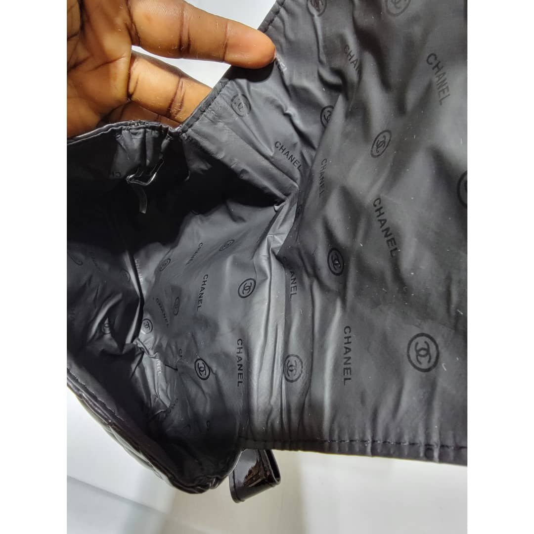 This authentic Chanel Lambskin and Patent Leather Strap Make-Up Accessory Belt Bag Black is in it’s good pre-owned condition. The exterior leather is clean and beautiful. Interior is clean.