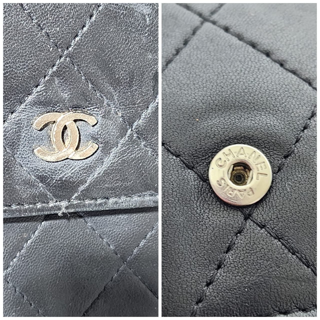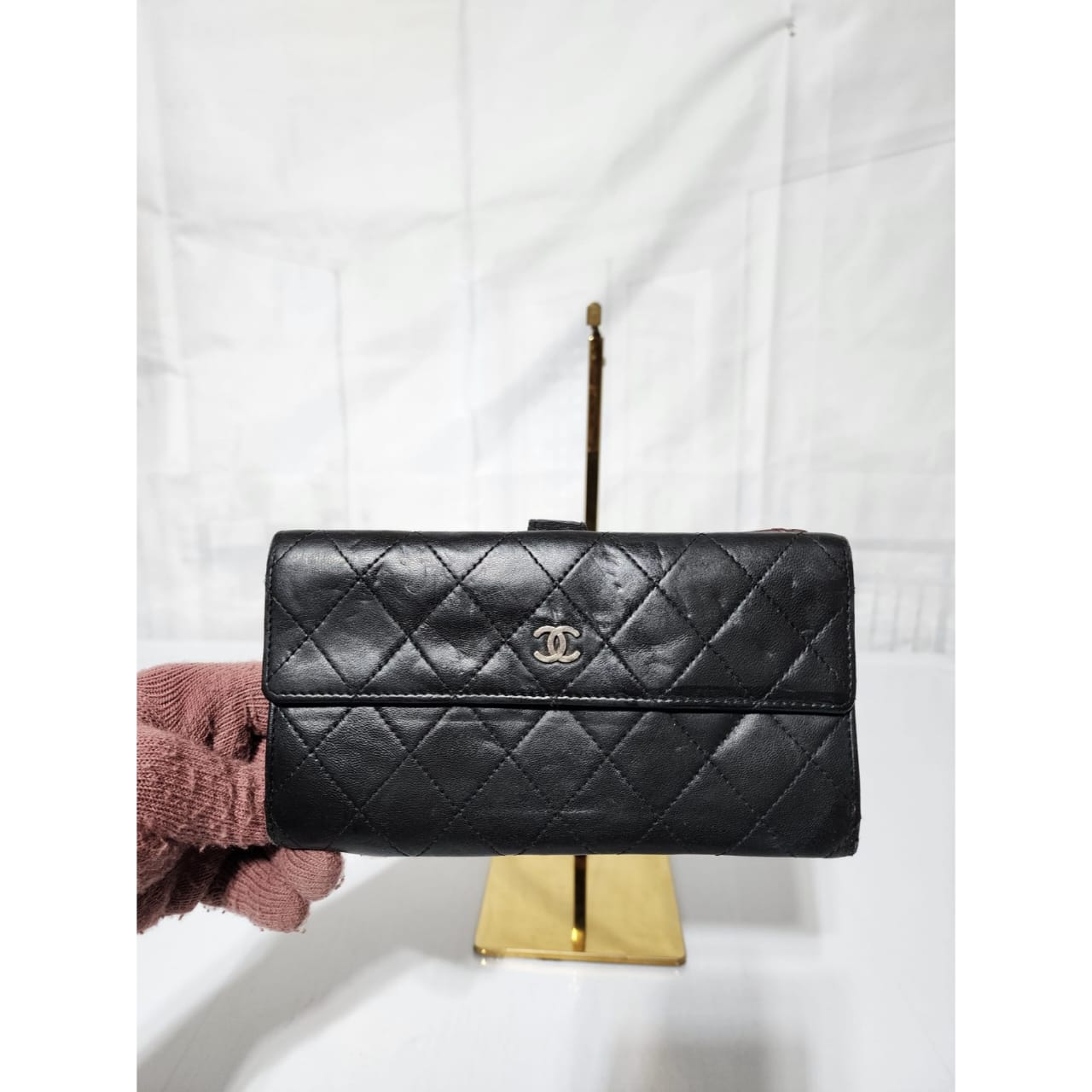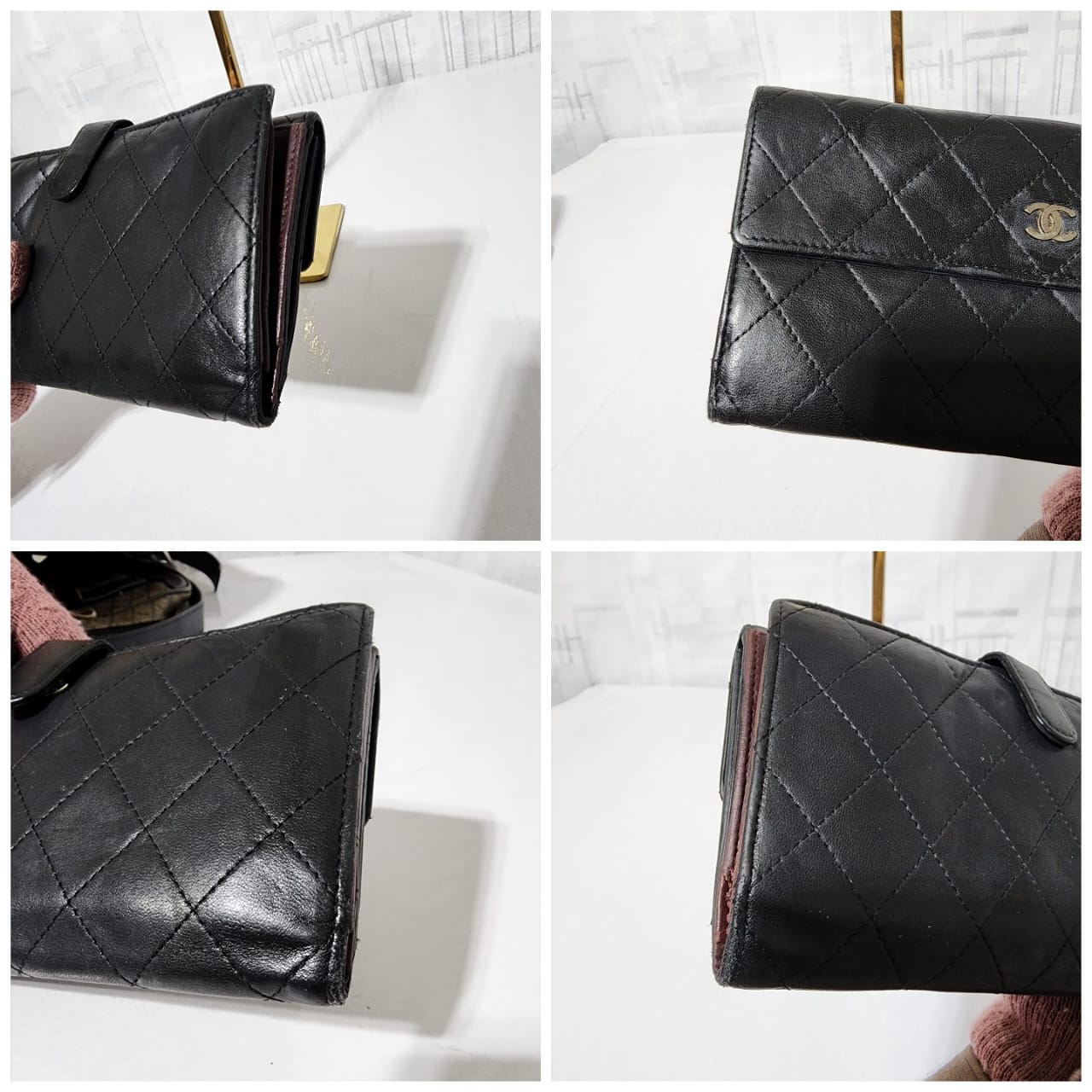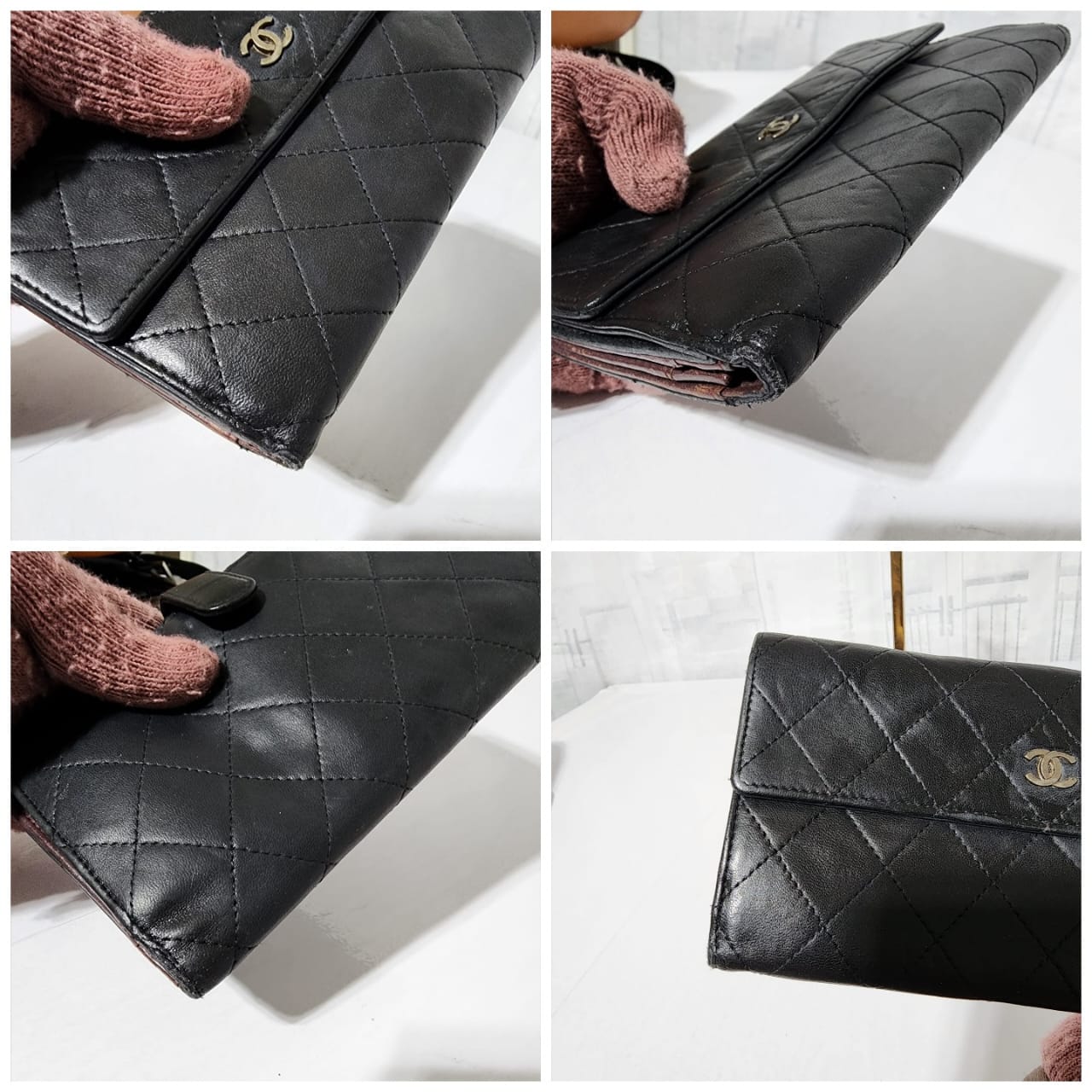 This authentic CHANEL Long Matelasse Lambskin Wallet Black is in it’s pre-owned condition. The exterior leather shows sign of wear and tiny little dotted pressed dent on it. Interior is clean. Silver hardware shows some rubbing to it. The edges shows some rubbing to it also (Kindly look at pictures above).