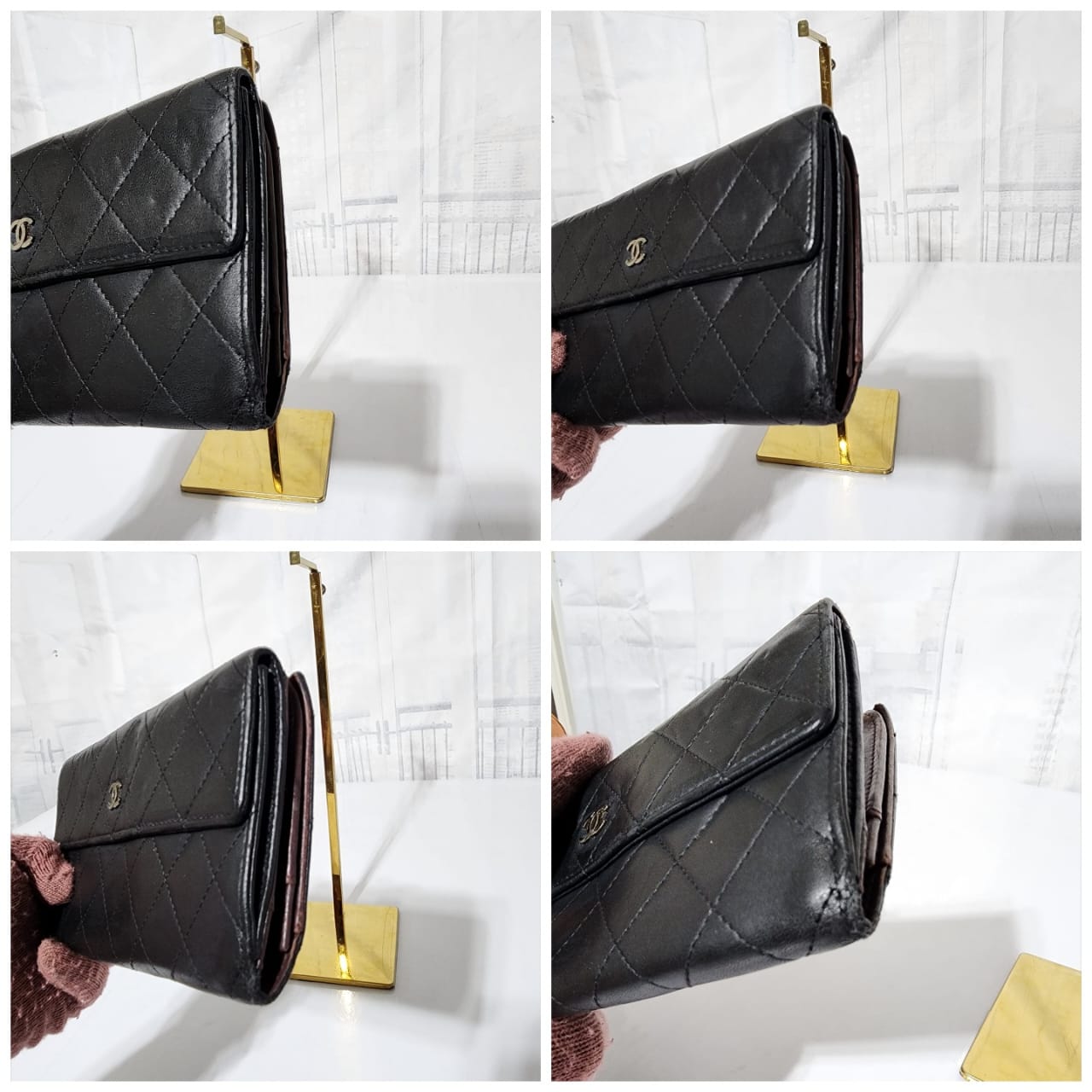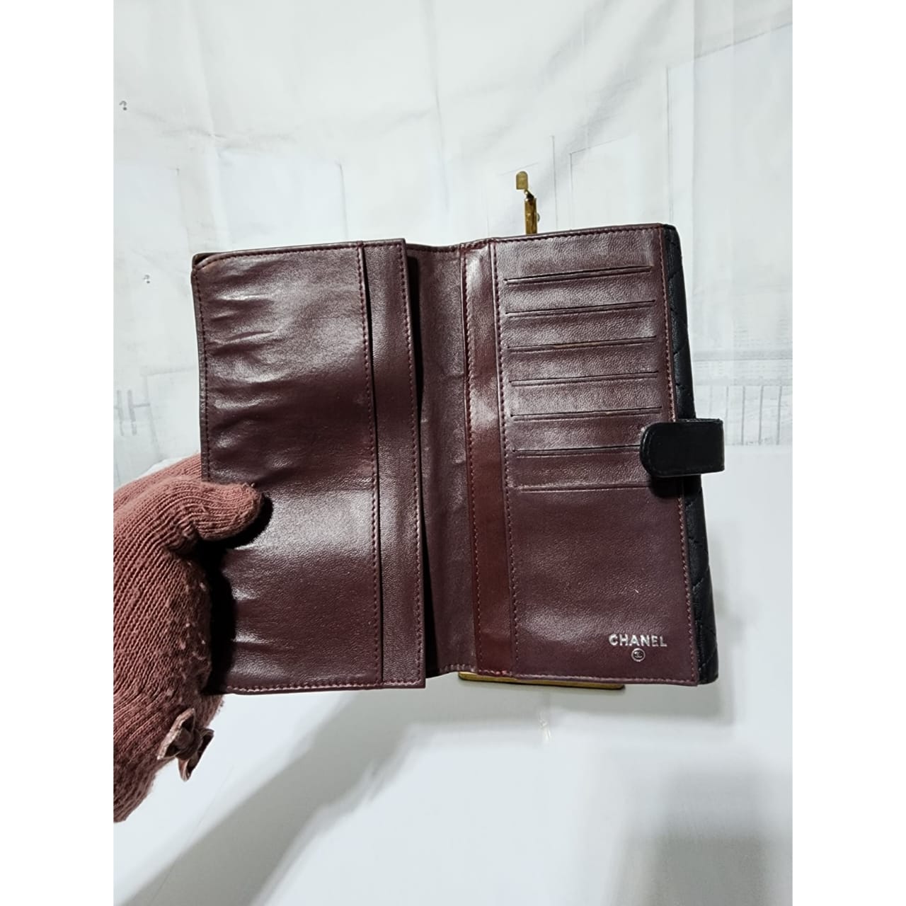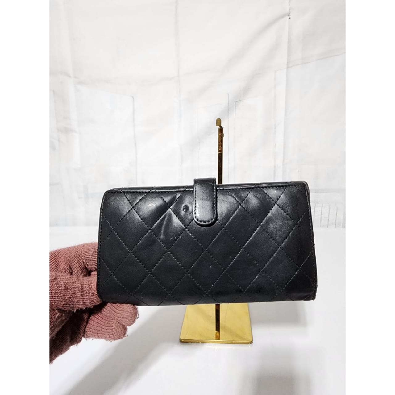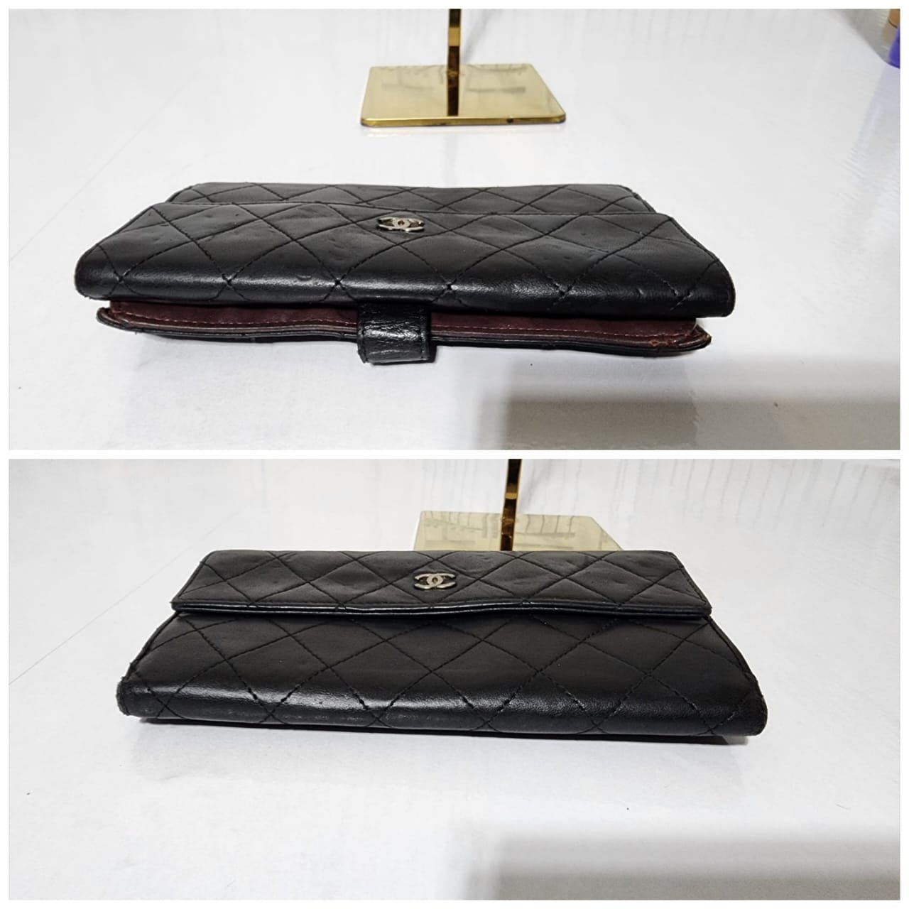 This authentic CHANEL Long Matelasse Lambskin Wallet Black is in it’s pre-owned condition. The exterior leather shows sign of wear and tiny little dotted pressed dent on it. Interior is clean. Silver hardware shows some rubbing to it. The edges shows some rubbing to it also (Kindly look at pictures above).