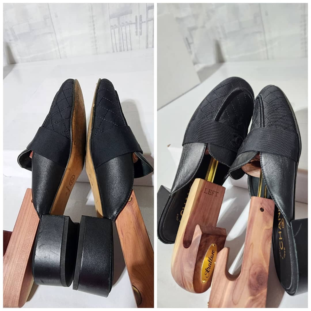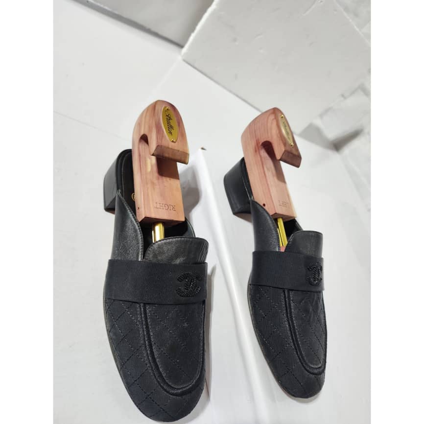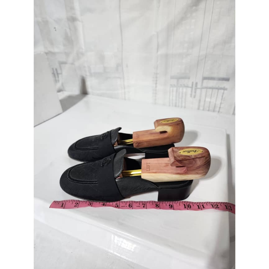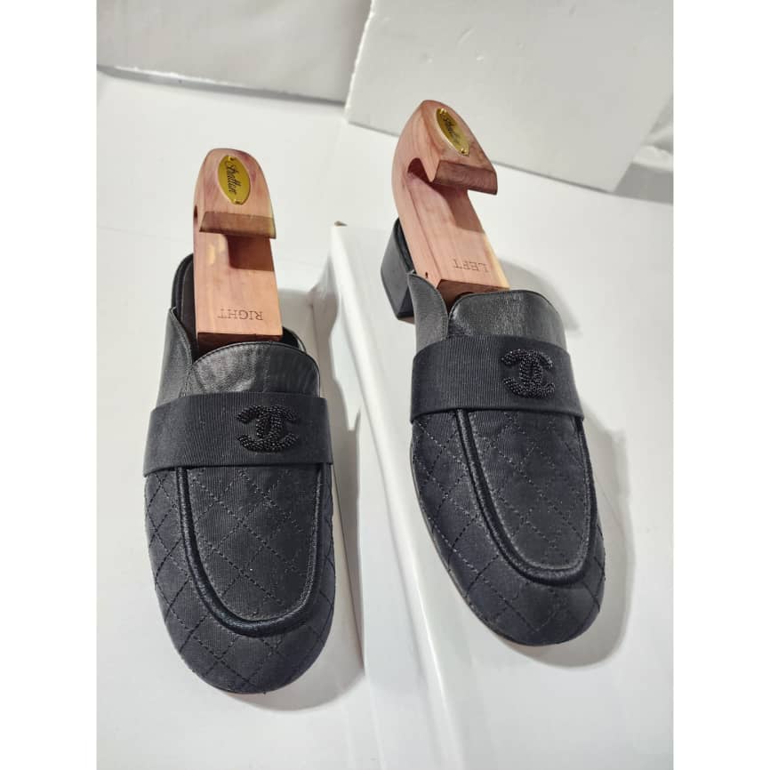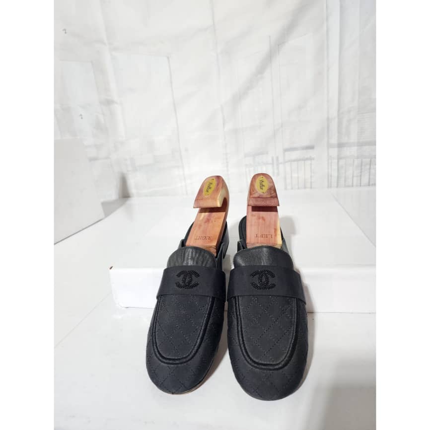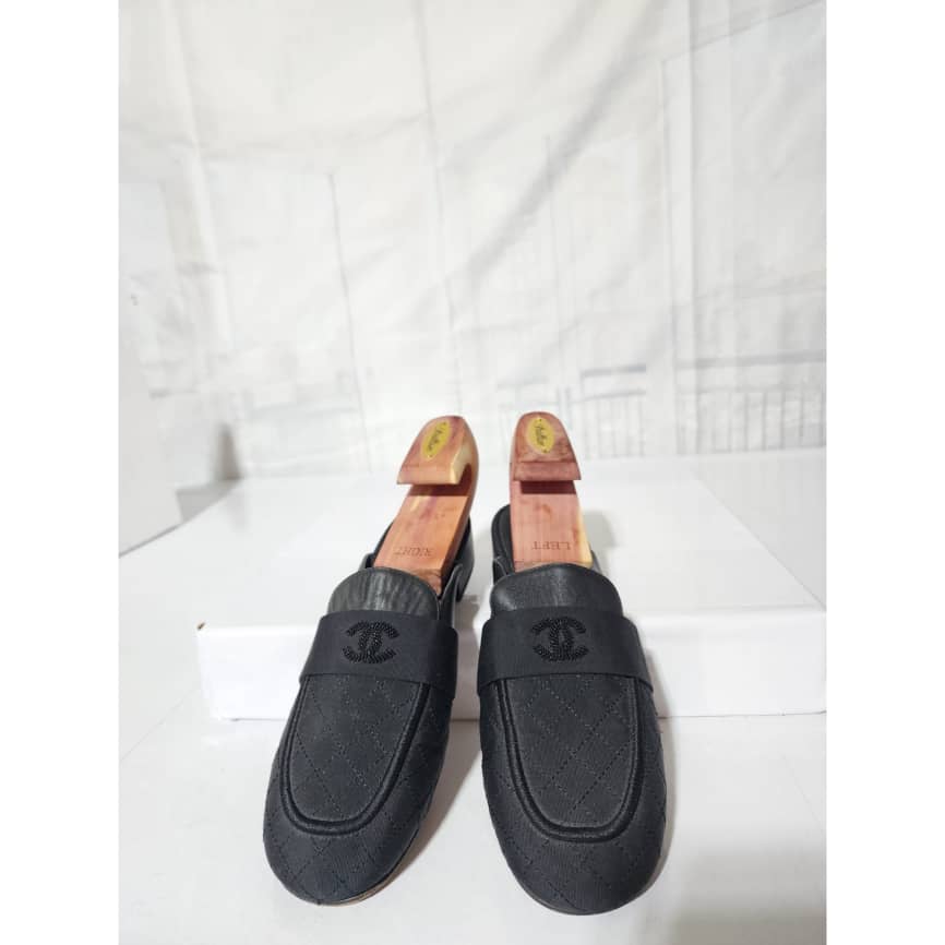This authentic Chanel Cloth Mules Black Size 41 is in it’s pre-owned condition. The exterior is clean and beautiful. Interior is clean. The sole of the shoe shows scratches sign of wear and scuffs to it.