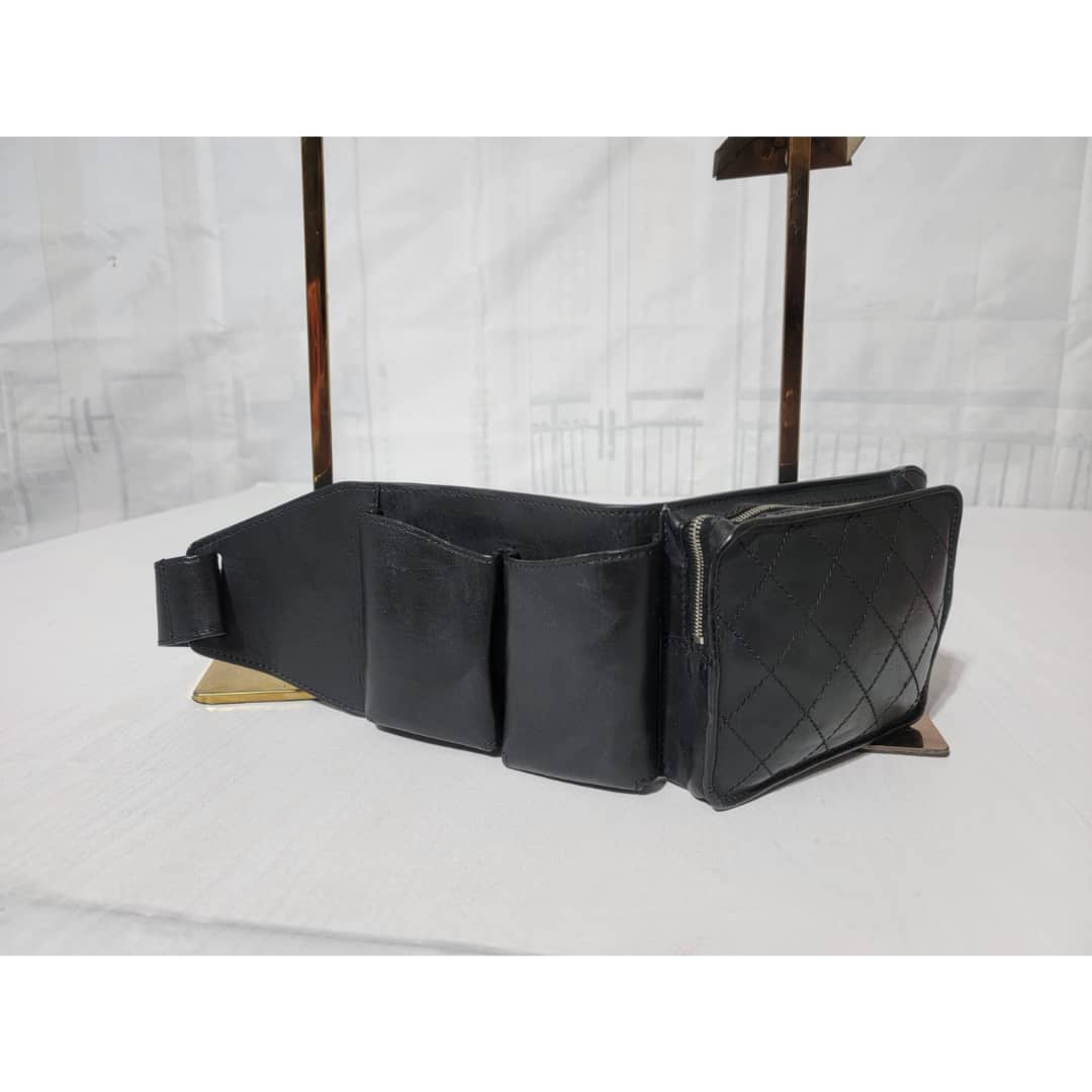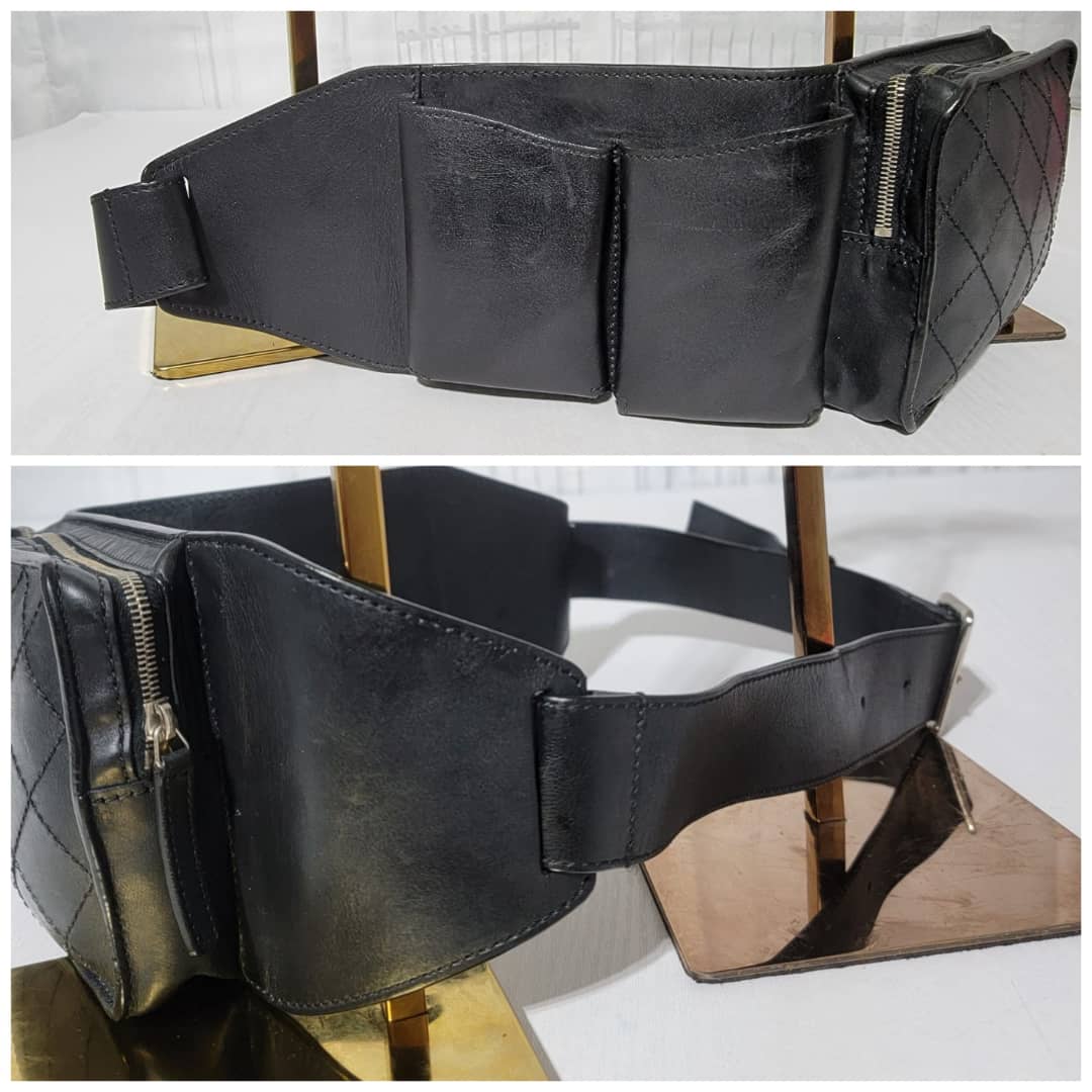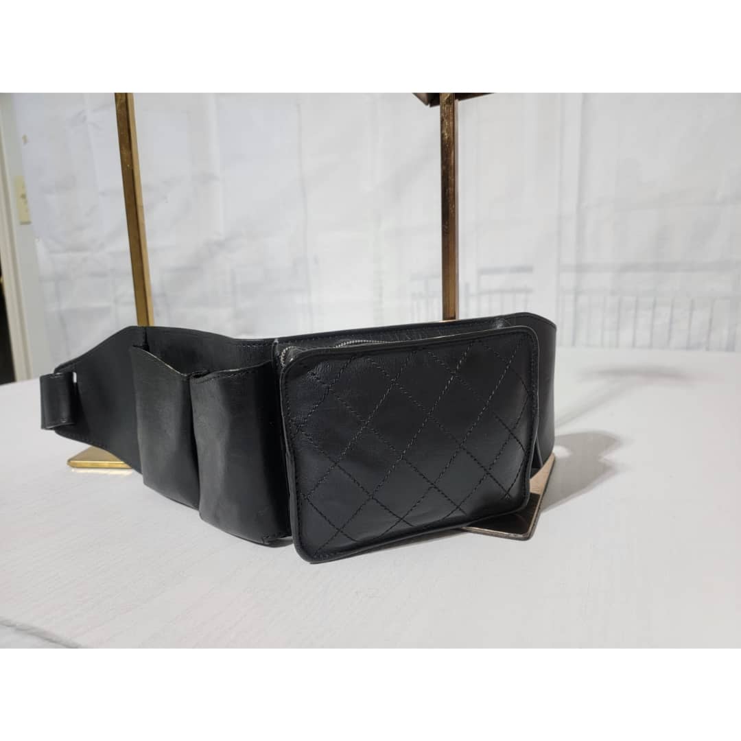This authentic Chanel unisex waist matelassé leather bag Black is in it’s good pre-owned condition. The exterior leather is clean and beautiful. Interior is clean. Silver hardware.