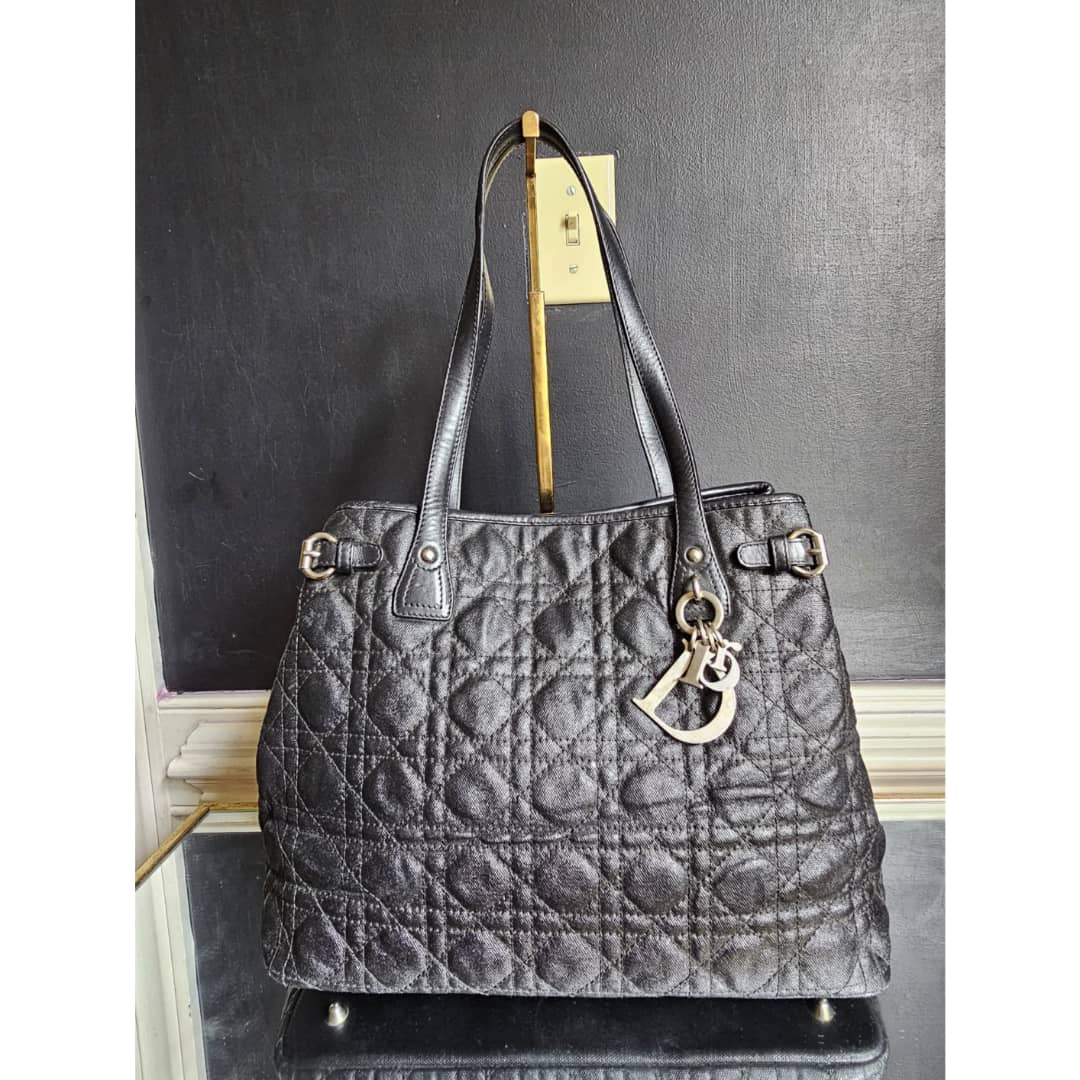 This authentic CHRISTIAN DIOR Cannage Coated Canvas Tote Bag Black is in it’s good pre-owned condition. The exterior leather is clean and beautiful. Interior is clean. Beautiful bag.