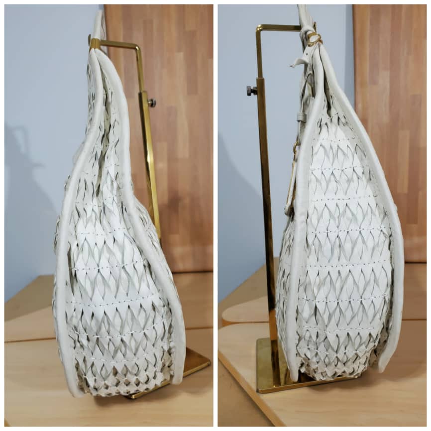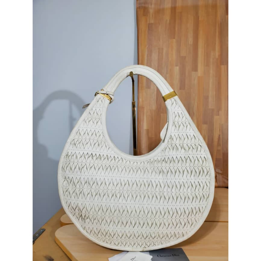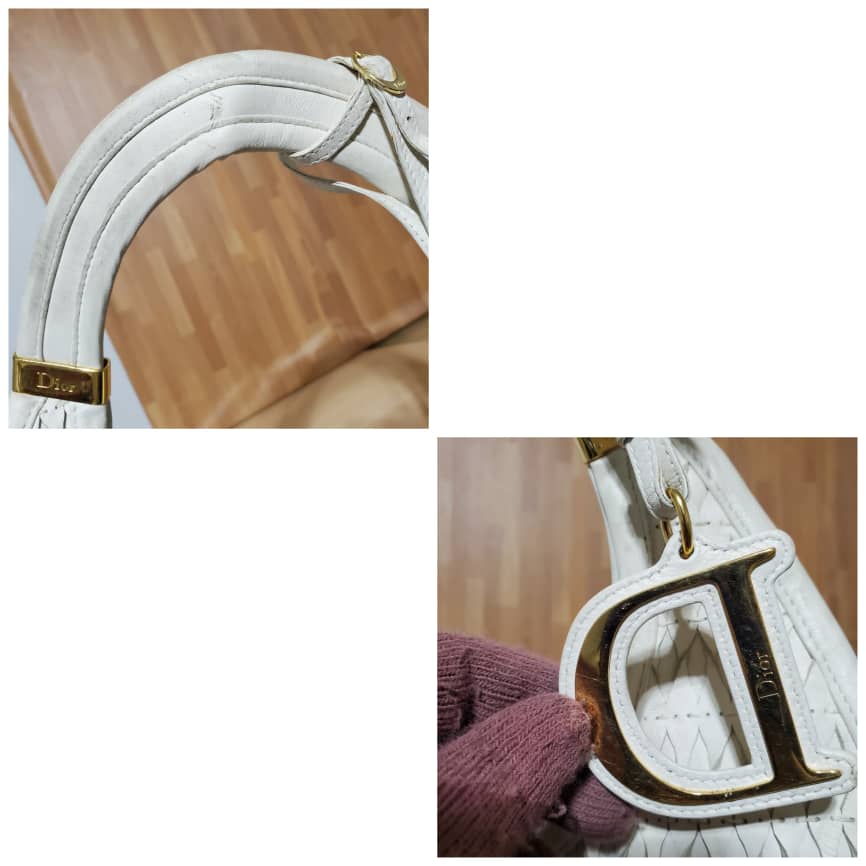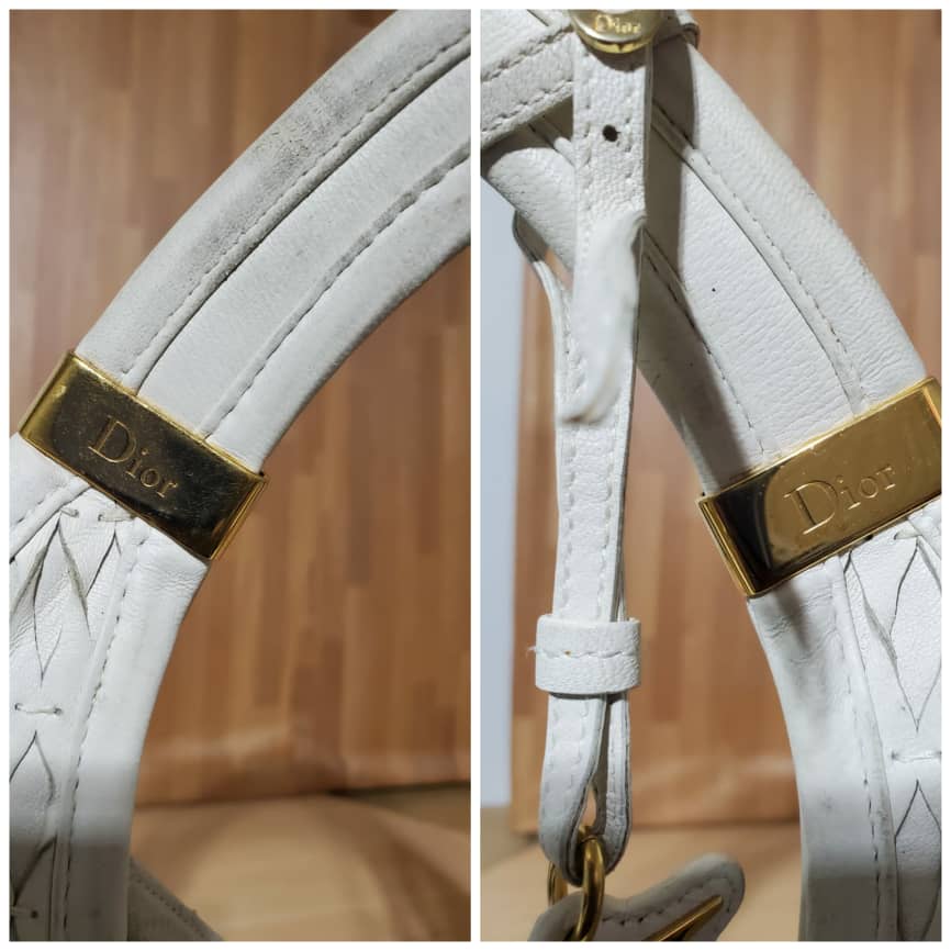 This authentic Christian Dior Diorita Contrast Twist Medium Hobo off white. Is in its pre-owned good condition. The exterior is clean and beautifully Woven. Interior is clean. The base edges shows little scratch. And handle. Beautiful bag