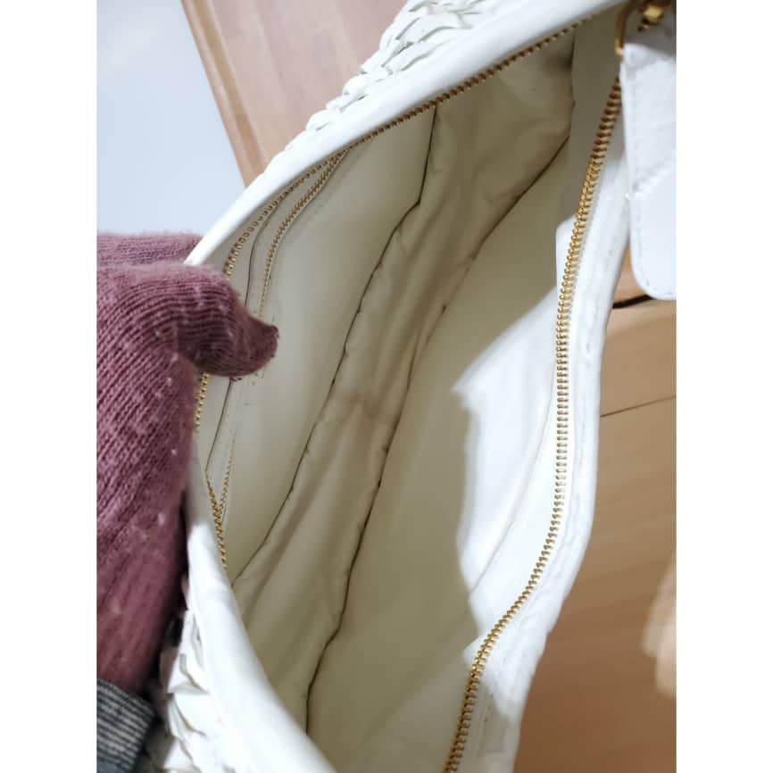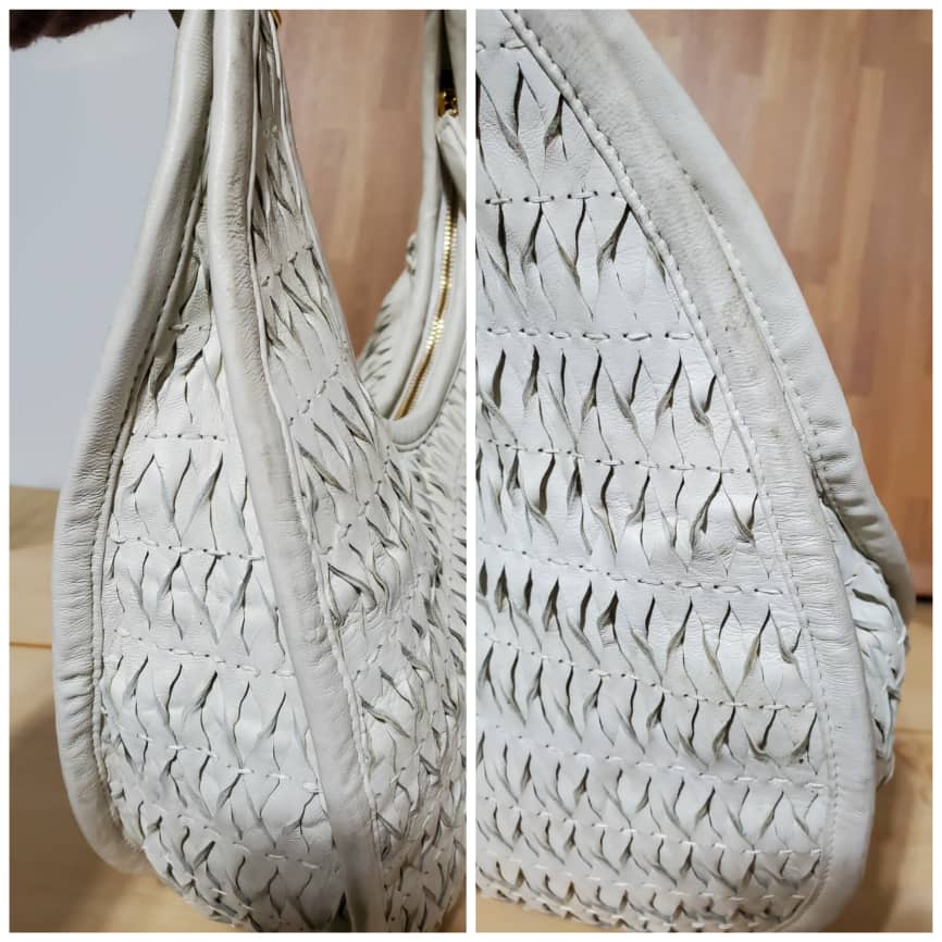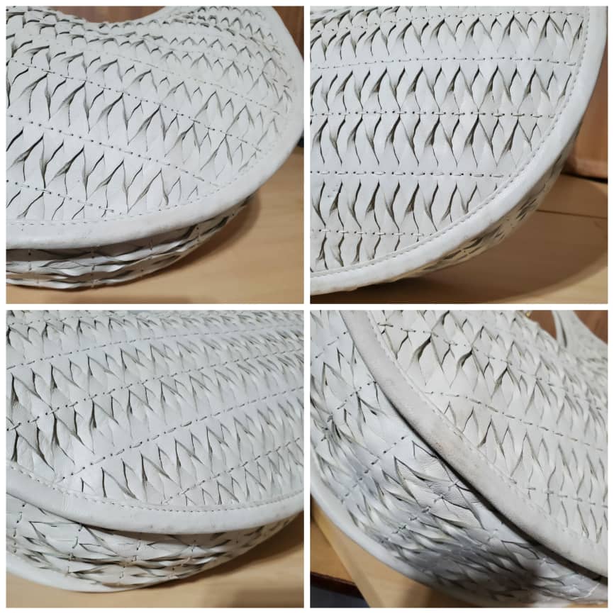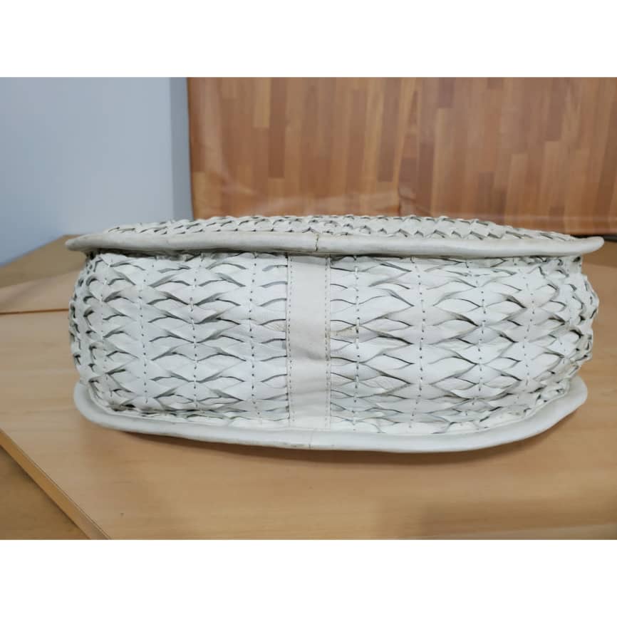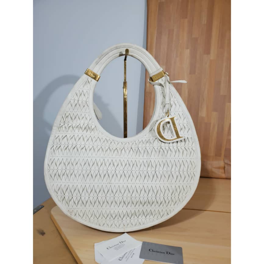 This authentic Christian Dior Diorita Contrast Twist Medium Hobo off white. Is in its pre-owned good condition. The exterior is clean and beautifully Woven. Interior is clean. The base edges shows little scratch. And handle. Beautiful bag