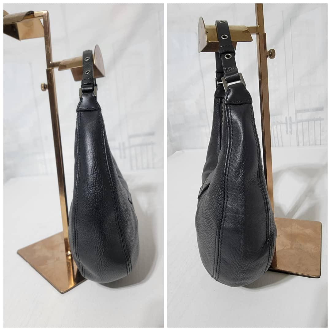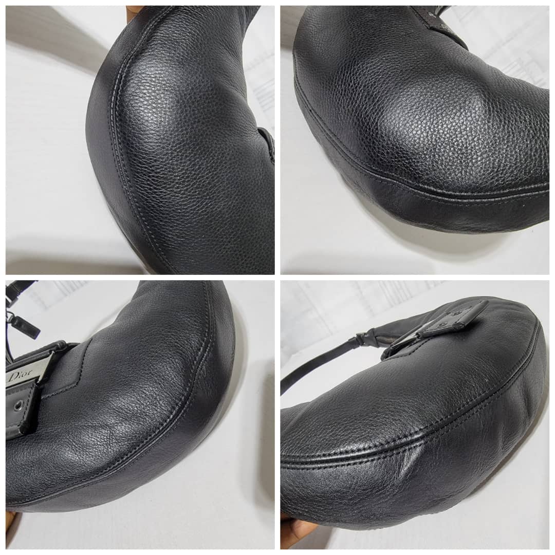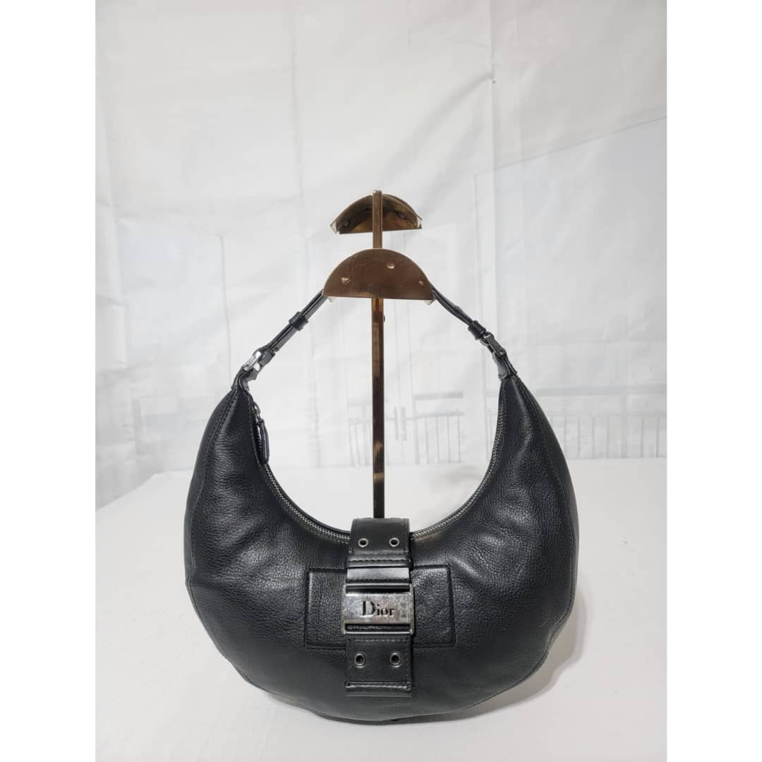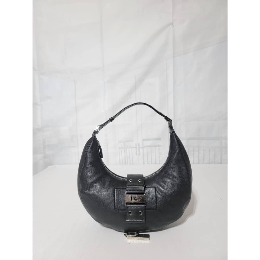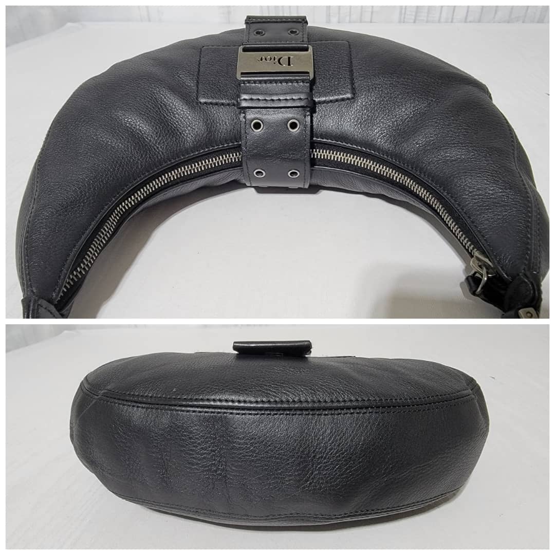 This authentic CHRISTIAN DIOR Leather Street Chic Hobo Black is in it’s good pre-owned condition. The exterior leather is clean and beautiful. Interior is clean. Silver hardware, it has a Dior logo lock.
