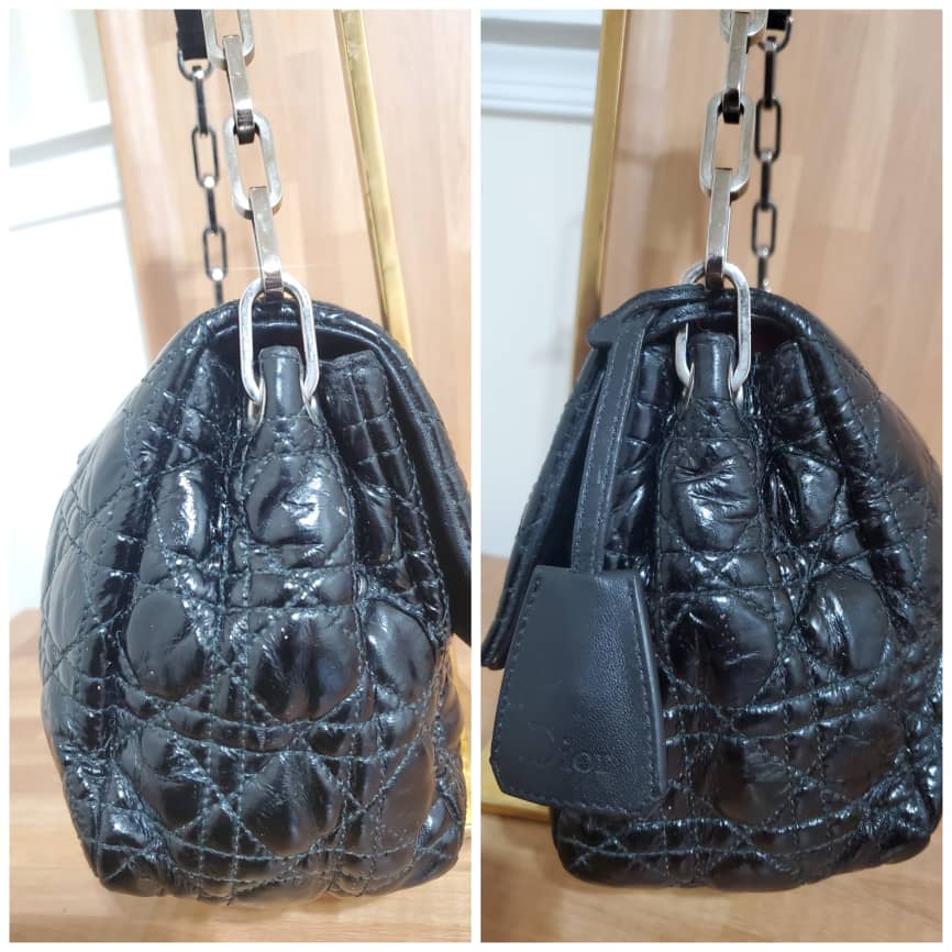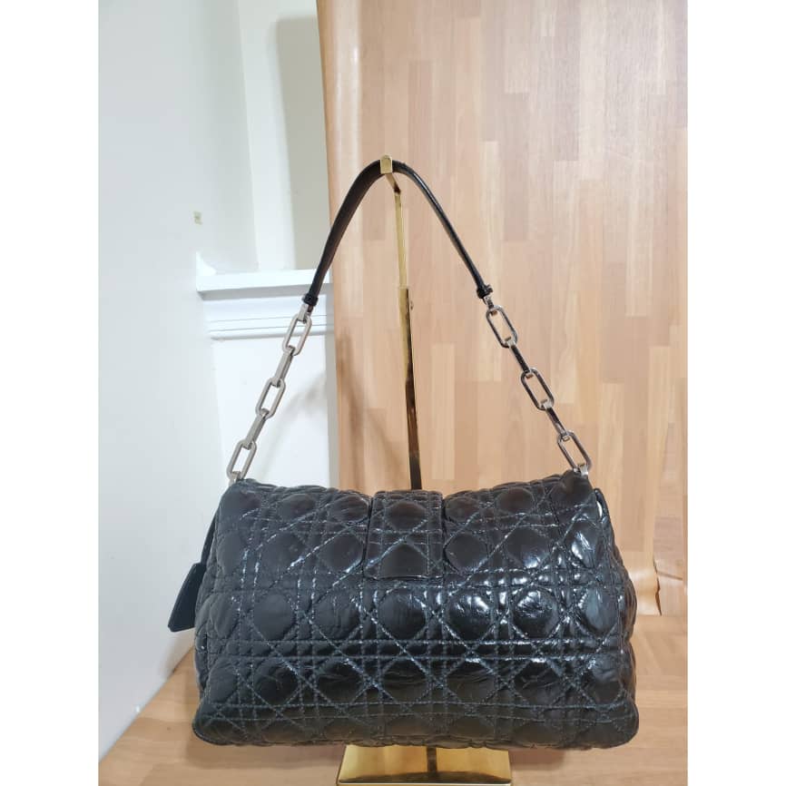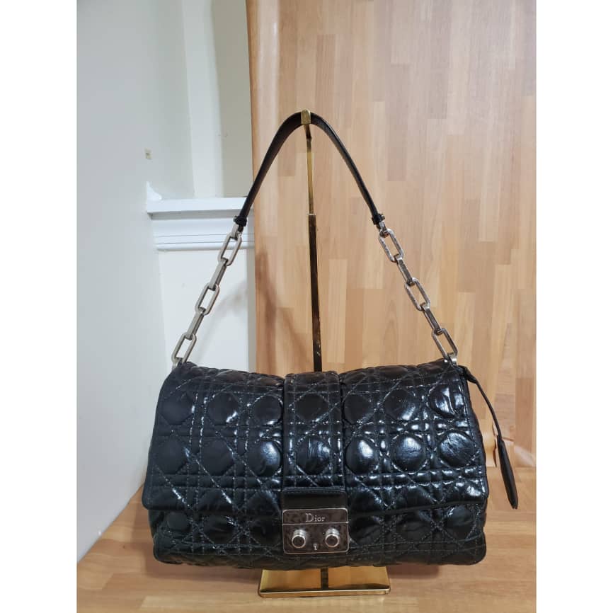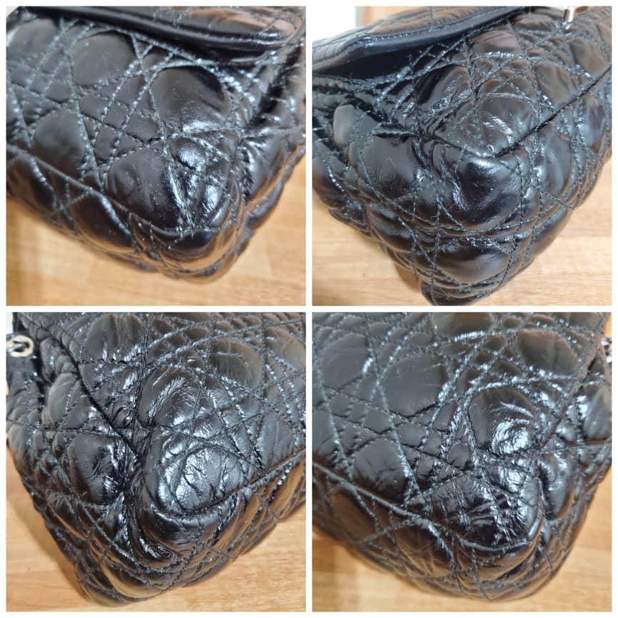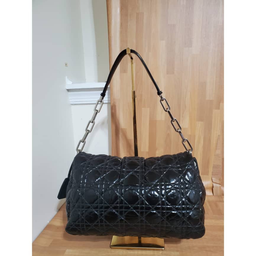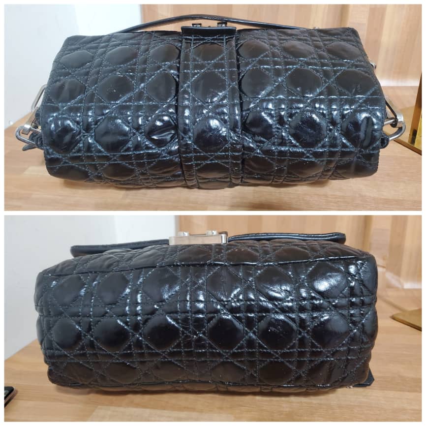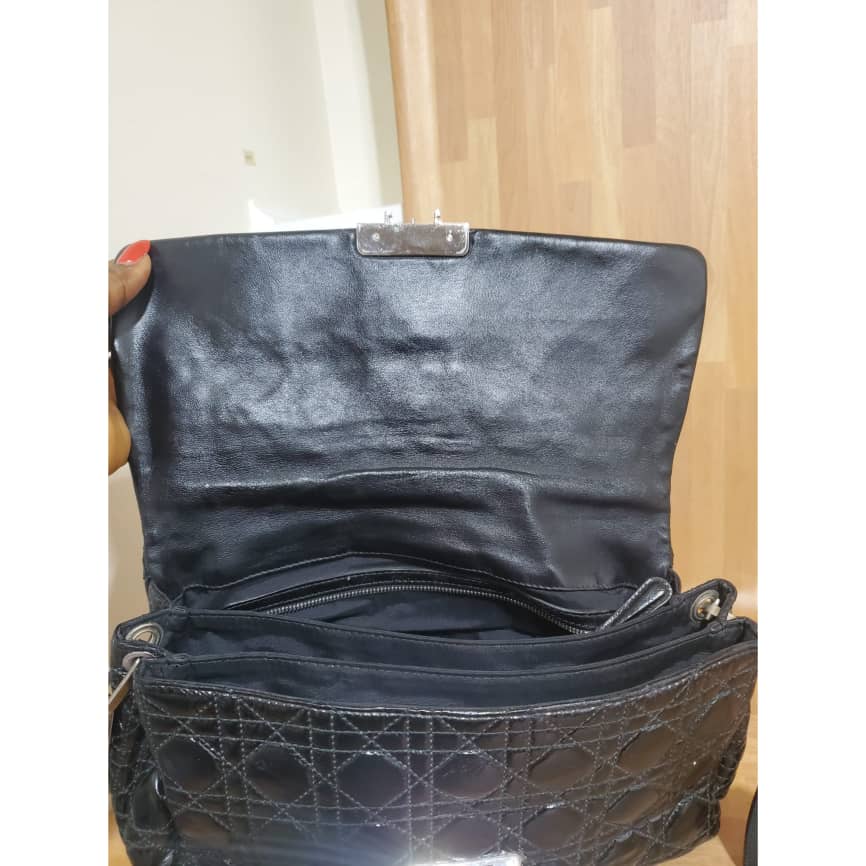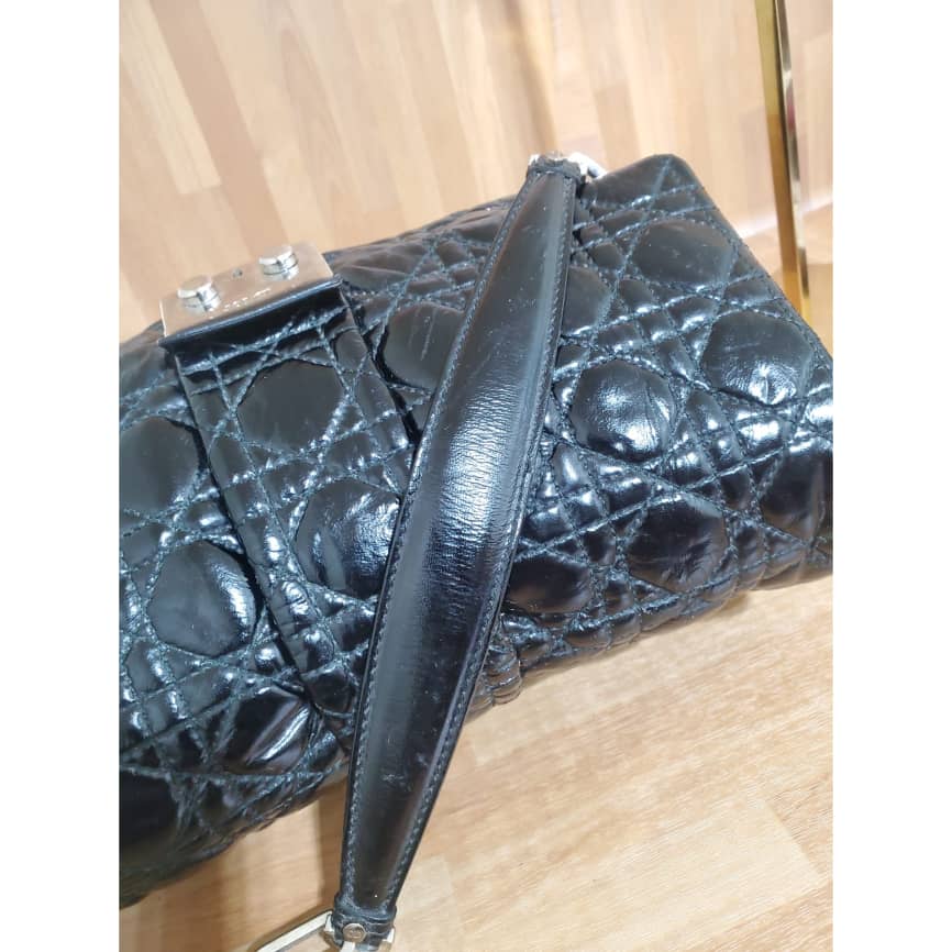This authentic Christian Dior New Lock Flap Bag Cannage Quilt Patent Medium is in it’s pre-owned good condition. The exterior patent leather is clean and beautiful. Interior is clean.