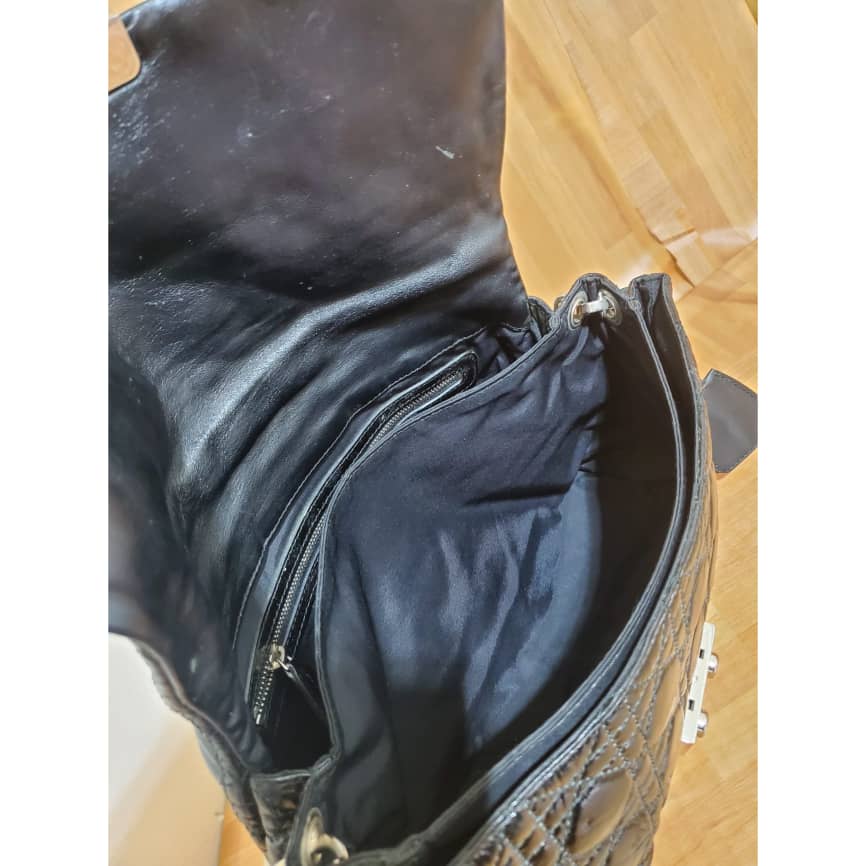 Closure/Opening: Flap top with Dior engraved pinch-lock closure