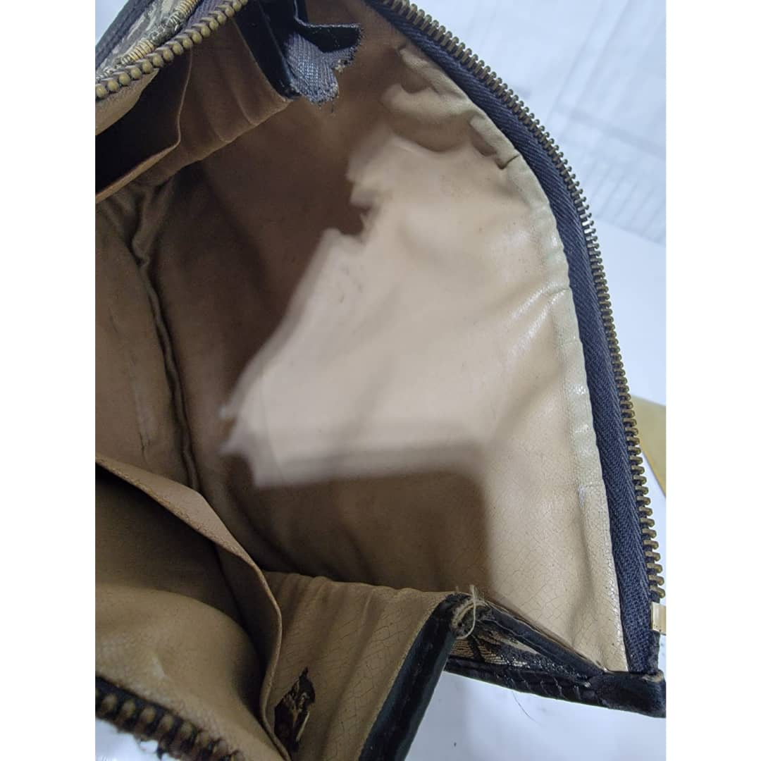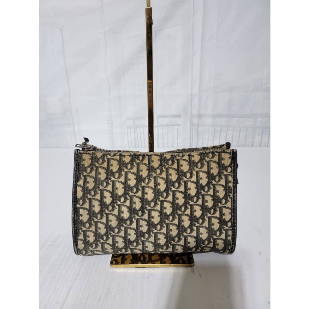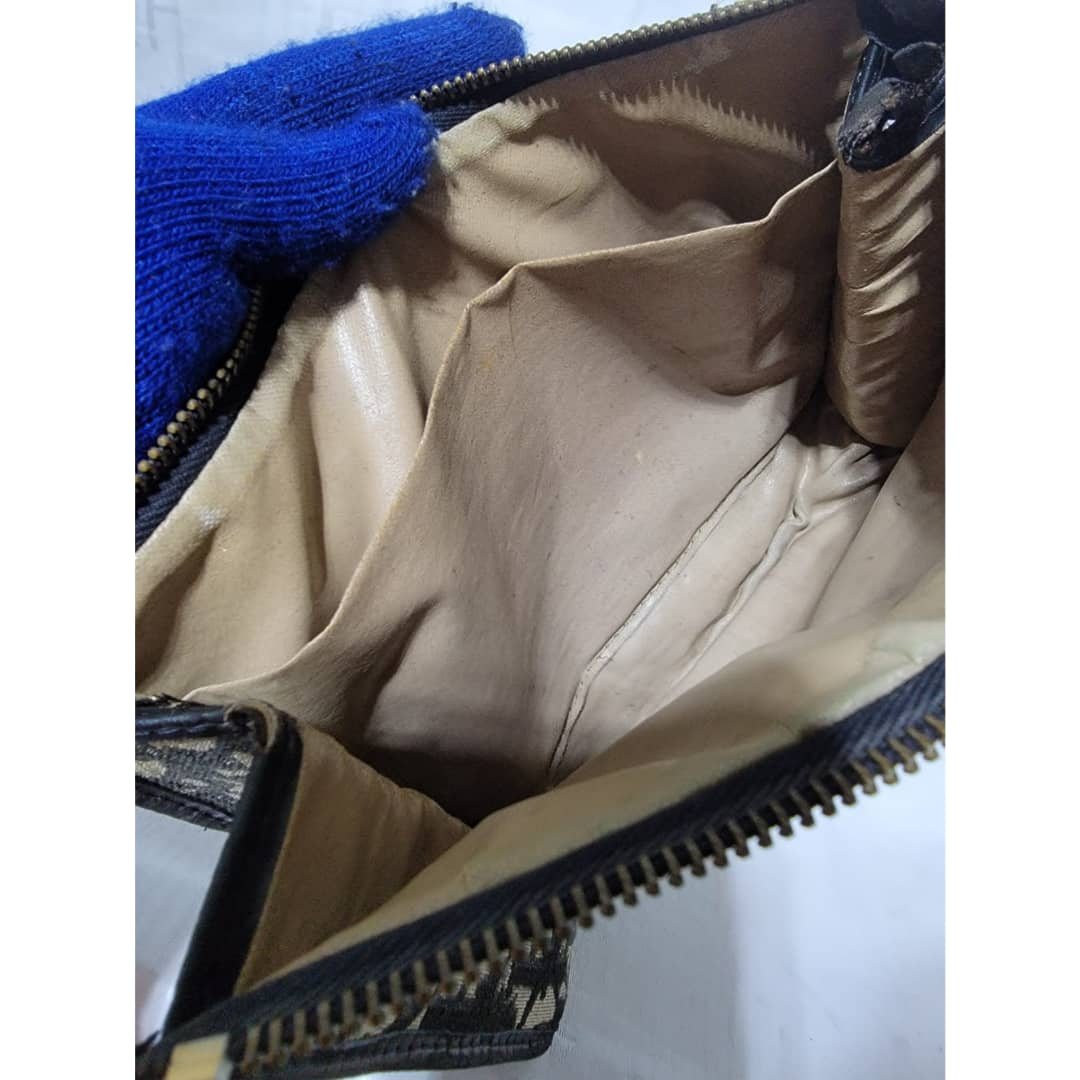 This authentic CHRISTIAN DIOR OBLIQUE POUCH/CLUTCH Black/Off-White is in it’s good pre-owned condition. The exterior canvas is clean. the canvas is Faded. The top trim shows sign of wear and thread pull. Interior is clean, there is a sign of wear in the interior leather. It is an 80’s vintage clutch.