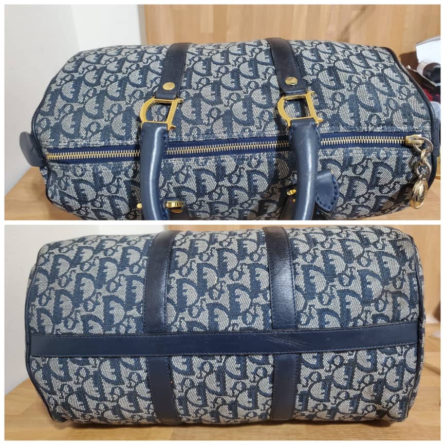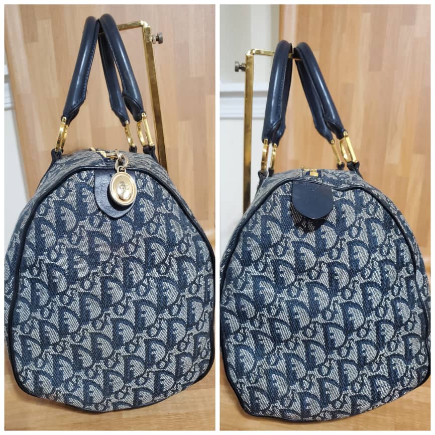 This authentic Christian Dior Trotter Boston 35 is in it’s pre-owned good condition. Has sign of use. The exterior canvas is clean and beautiful. Interior is clean. Base edges shows Light scratches on the leather trims .