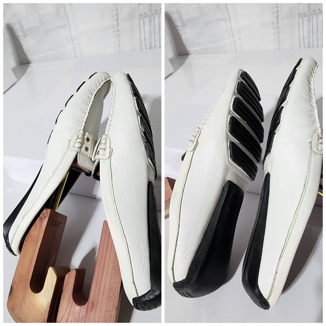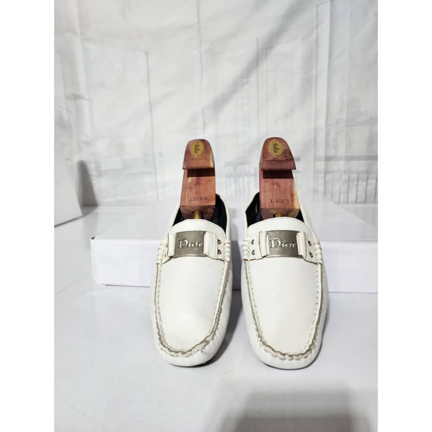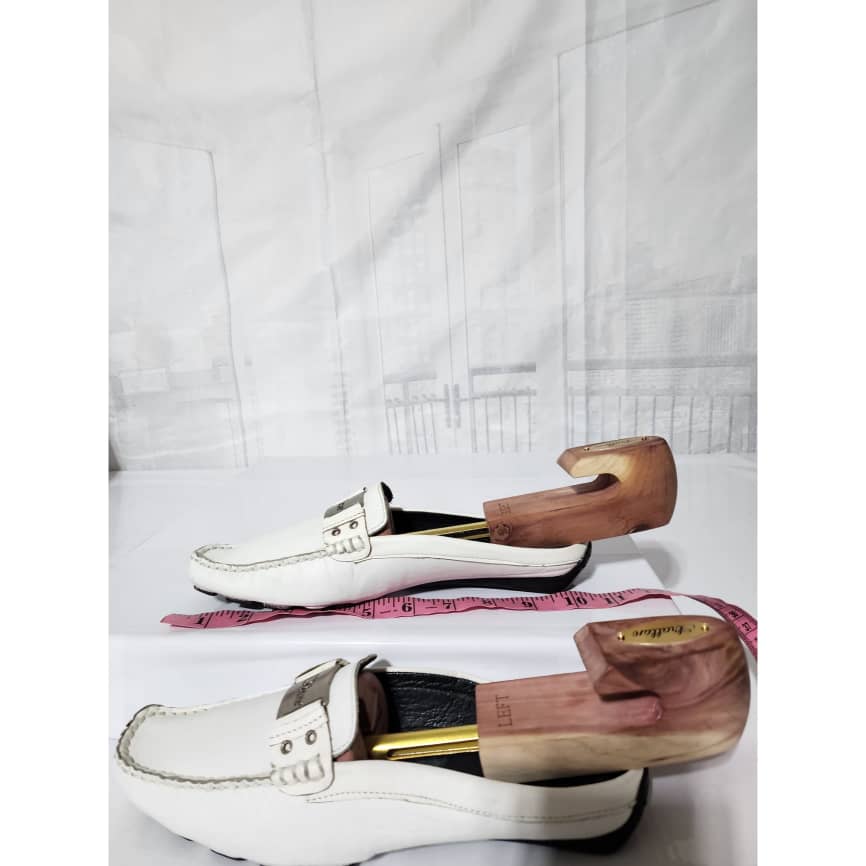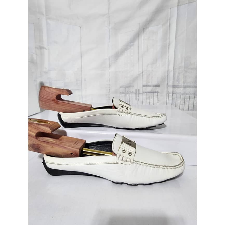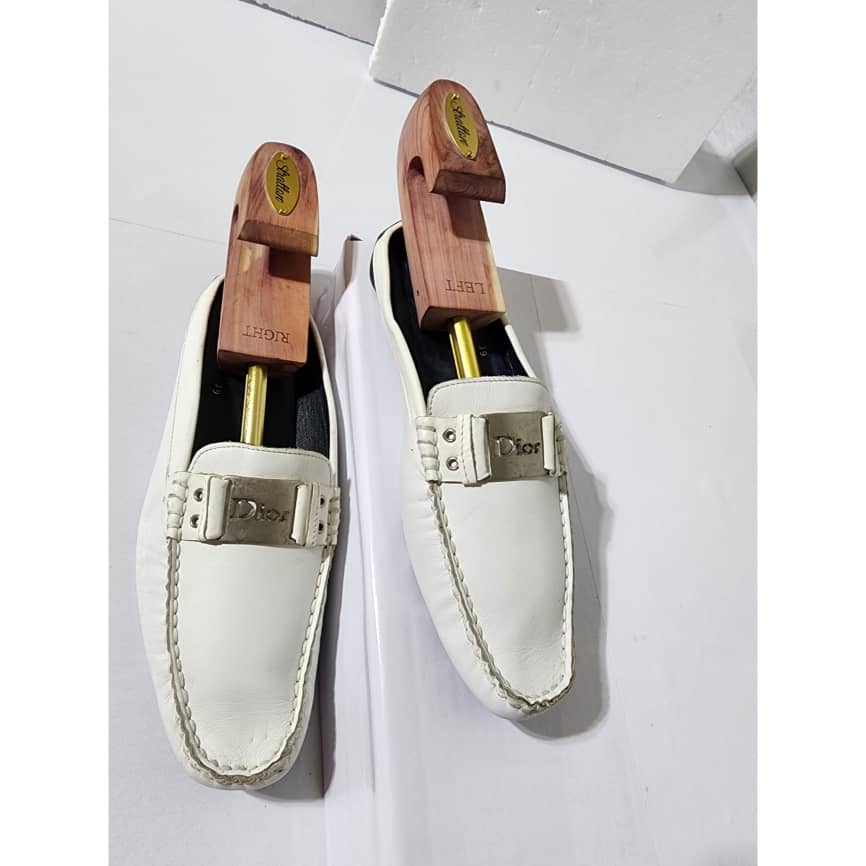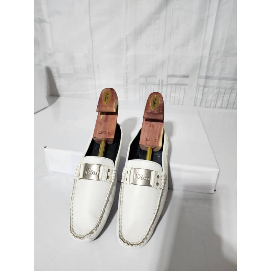 This authentic Christian Dior Vintage Leather Loafer White Size 39 is in it’s pre-owned condition. The exterior is clean and beautiful, there are little scratch, The interior is clean. The sole is clean. The silver hardware shows scratches to it.