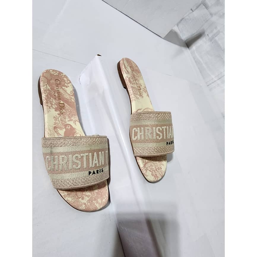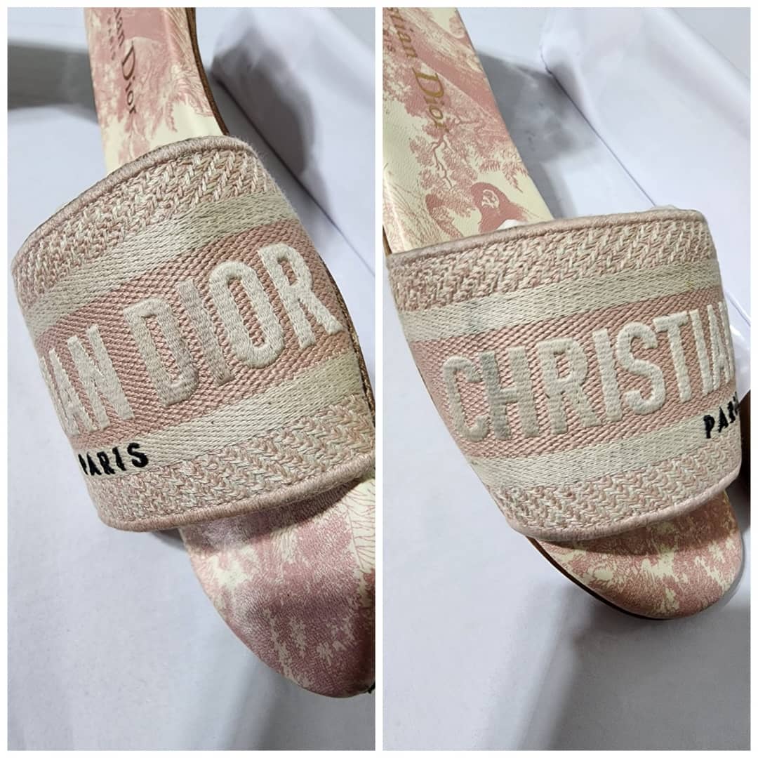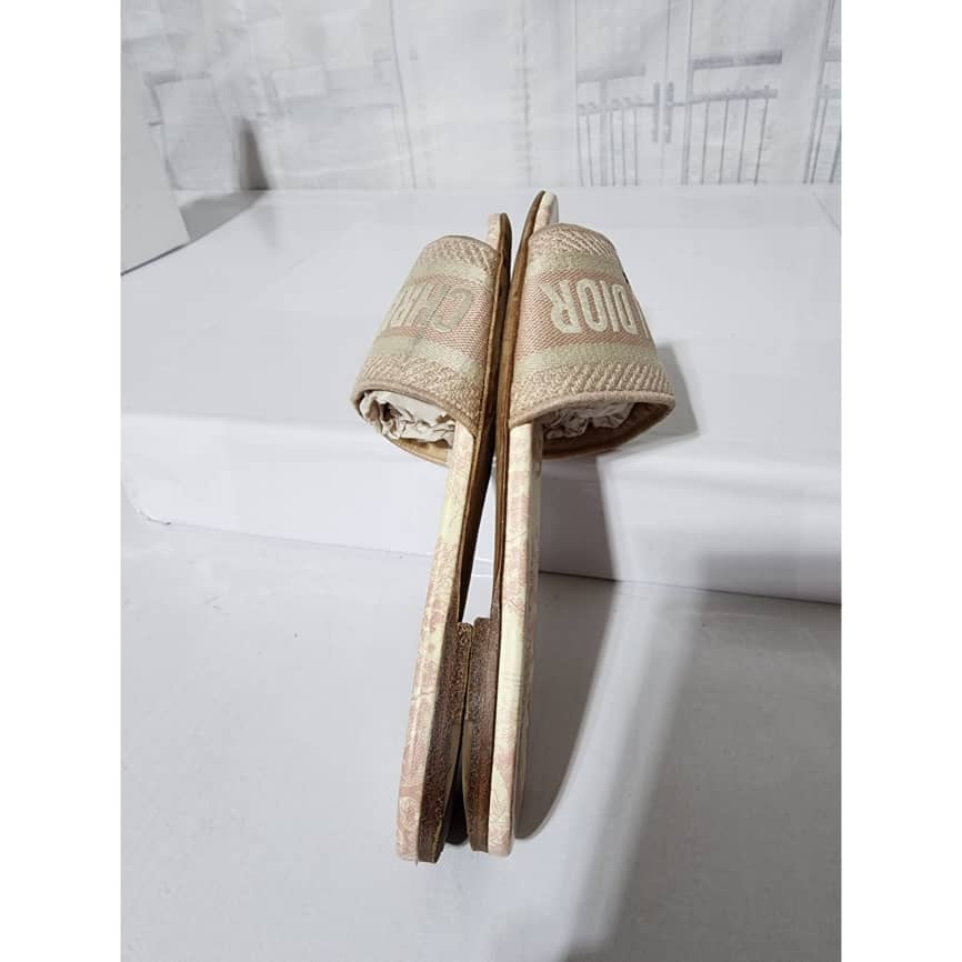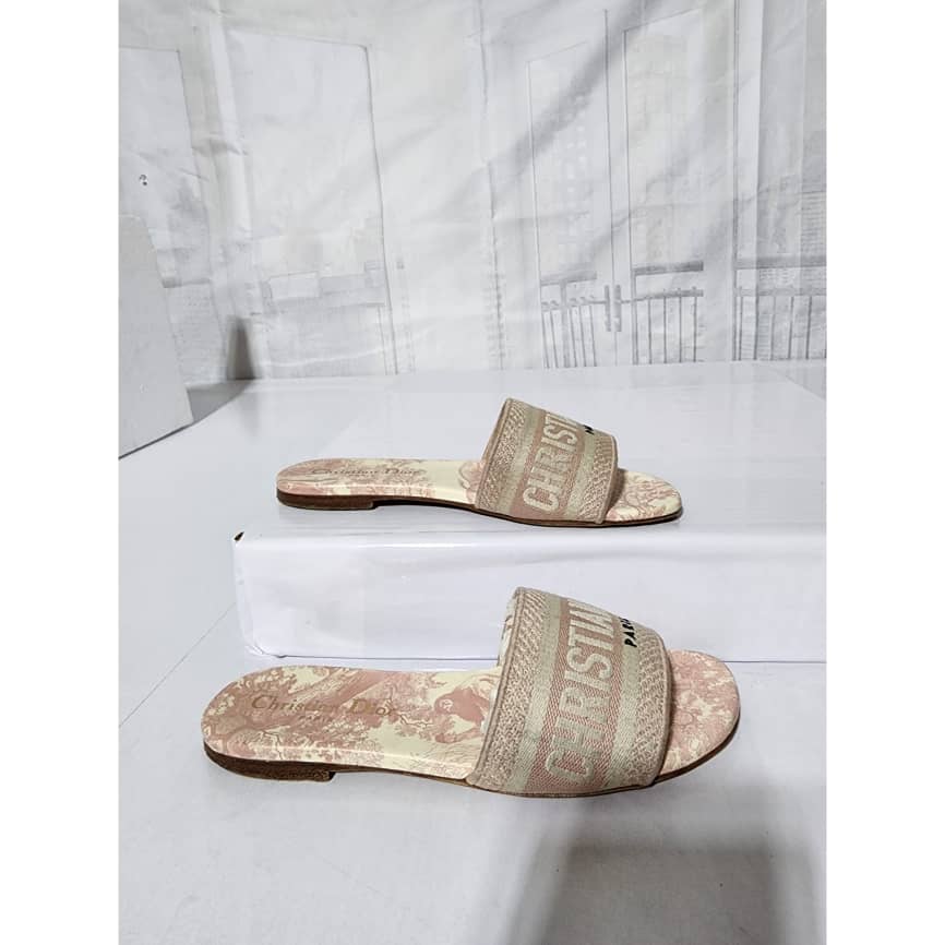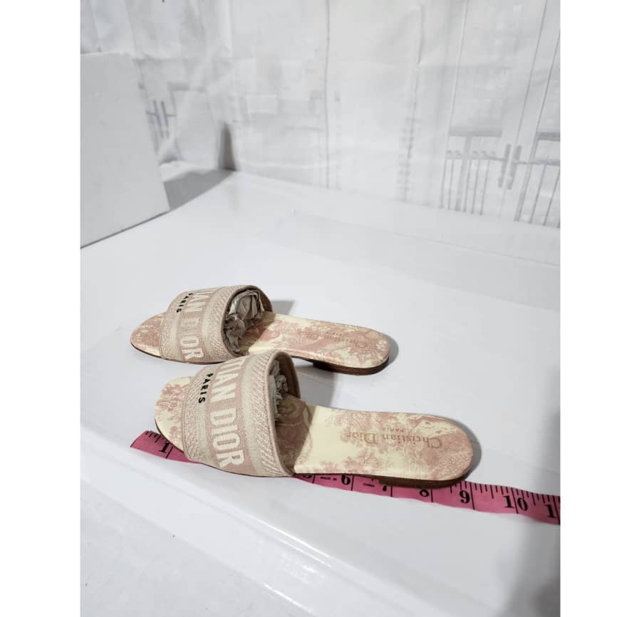 This authentic Dior Embroidered Canvas Dway Flat Slides Pink/Cream Size 35 is in it’s good pre-owned condition. The exterior is clean however, it shows some sign of use to the embroidered canvas. The interior is clean. The sole of the slides shows scratches to it and also little flattening to the corner of the sole. Kindly look at pictures for all details.