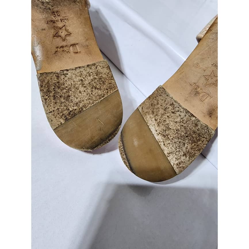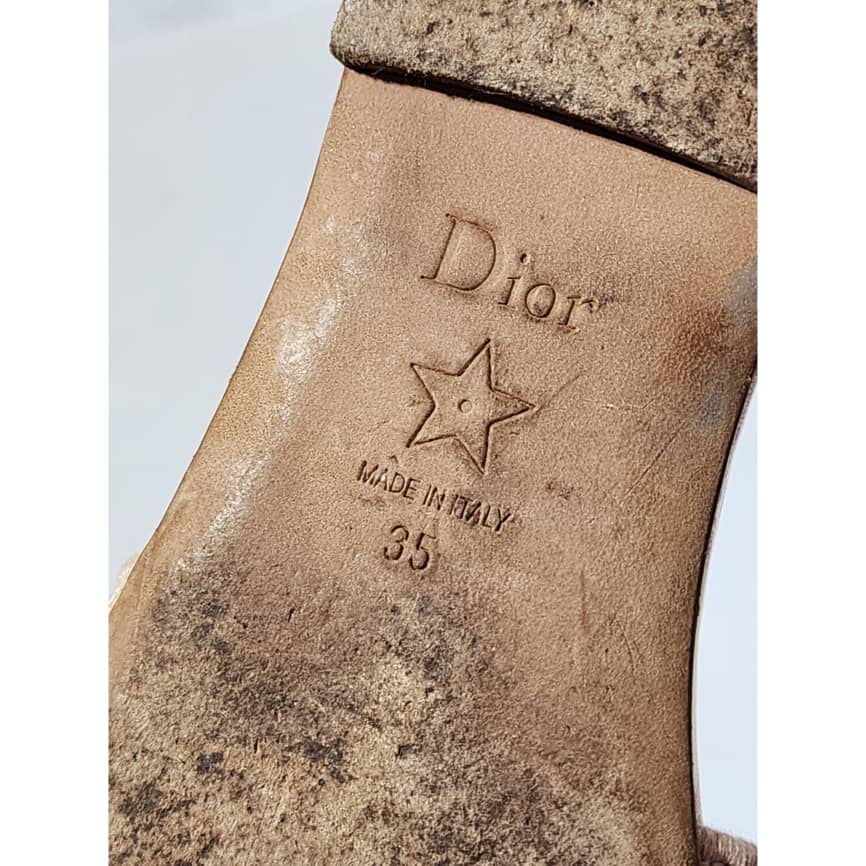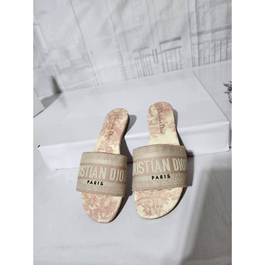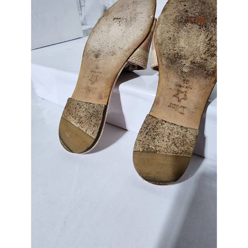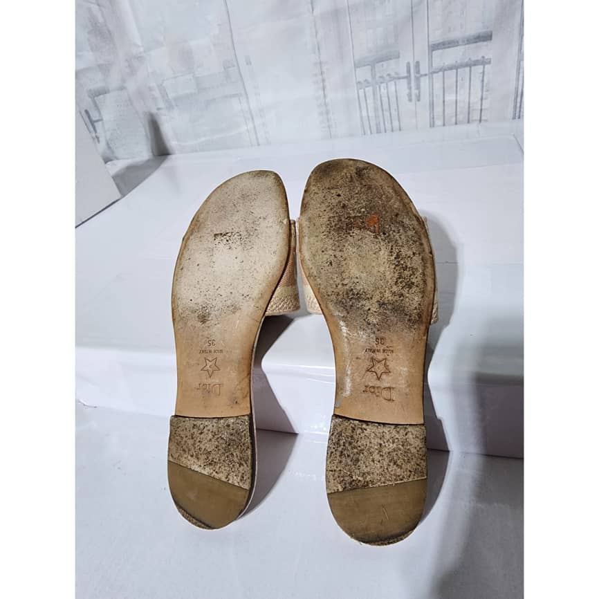 This authentic Dior Embroidered Canvas Dway Flat Slides Pink/Cream Size 35 is in it’s good pre-owned condition. The exterior is clean however, it shows some sign of use to the embroidered canvas. The interior is clean. The sole of the slides shows scratches to it and also little flattening to the corner of the sole. Kindly look at pictures for all details.