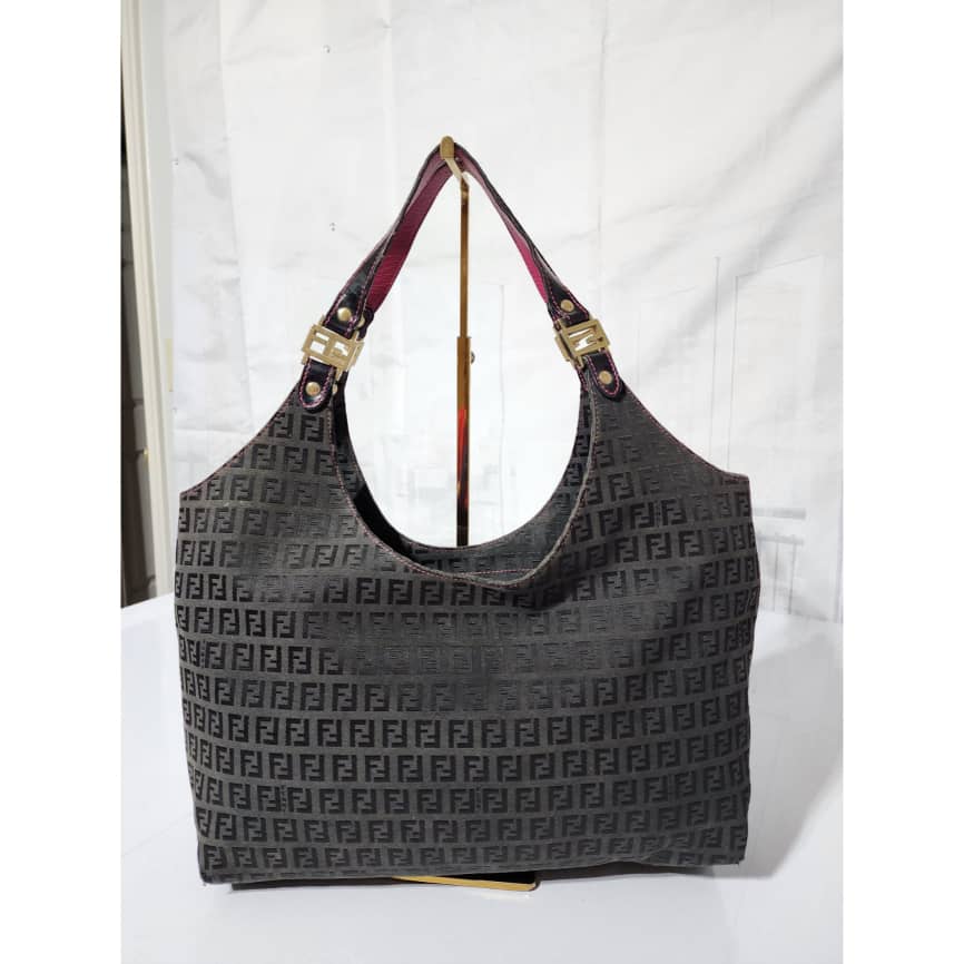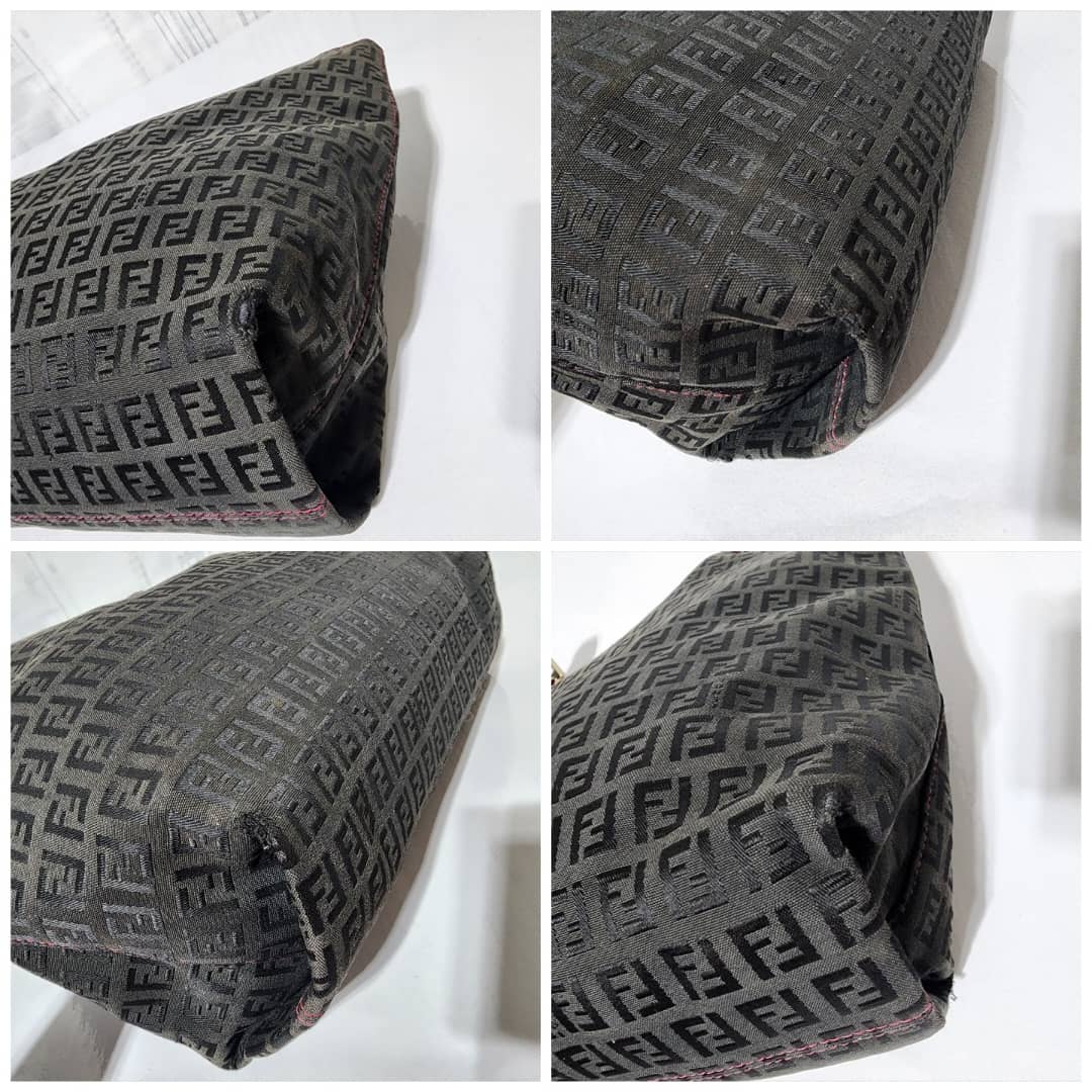This authentic Fendi Zucchino Canvas Grand Shopper Tote Bag Black is in itβs pre-owned condition. The exterior is clean. Interior is clean but shows sign of pen mark and ink stains.