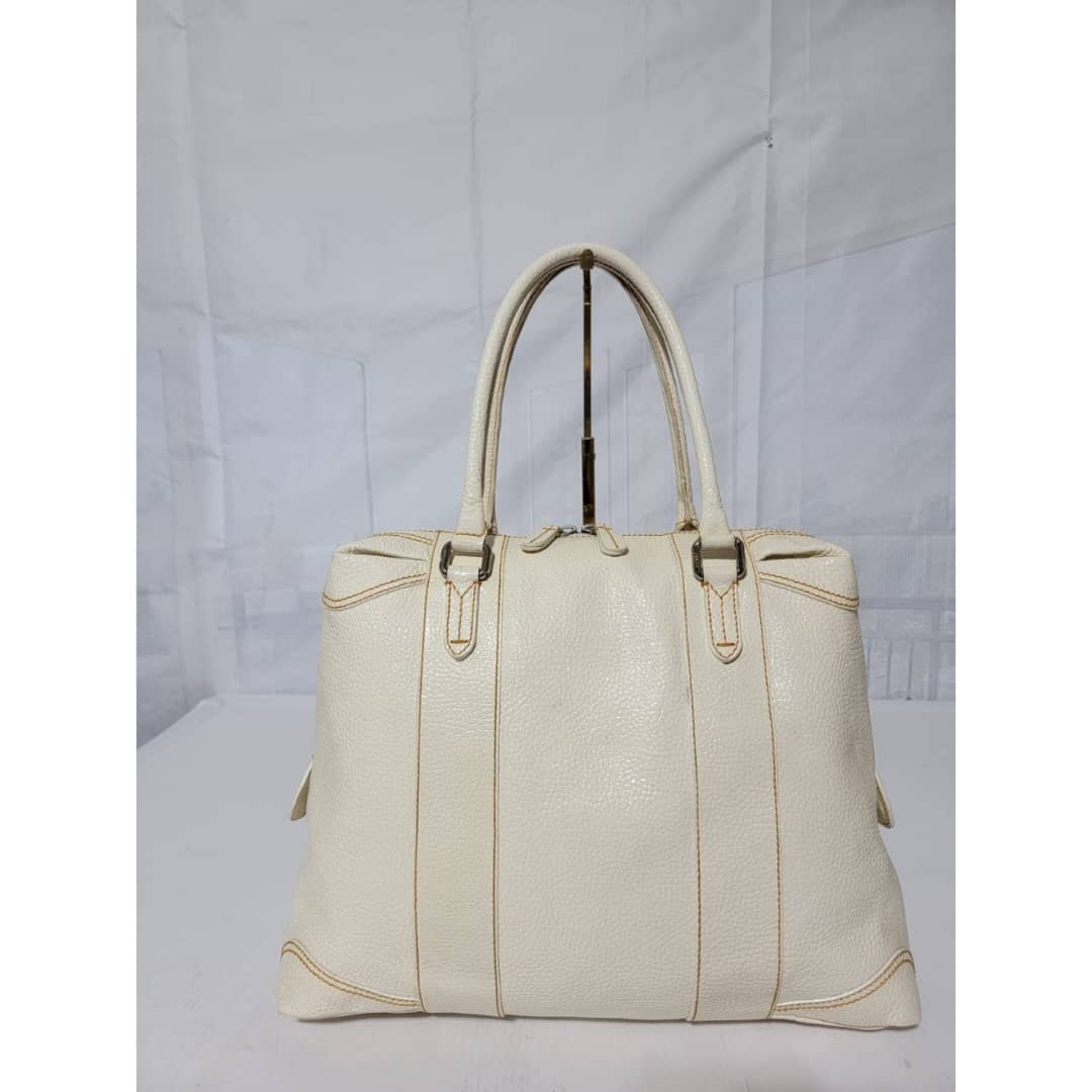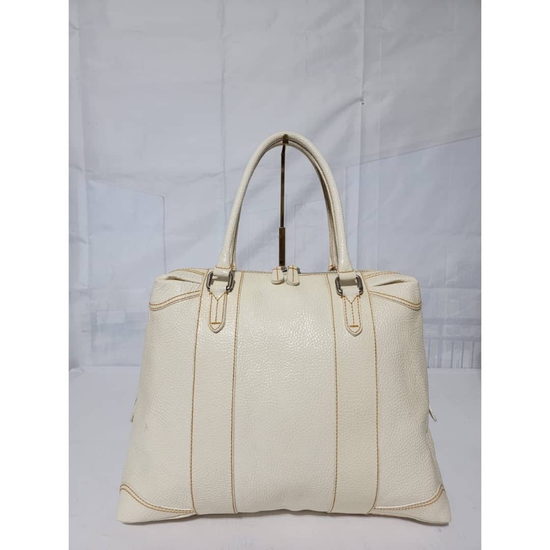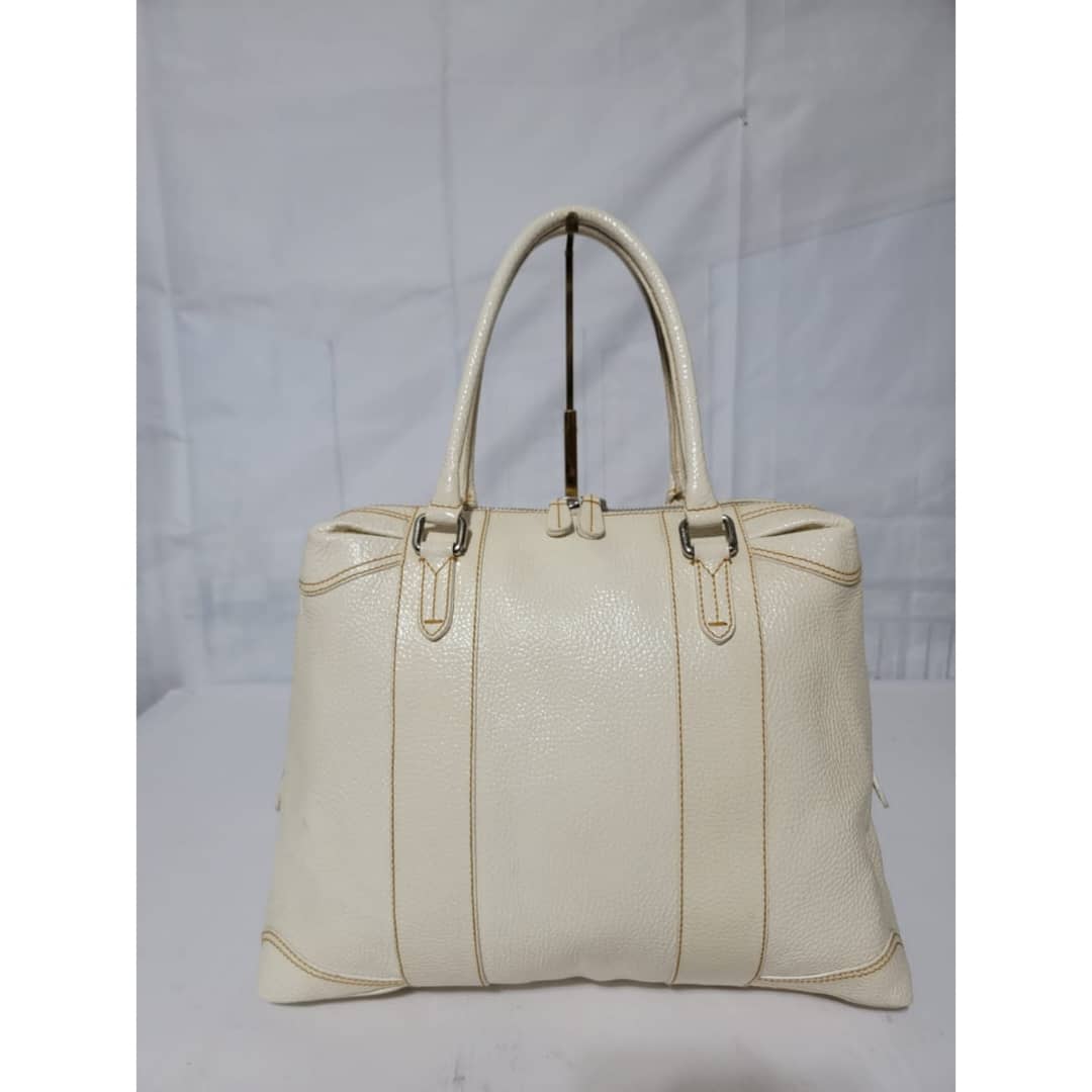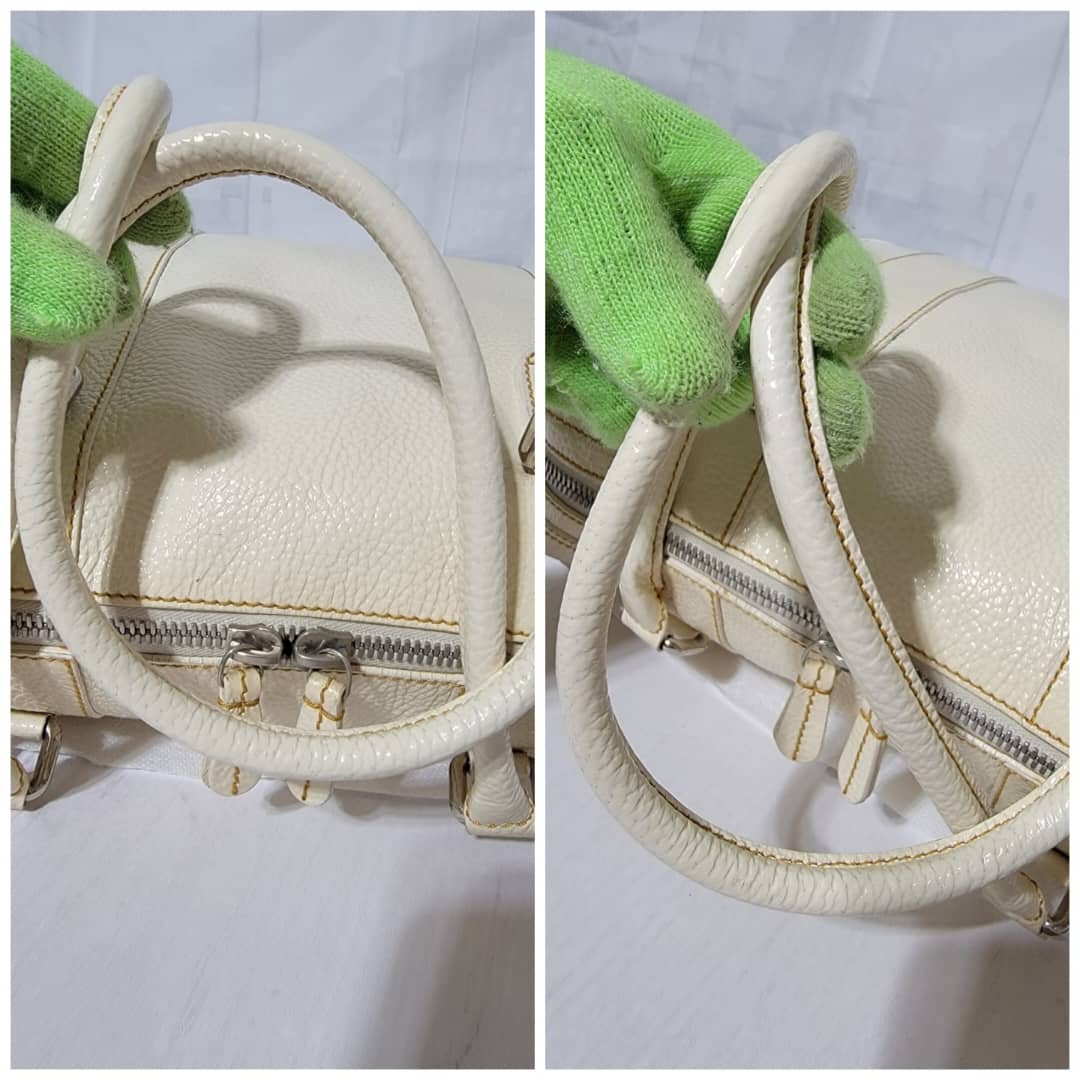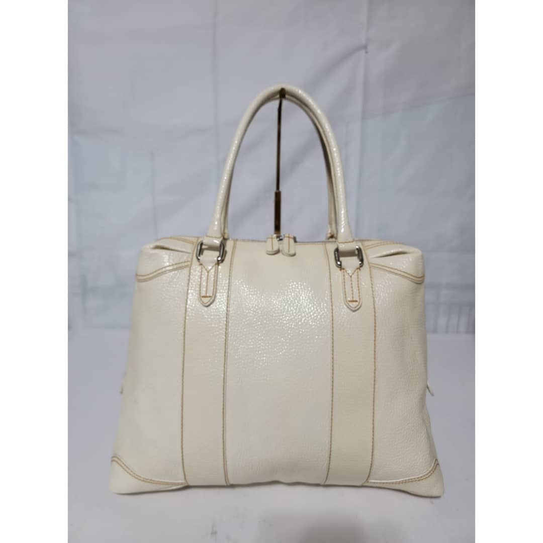 This authentic FENDI Boston Patent Leather Bag Off- White is in itβs good pre-owned condition. The exterior patent leather is clean and beautiful. Interior is clean. Silver hardware.
