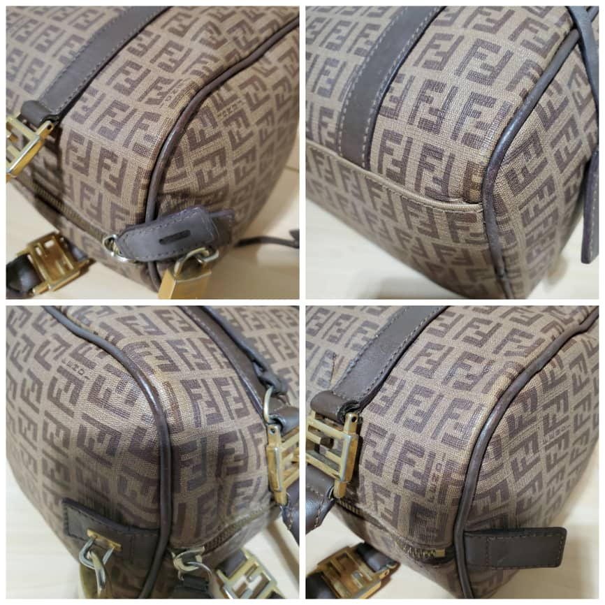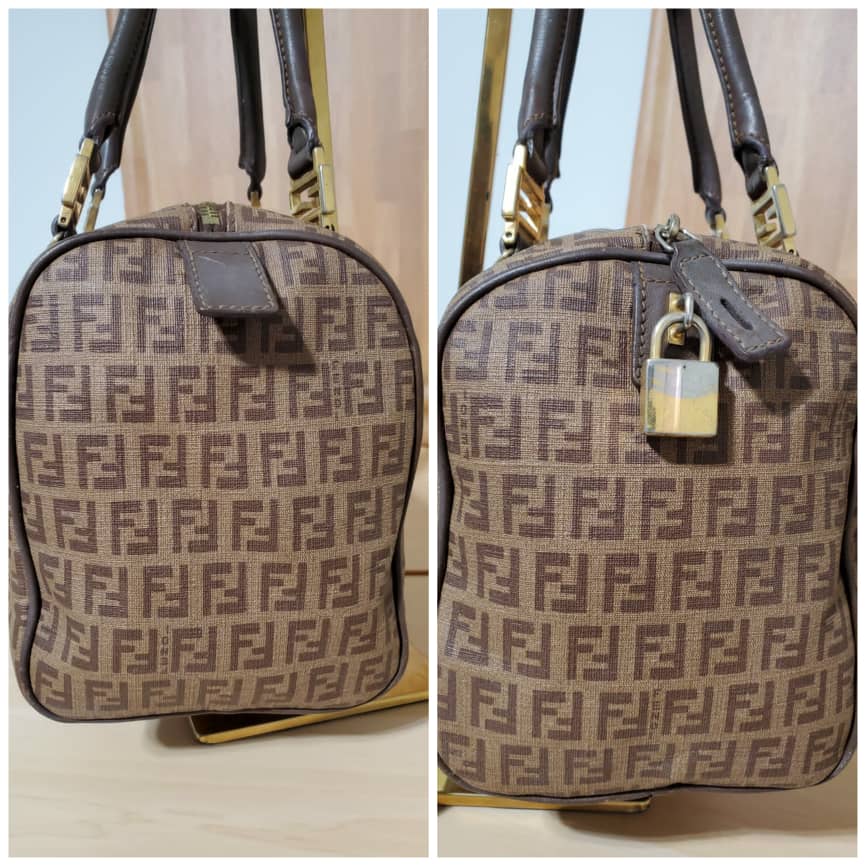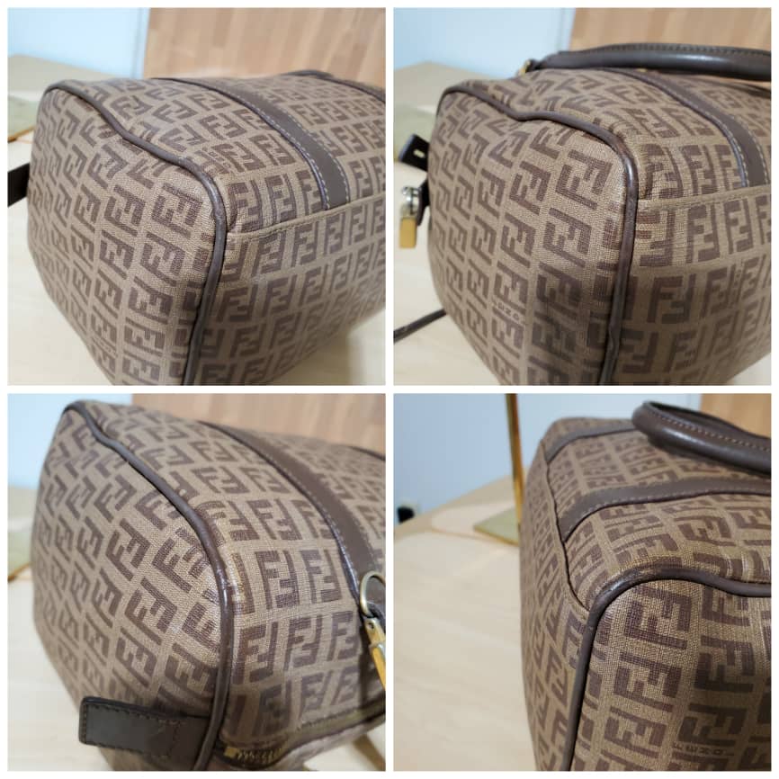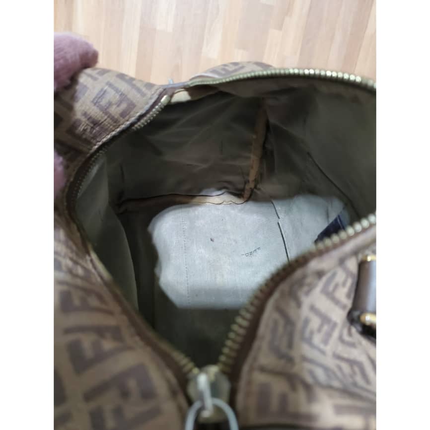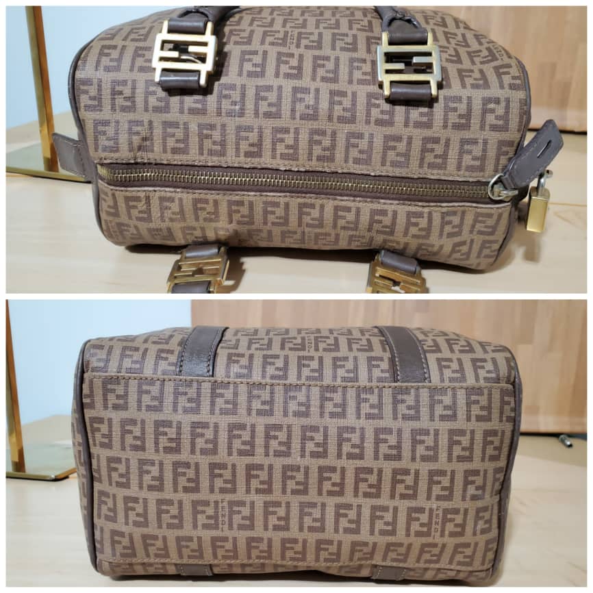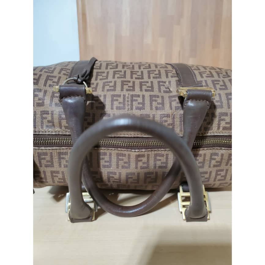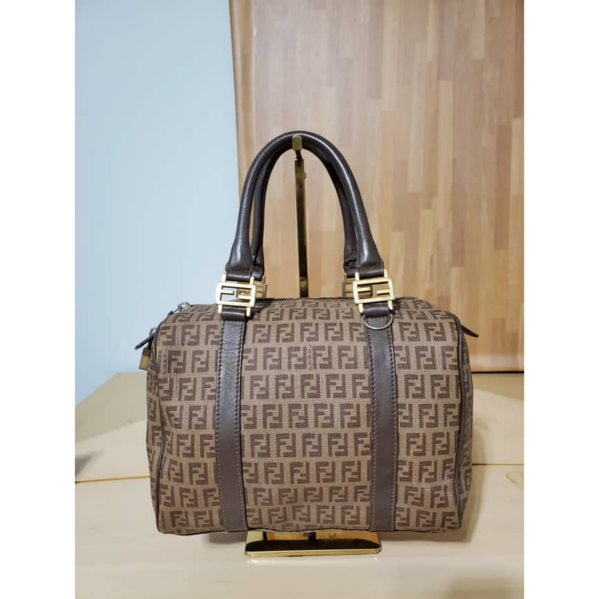 This authentic Fendi Brown/Beige Zucchino Canvas & Leather Small Forever Bauletto Bag is in it’s pre-owned good condition. The exterior canvas is clean and beautiful. Interior is clean. It’s a beautiful bag for the season and perfect everyday bag. Classic touch. Gold hardware.