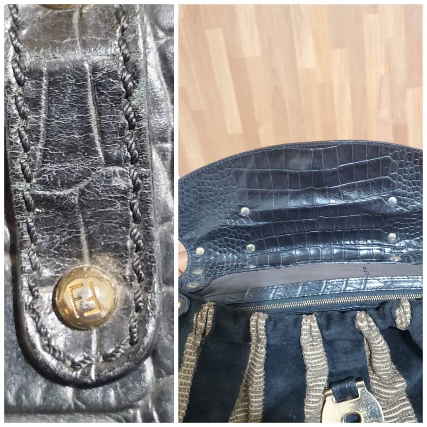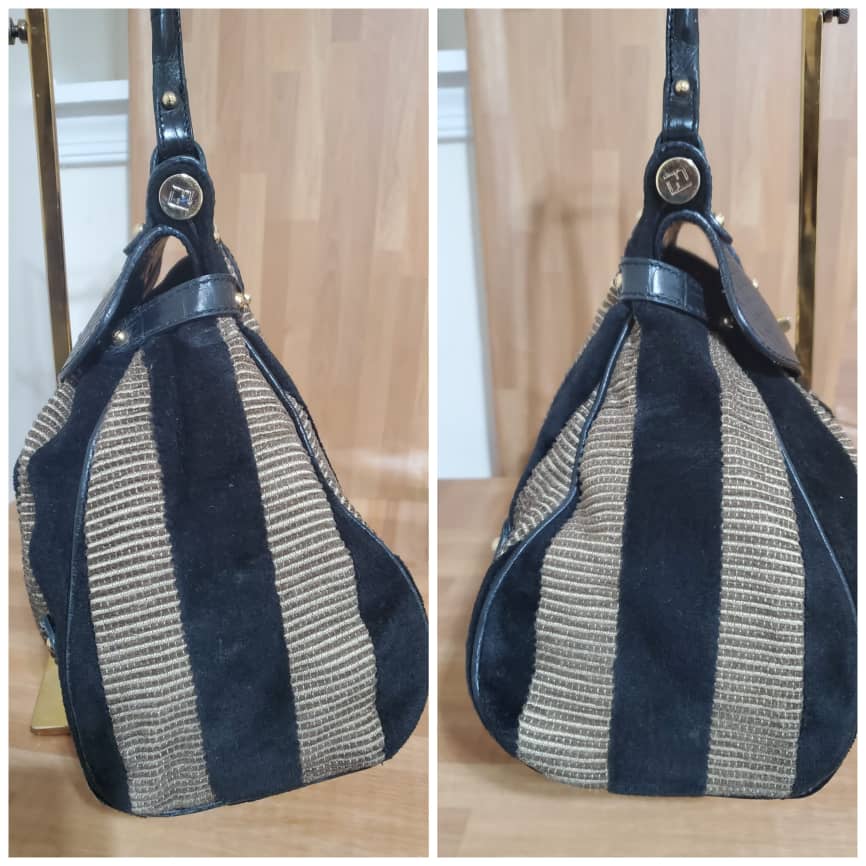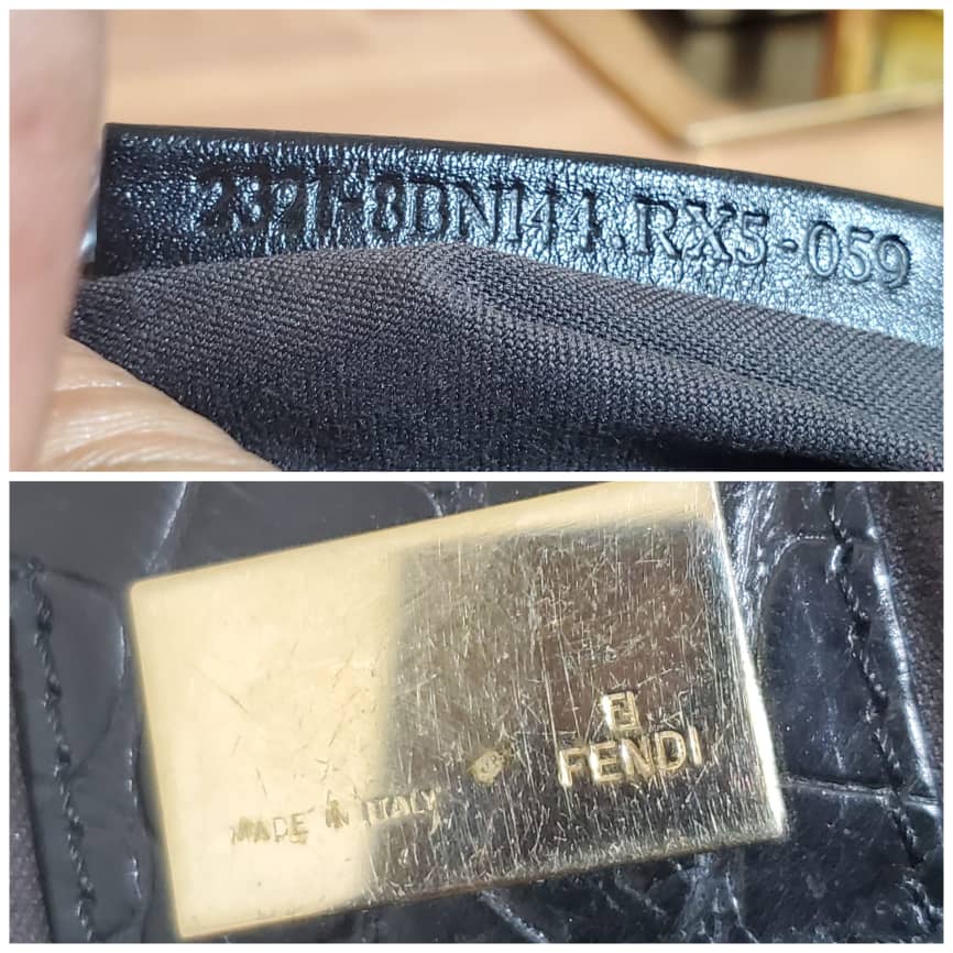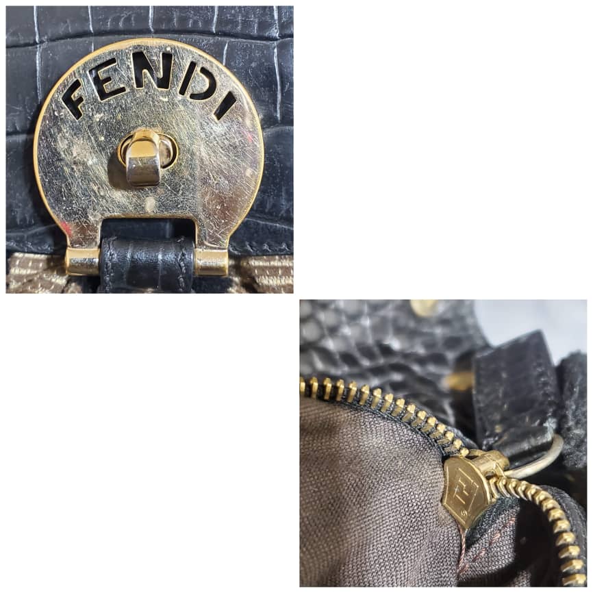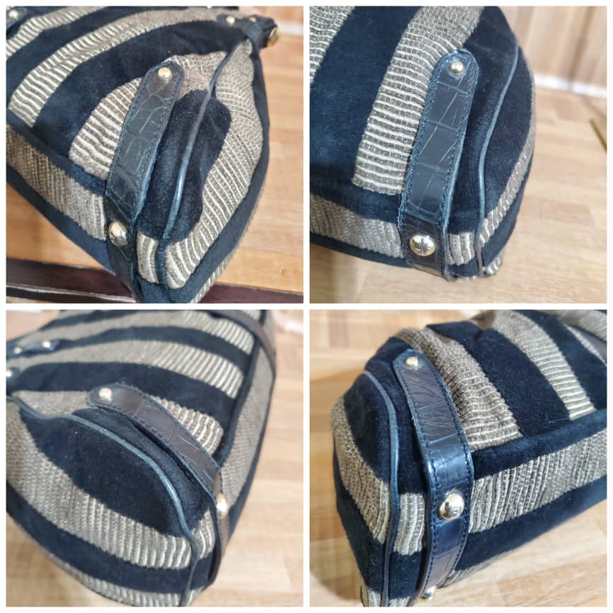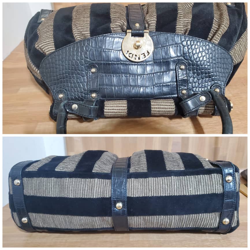 This authentic Fendi Embossed Croc Magic Velvet Penquin Stripe Bag is in it’s pre-owned good condition. The exterior is clean and beautiful. Interior is clean. A great collector piece.