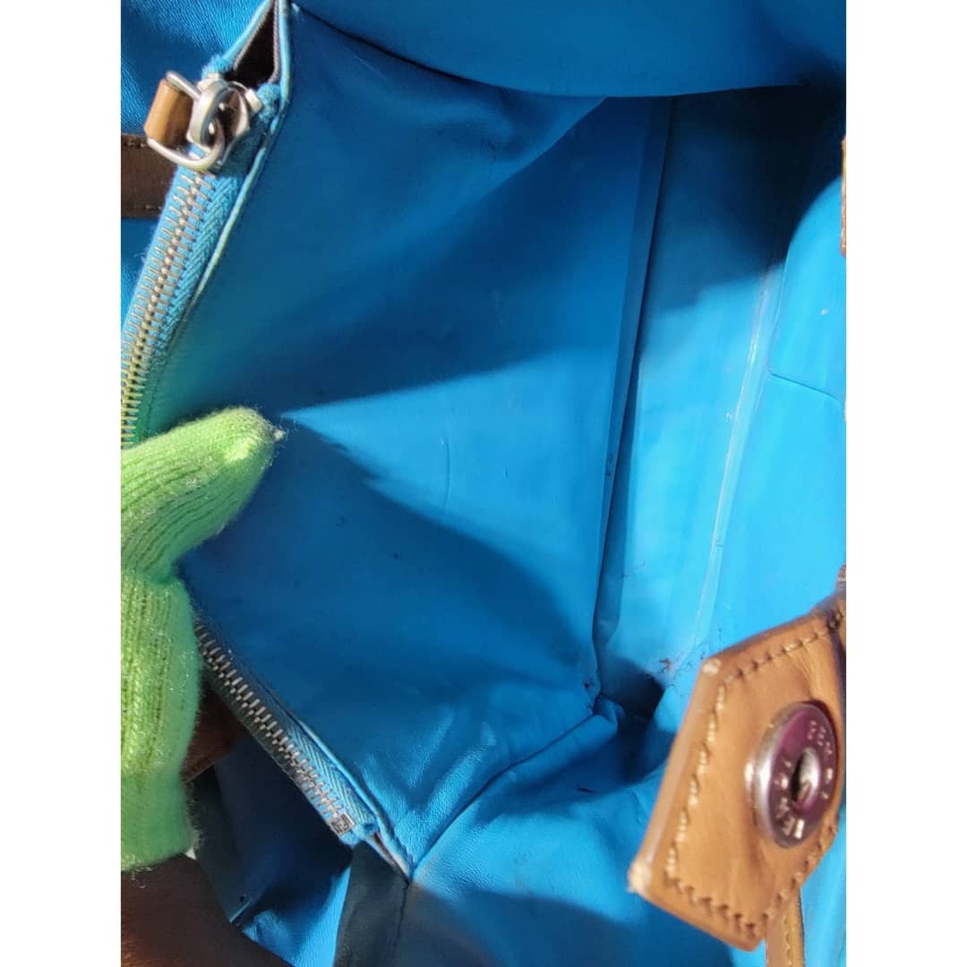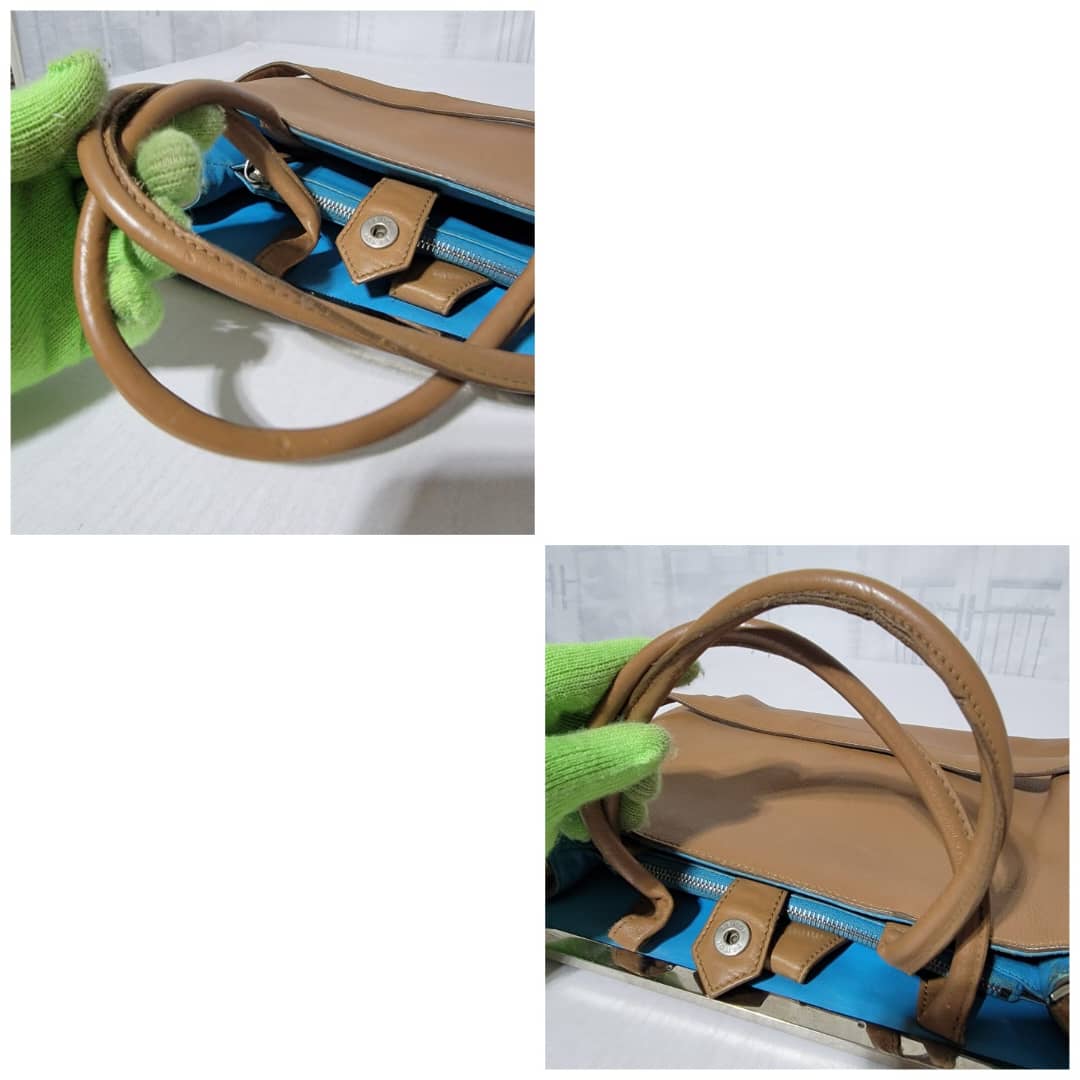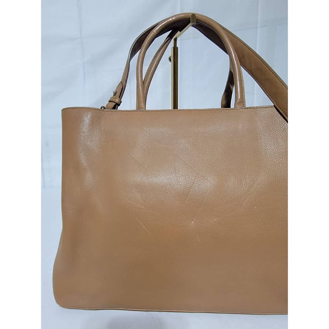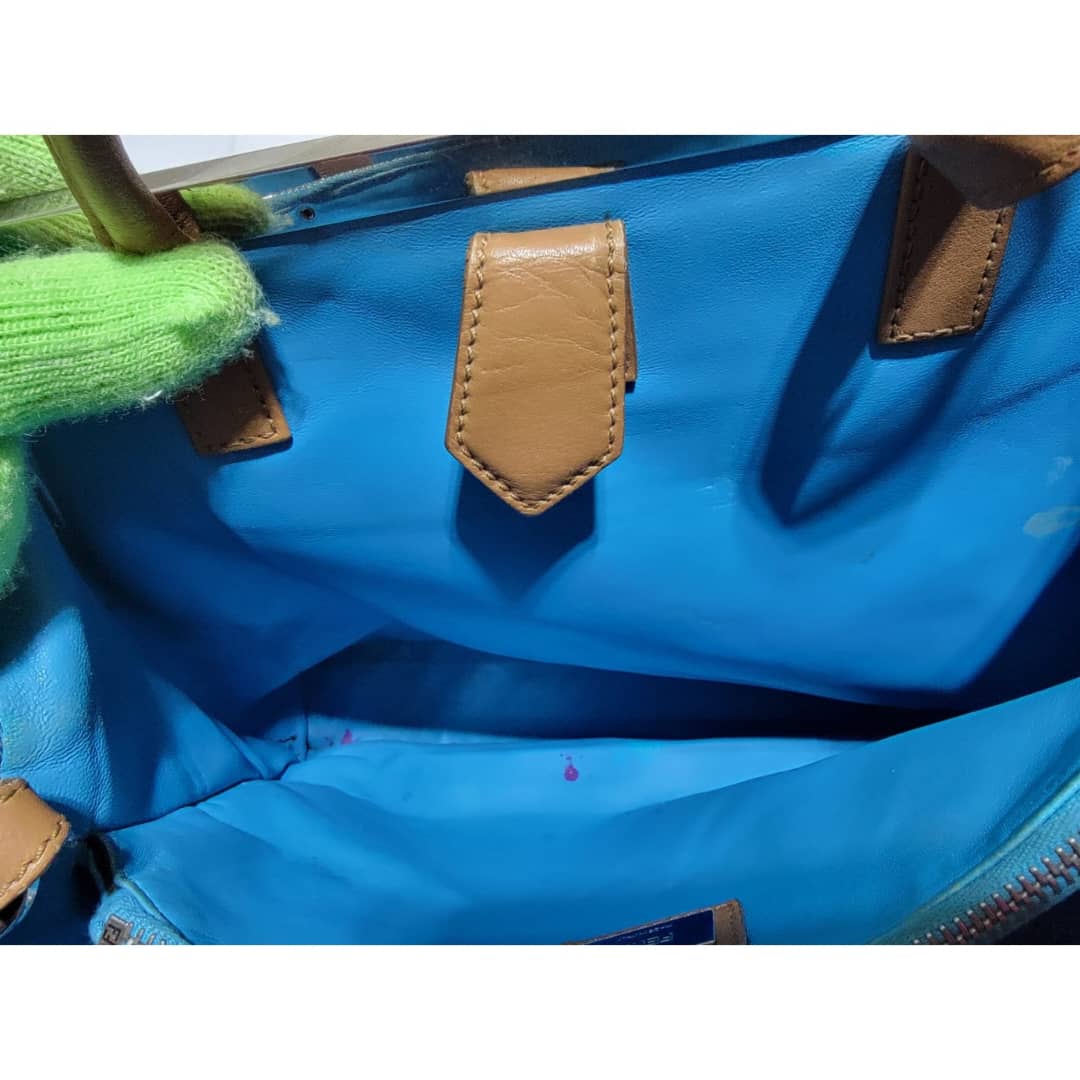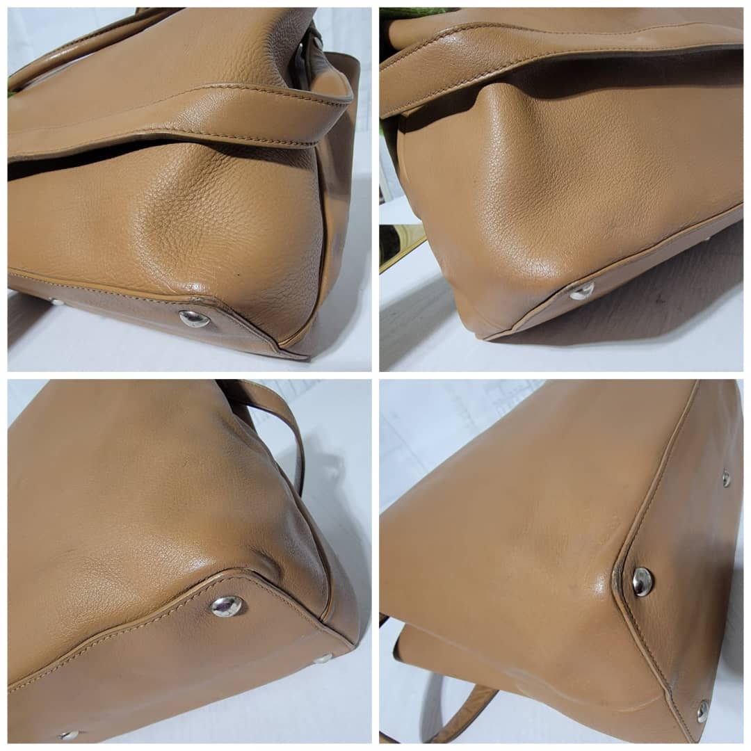 This authentic Fendi Leather Medium 2jours Tote Bag Tan is in it’s pre-owned condition. The exterior is clean however, it shows sign of marks like pressed dent on it. The interior shows pen marks and makeup stains in it (Kindly look at pictures above). The handles shows sign of wear, loss of structure. Silver hardware.