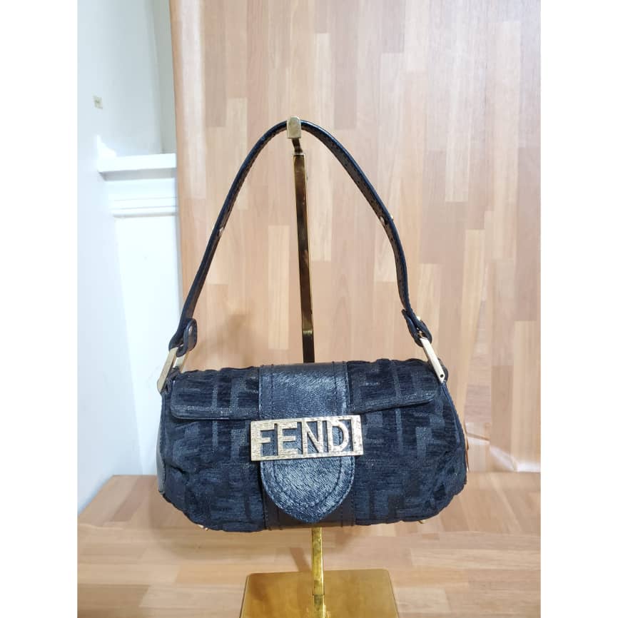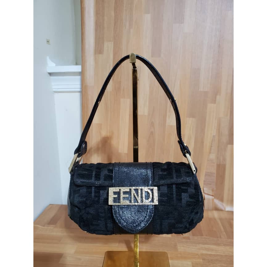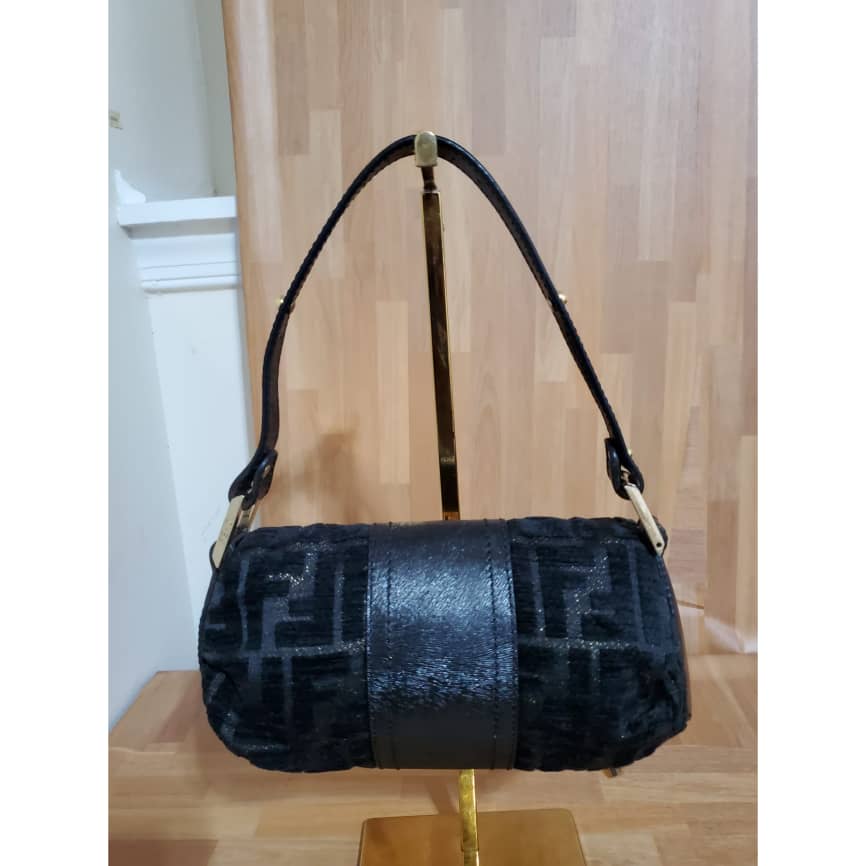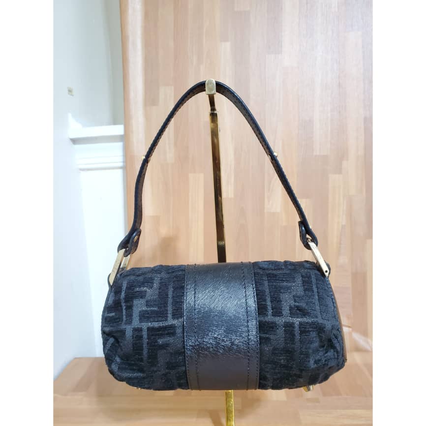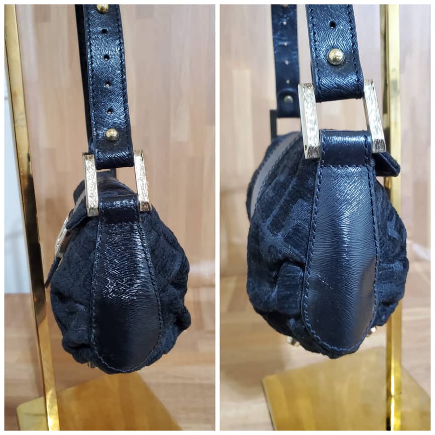 This authentic Fendi Mini Velvet Shoulder Bag Black .is in its pre-owned condition. The exterior Velvet is clean and beautiful. Interior is clean. It’s in absolute great condition. This is a collector piece. All sold-out