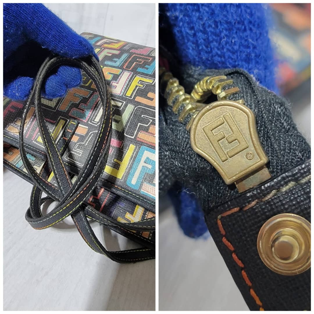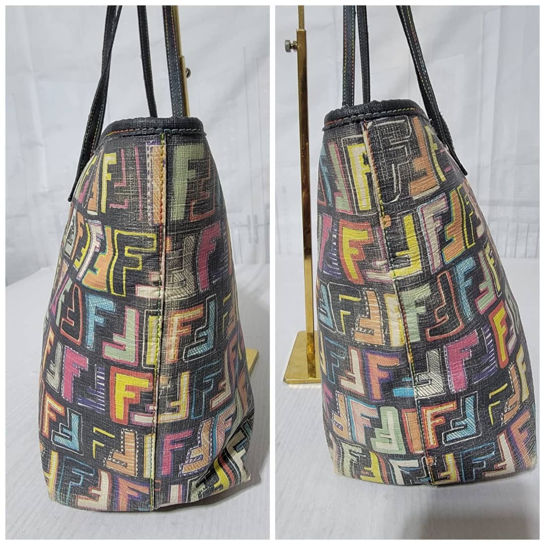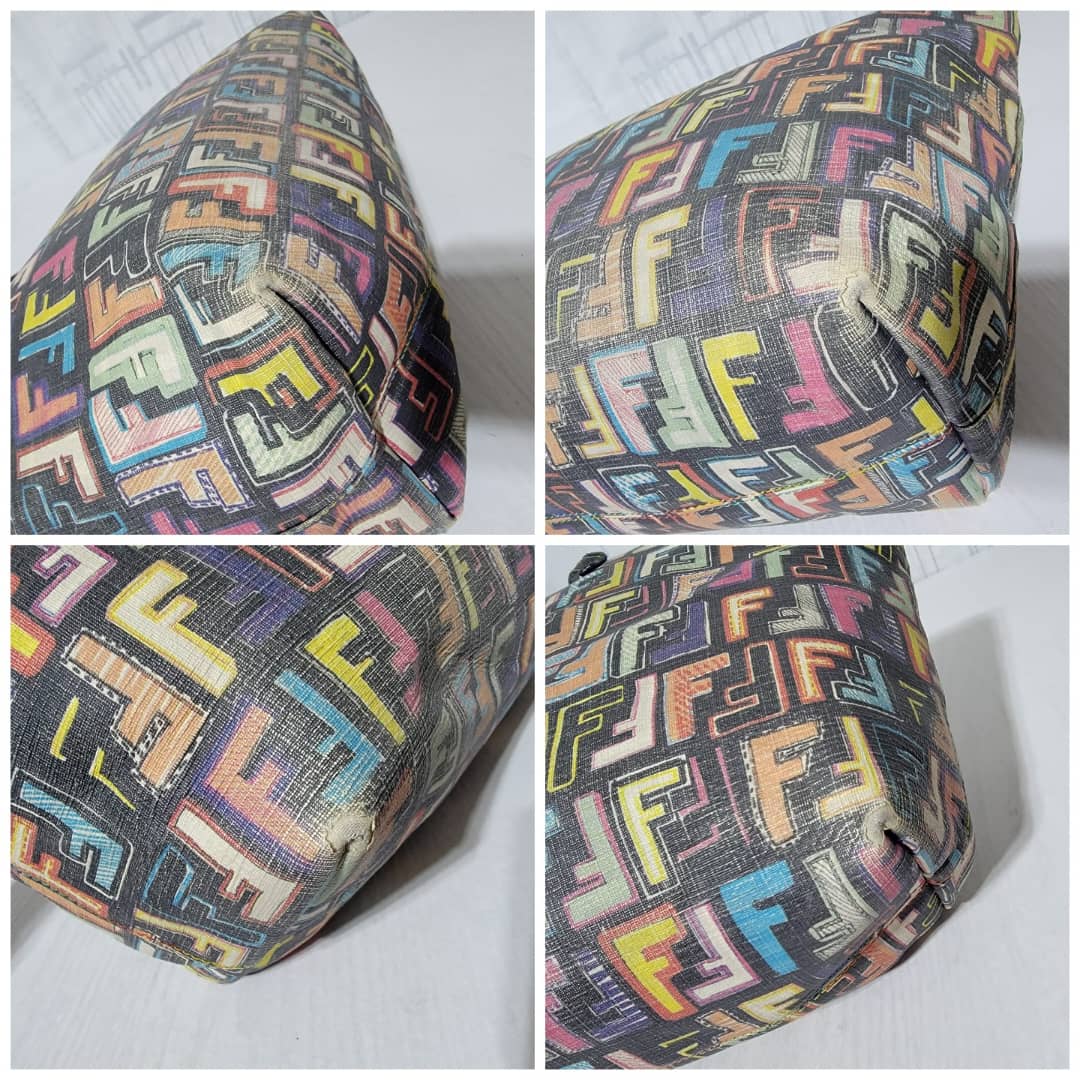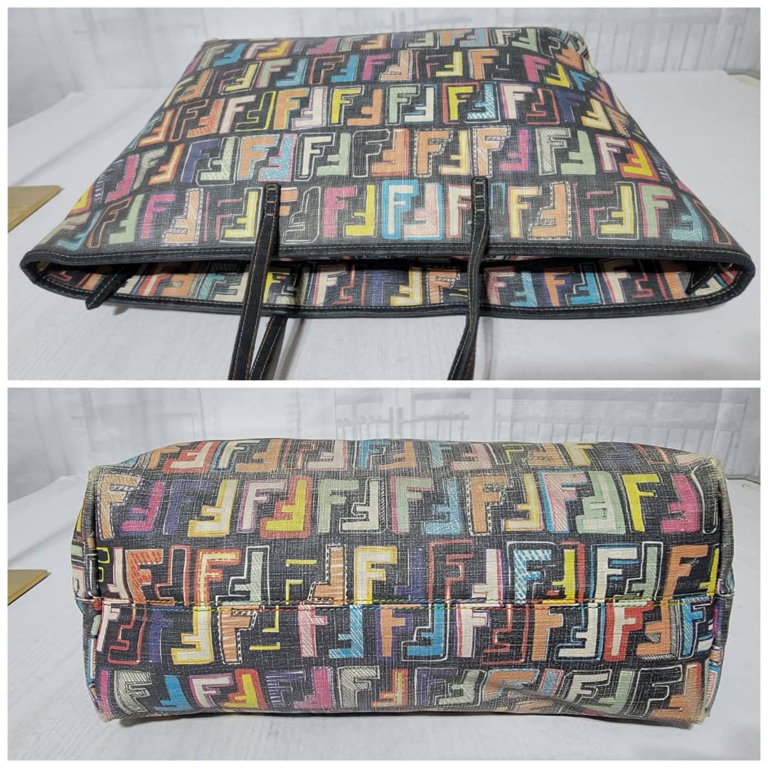 This authentic Fendi Multicolor Zucca Coated Canvas Large Roll Tote is in it’s good pre-owned condition. The exterior Multicolor FF logo is faded. The edges shows scuffle. The interior is clean. Kindly look at the pictures above.