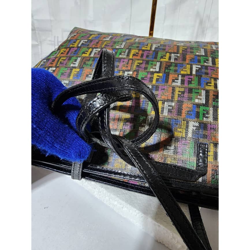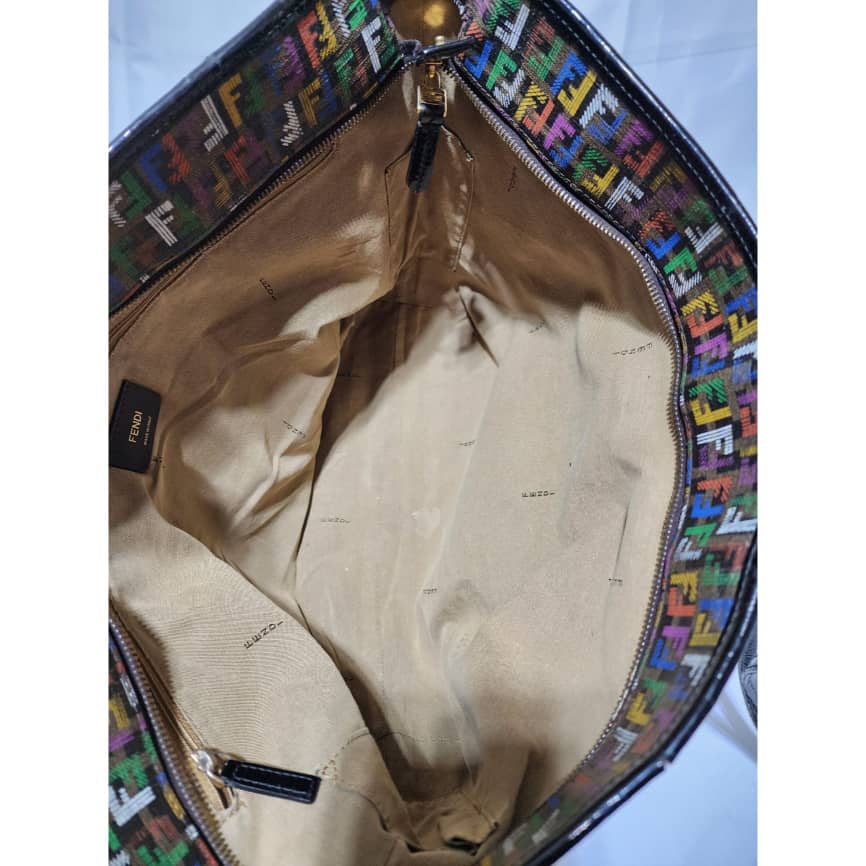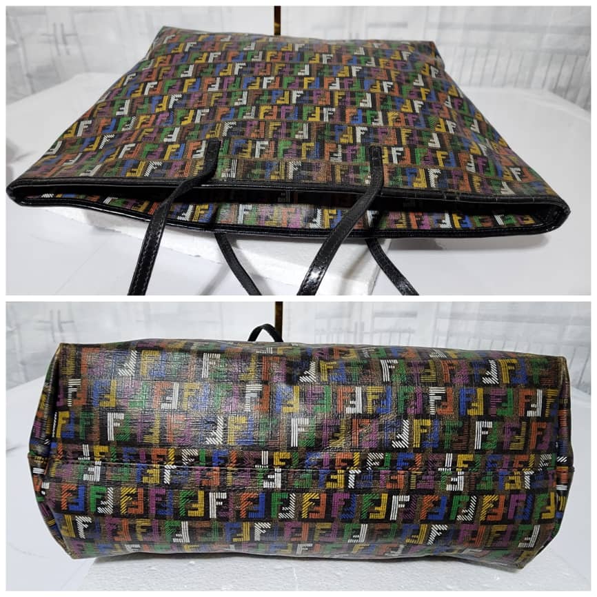 This authentic Fendi Multicolored Zucca Coated Canvas Large Roll Tote Bag is in it’s good pre-owned condition. The exterior is clean and beautiful. Interior is clean.