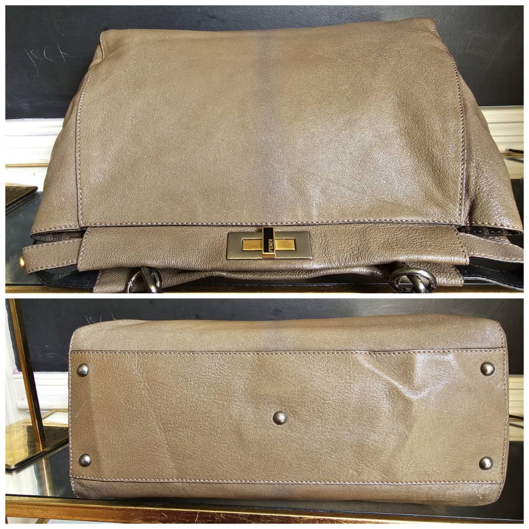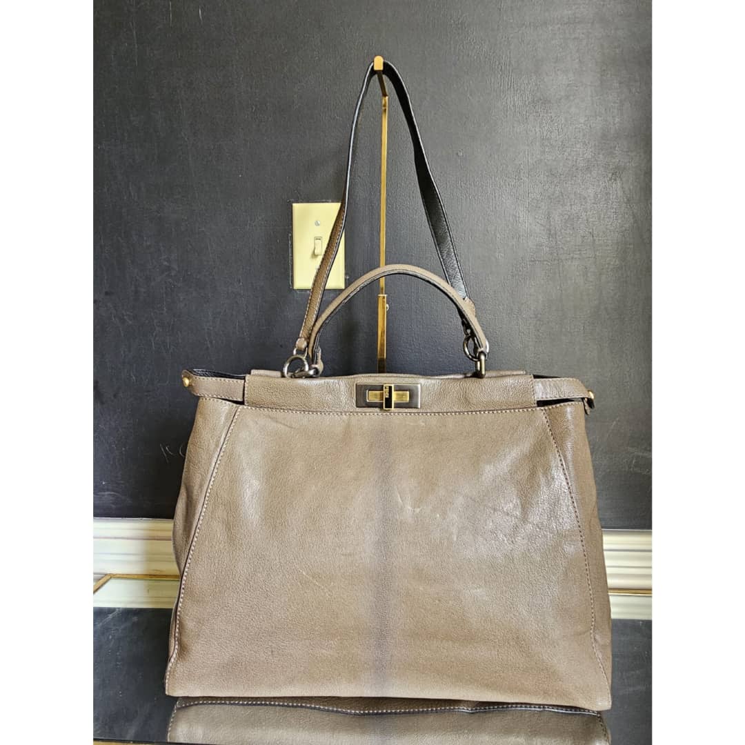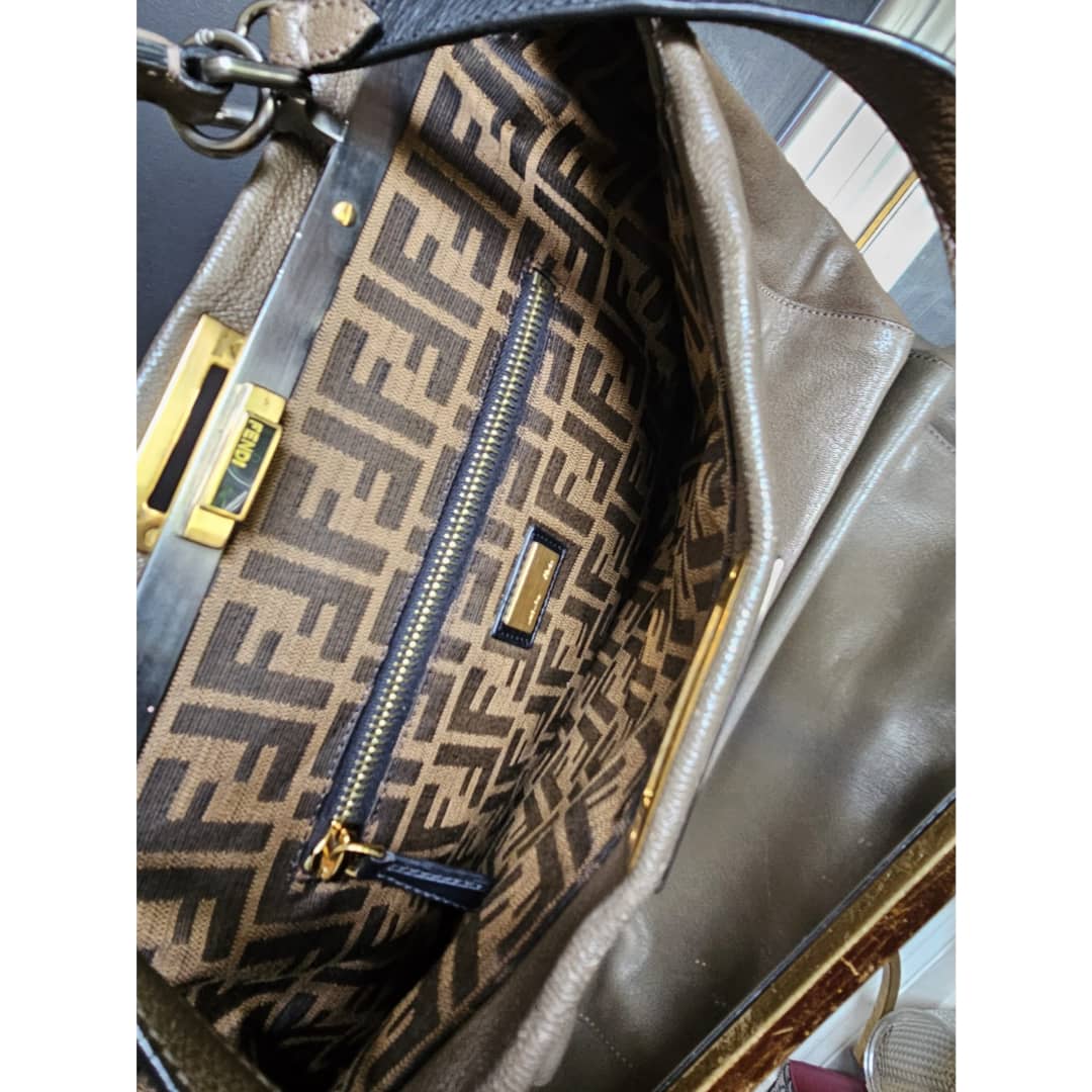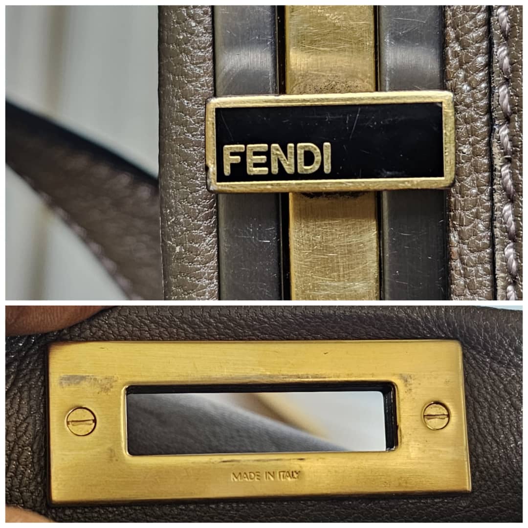 This authentic Fendi Peekaboo medium model handbag in taupe leather is in it’s good pre-owned condition. The exterior leather is clean and beautiful. Interior is clean. Comes with a top handle and shoulder strap.