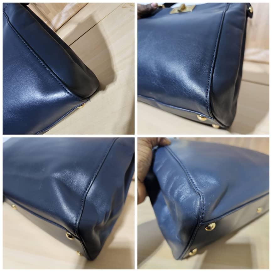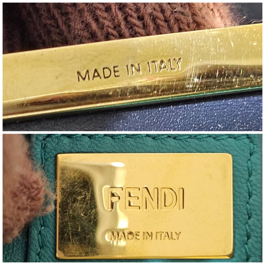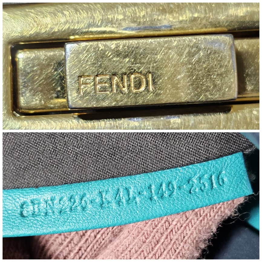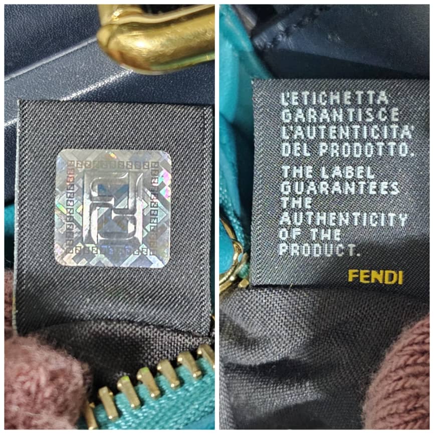 This authentic Fendi Peekaboo Normal Bag Deep Navy Blue is in it’s pre-owned good condition. The exterior leather is clean and beautiful.The torquoise blue Interior is clean. It has a gold hardware.