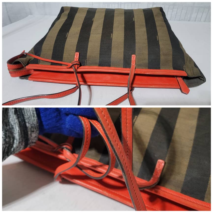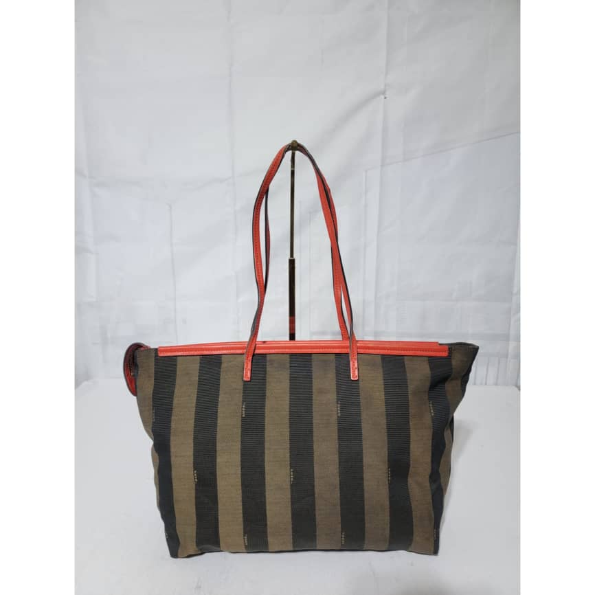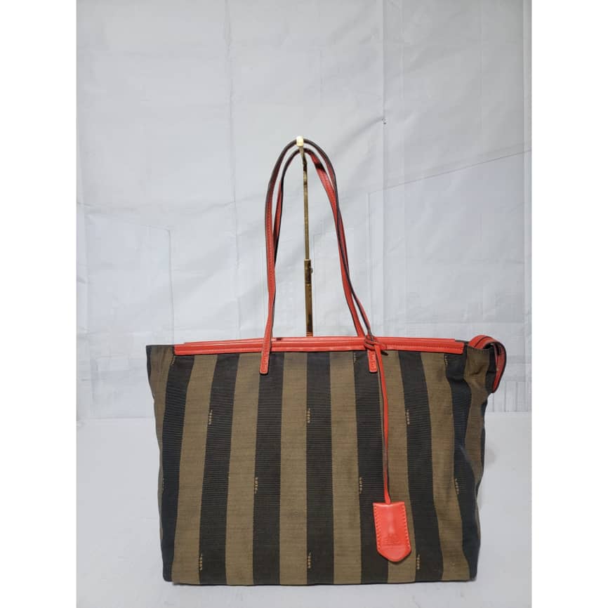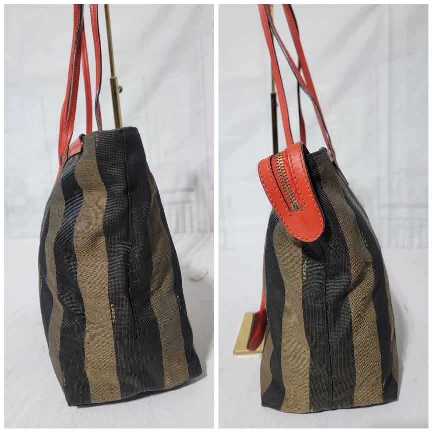 This authentic Fendi Pequin Tote Bag Red/Brown is in it’s good pre-owned condition. The exterior is clean and beautiful. Interior is clean. It is in it’s pre-loved condition.