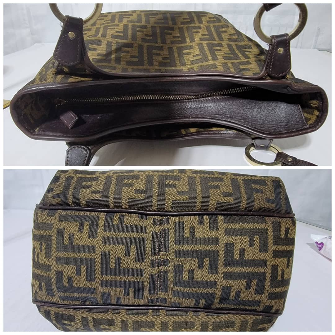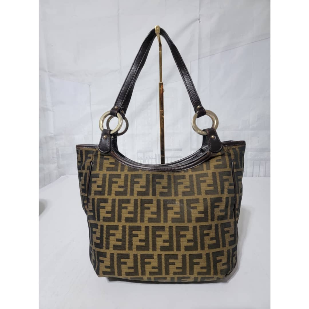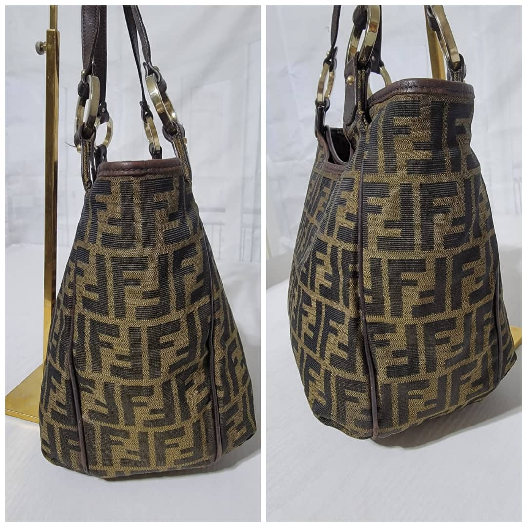 This authentic Fendi Tobacco Zucca chef moro Canvas And Leather Trim Chef Tote Bag is in it’s good pre-owned condition. The exterior canvas and leather trim is clean and beautiful. The brown leather trim and handle shows little rubbing. Interior is clean.
