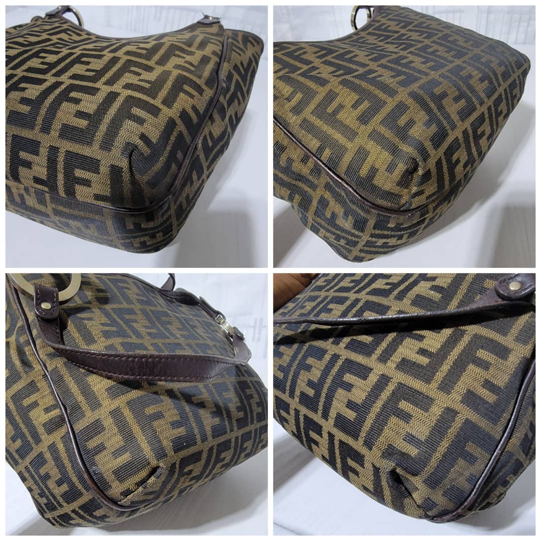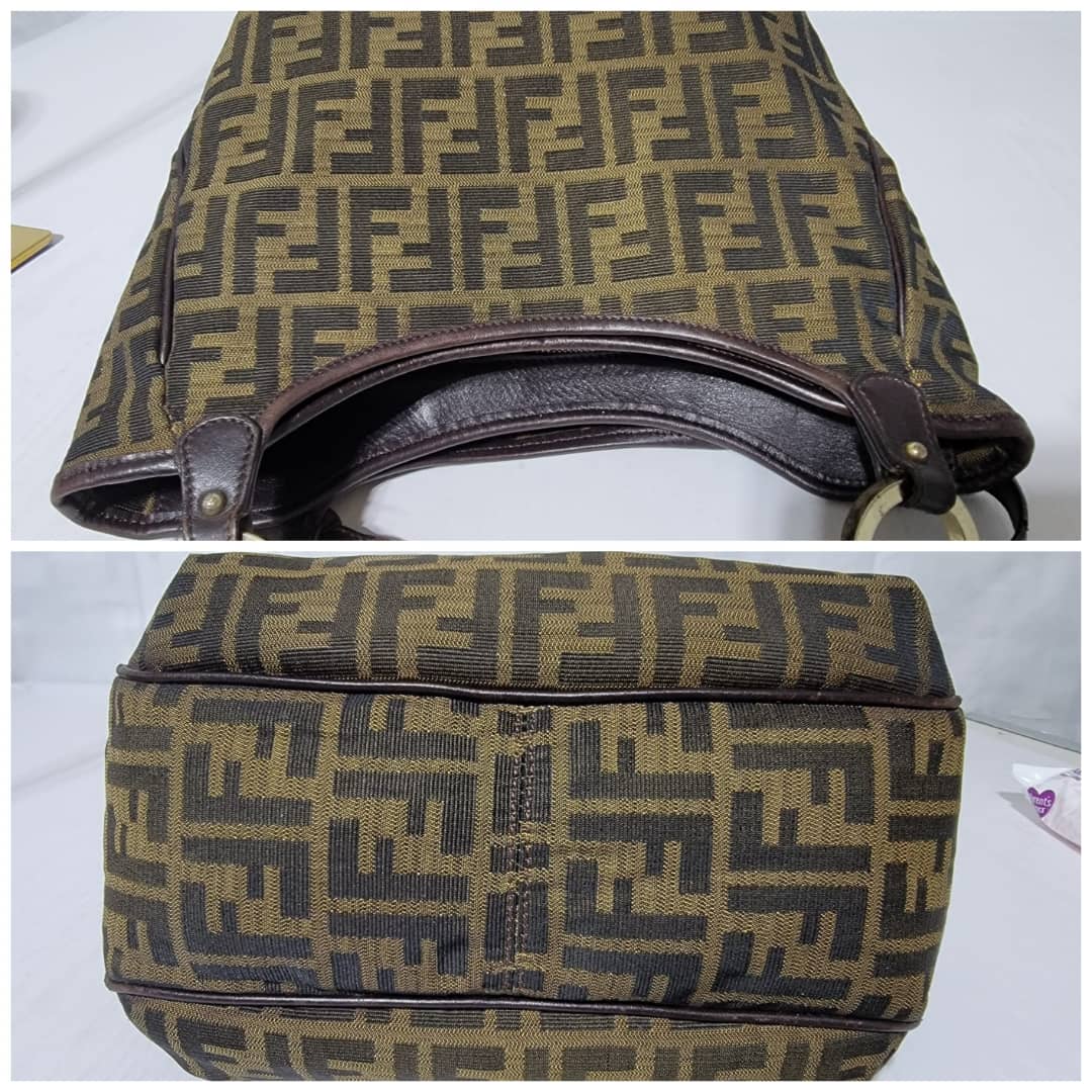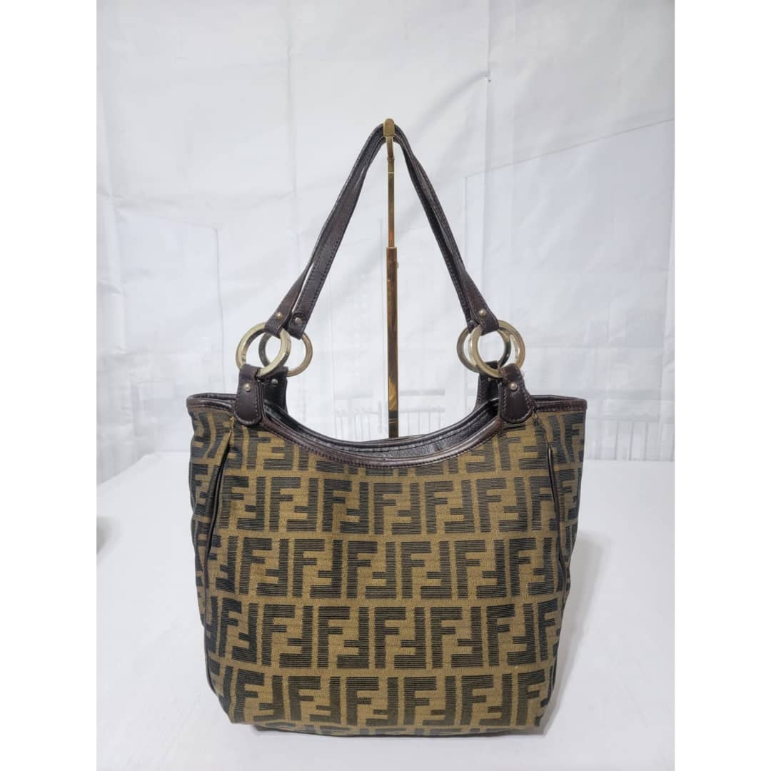 This authentic Fendi Tobacco Zucca chef moro Canvas And Leather Trim Chef Tote Bag is in it’s good pre-owned condition. The exterior canvas and leather trim is clean and beautiful. The brown leather trim and handle shows little rubbing. Interior is clean.