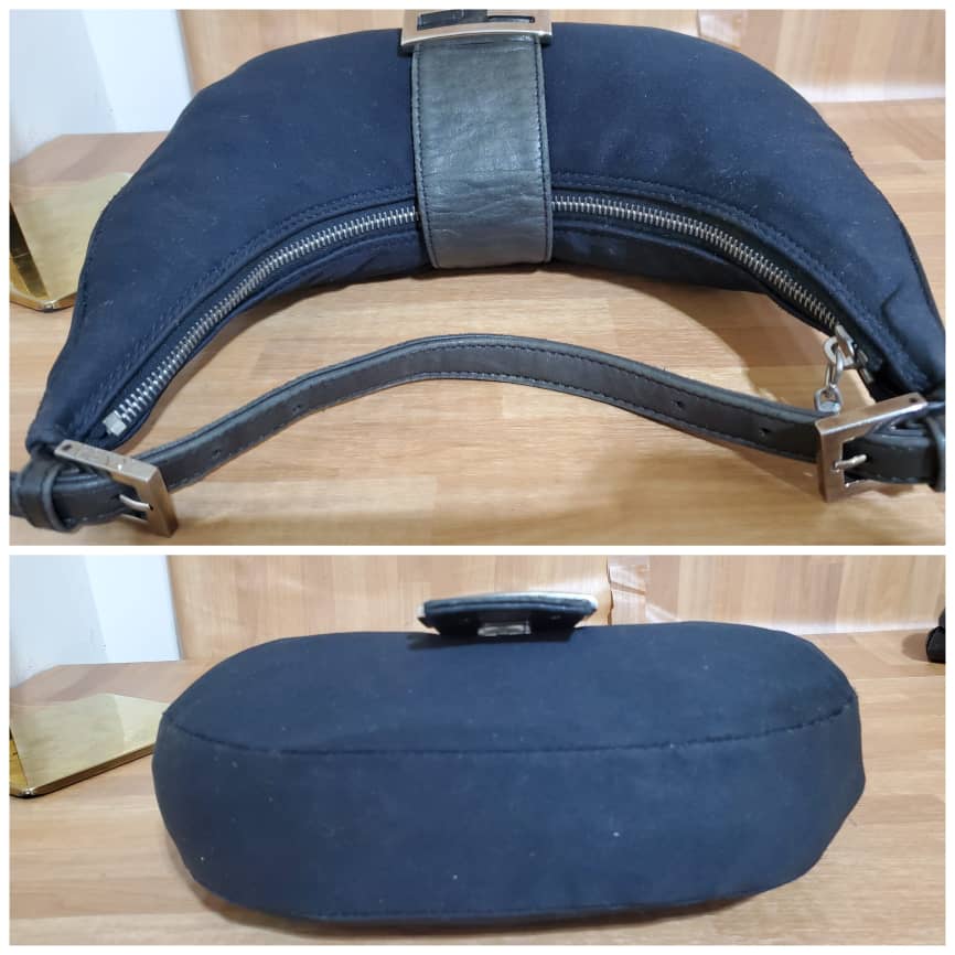 This authentic Fendi Vintage Neoprene Half Moon Shoulder Bag is in it’s pre-owned condition. The exterior is clean and beautiful. Interior is clean. Little scratches on the leather flap.