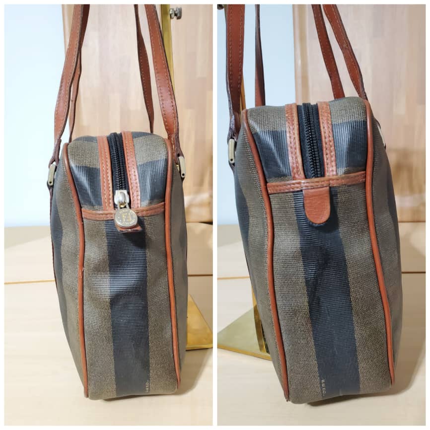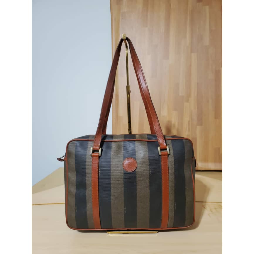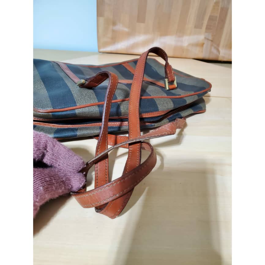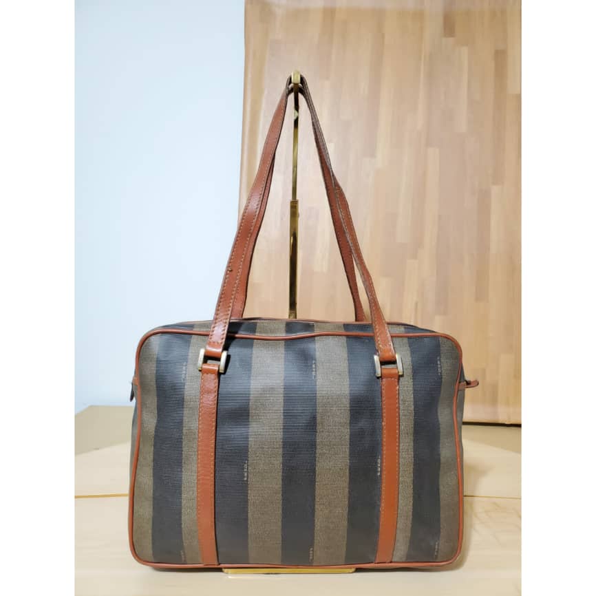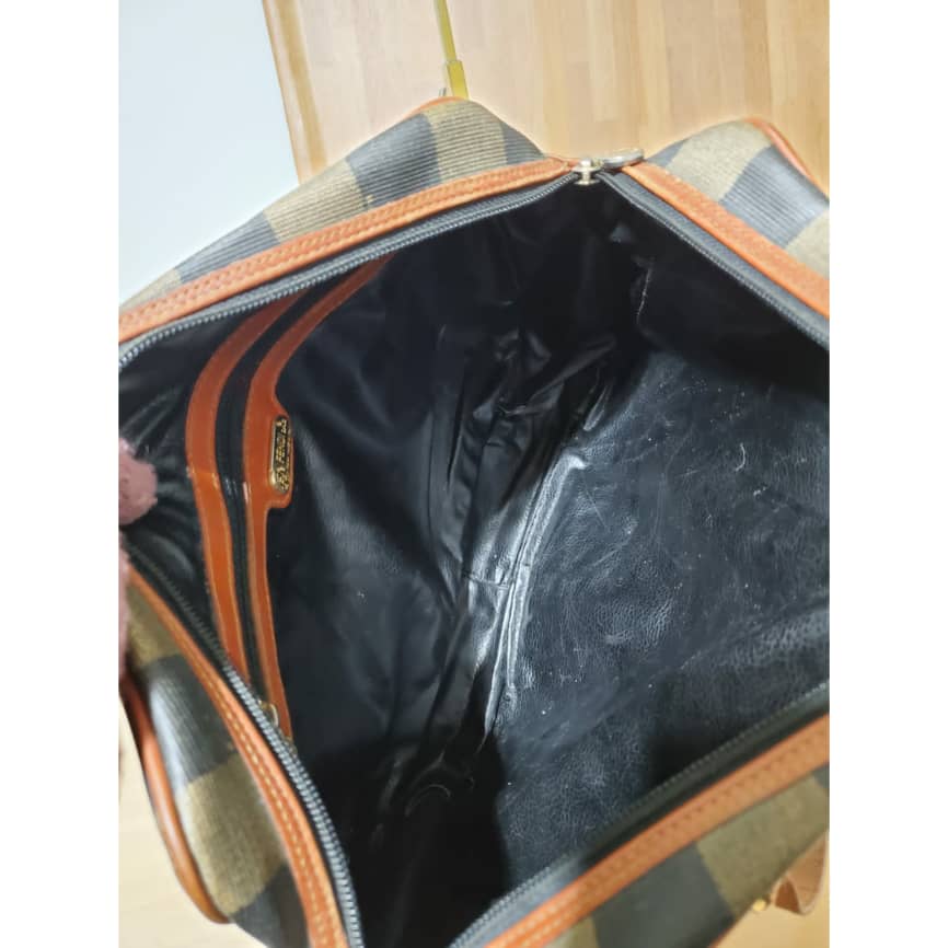 The authentic Fendi Vintage Pequin Shoulder Bag Coated Canvas is in it’s pre-owned good condition. The exterior is clean . Interior is clean. Nice vintage condition.