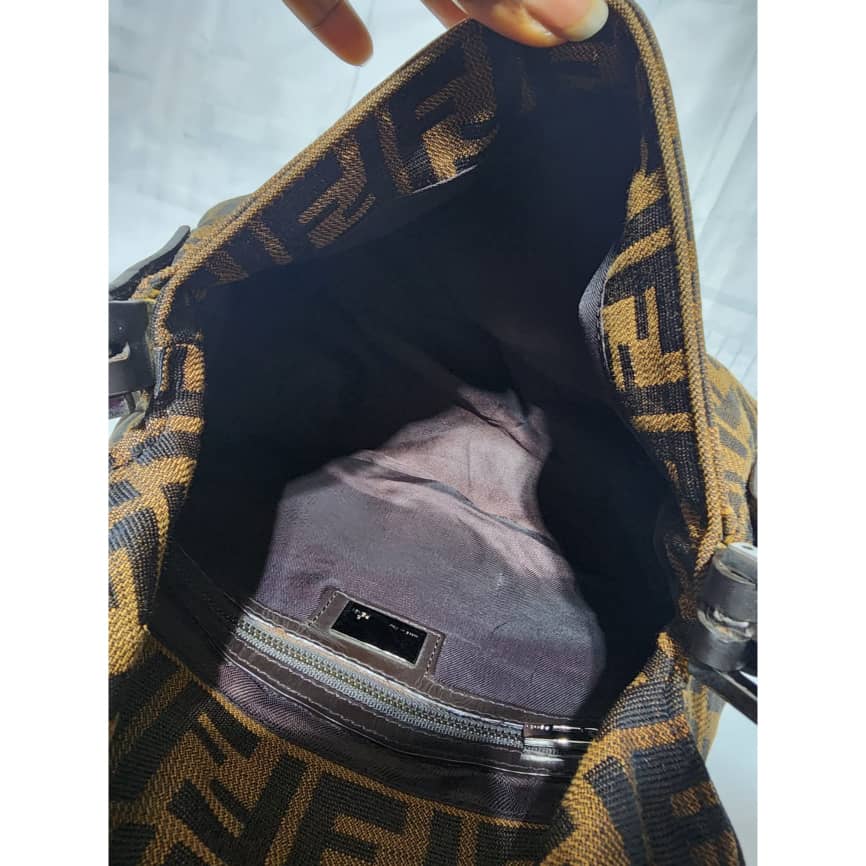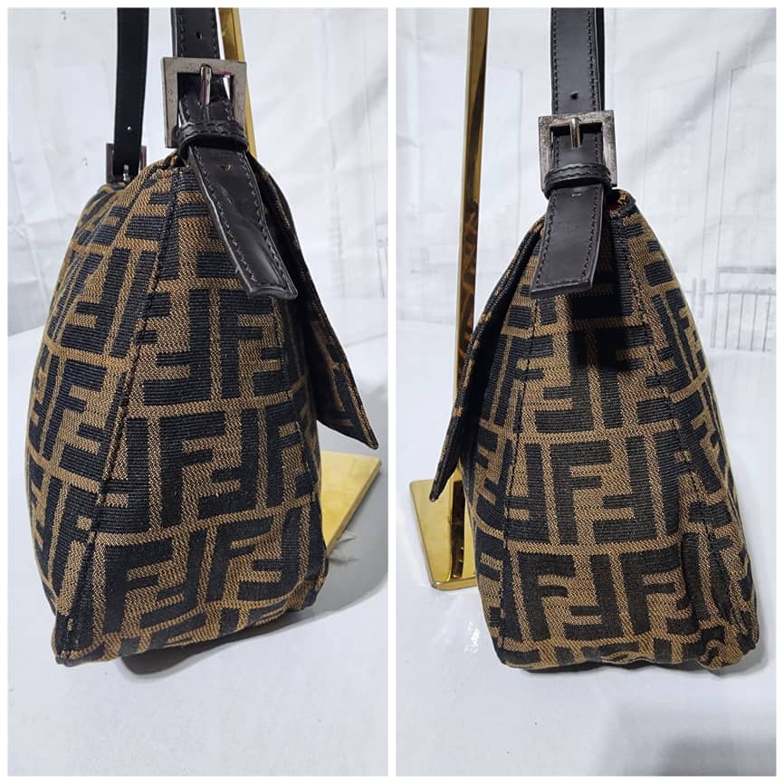 This authentic FENDI Vintage Zucca Mamma Baguette Shoulder Bag Brown is in itβs good pre-owned condition. The exterior is clean and beautiful. Interior is clean. Silver hardware.