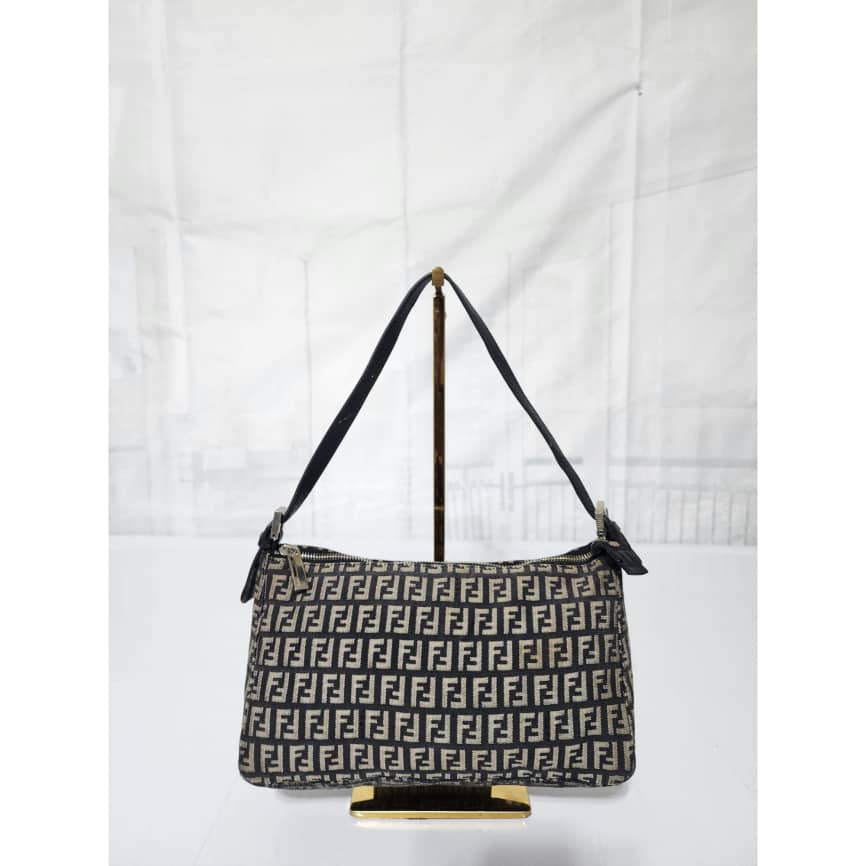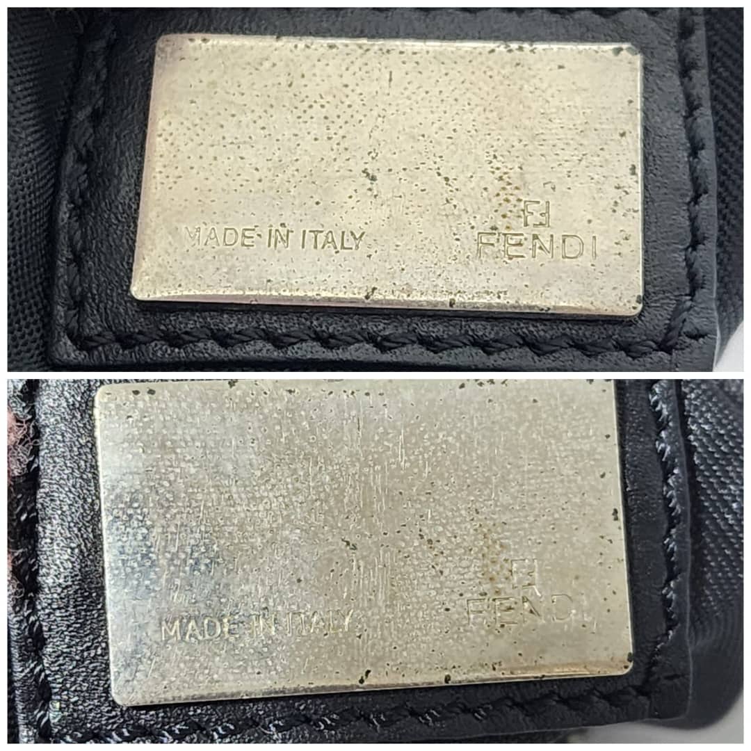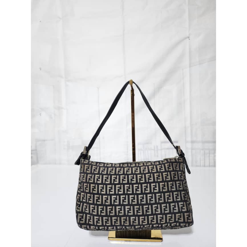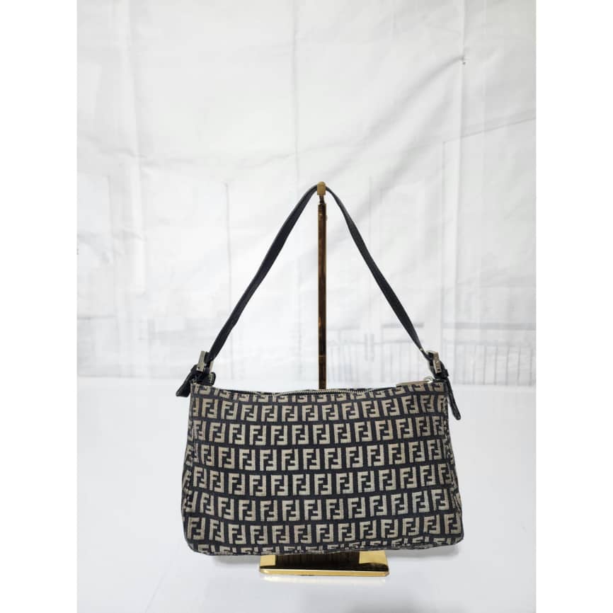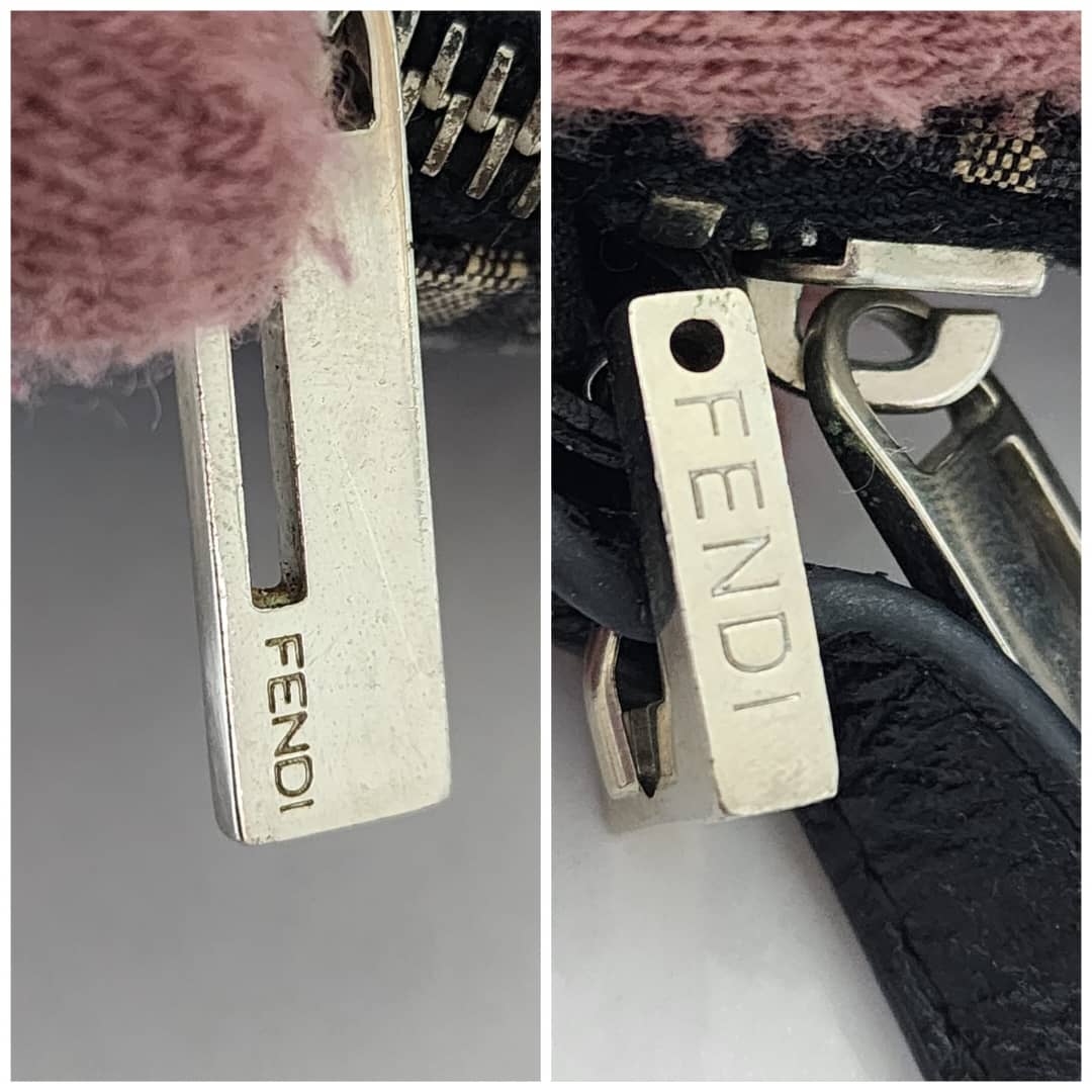 This authentic Fendi Vintage Zucchino Canvas Baguette Black/Grey is in it’s good pre-owned condition. The exterior is clean. Interior is clean. Silver hardware.
